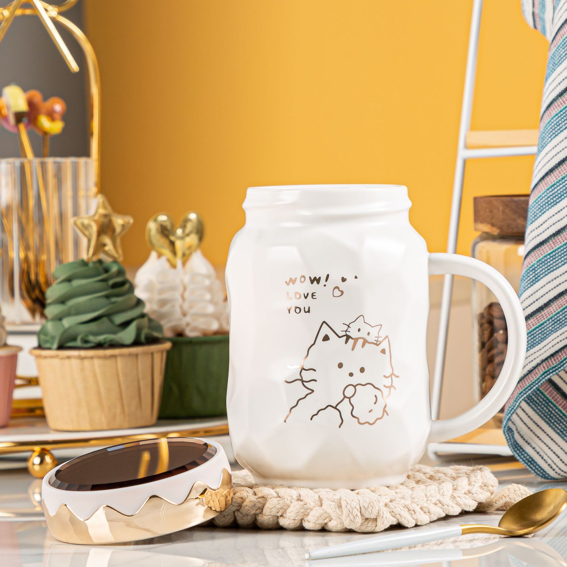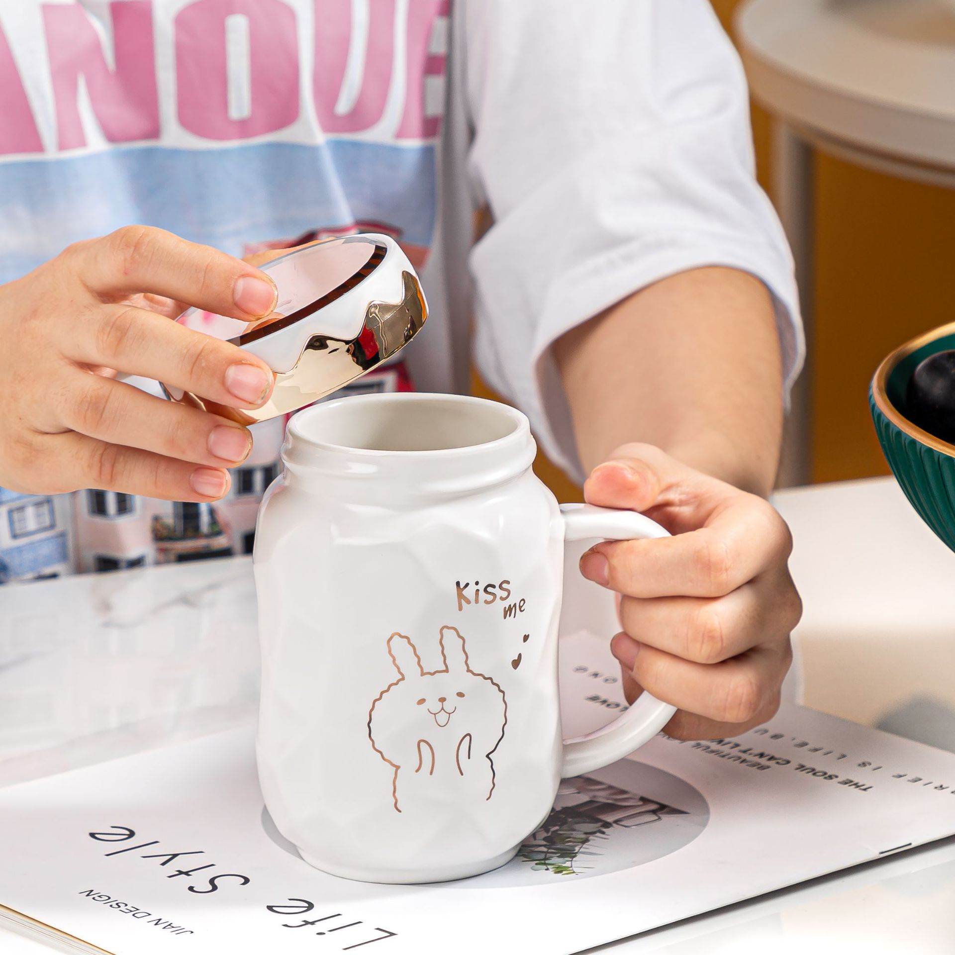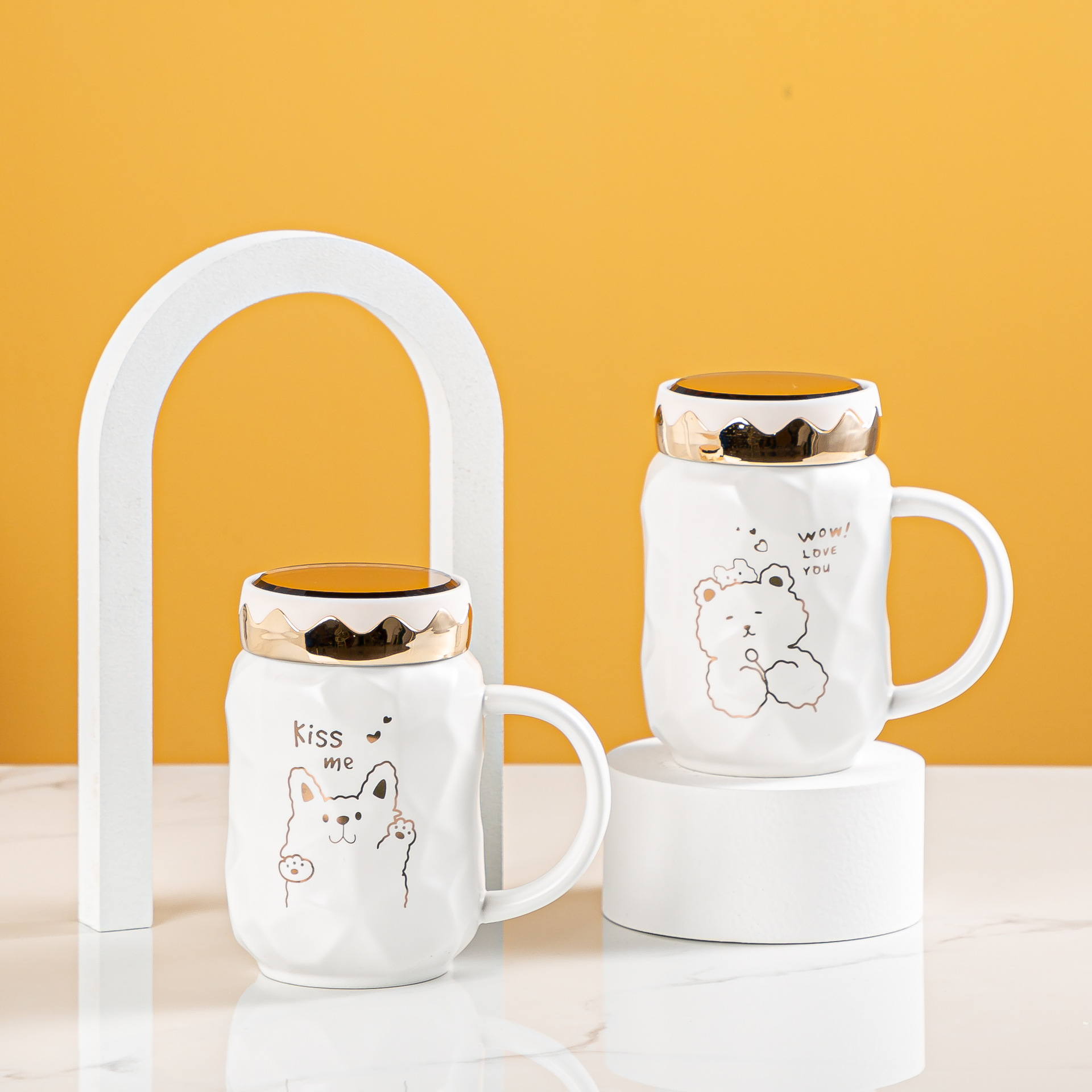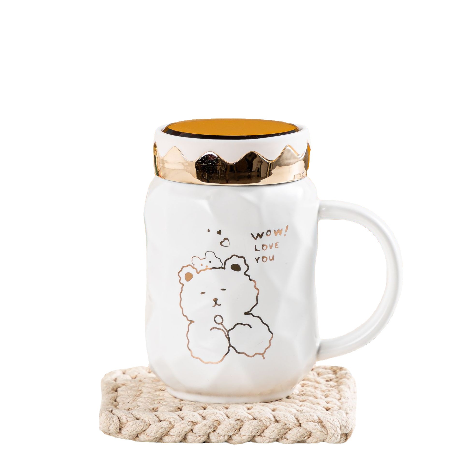 家用办公室高颜值卡通可爱萌趣动物陶瓷马克杯学生创意带盖牛奶杯