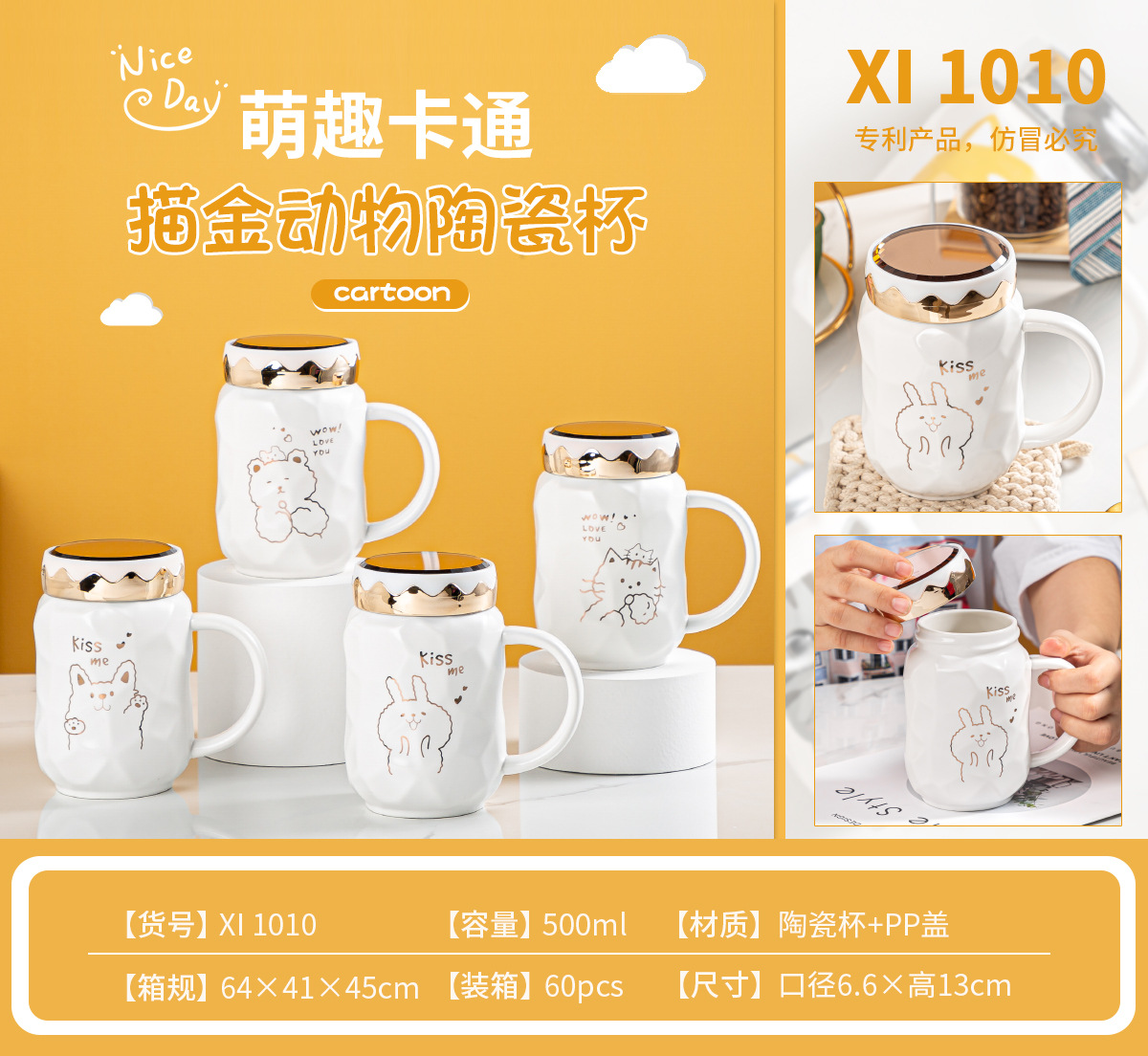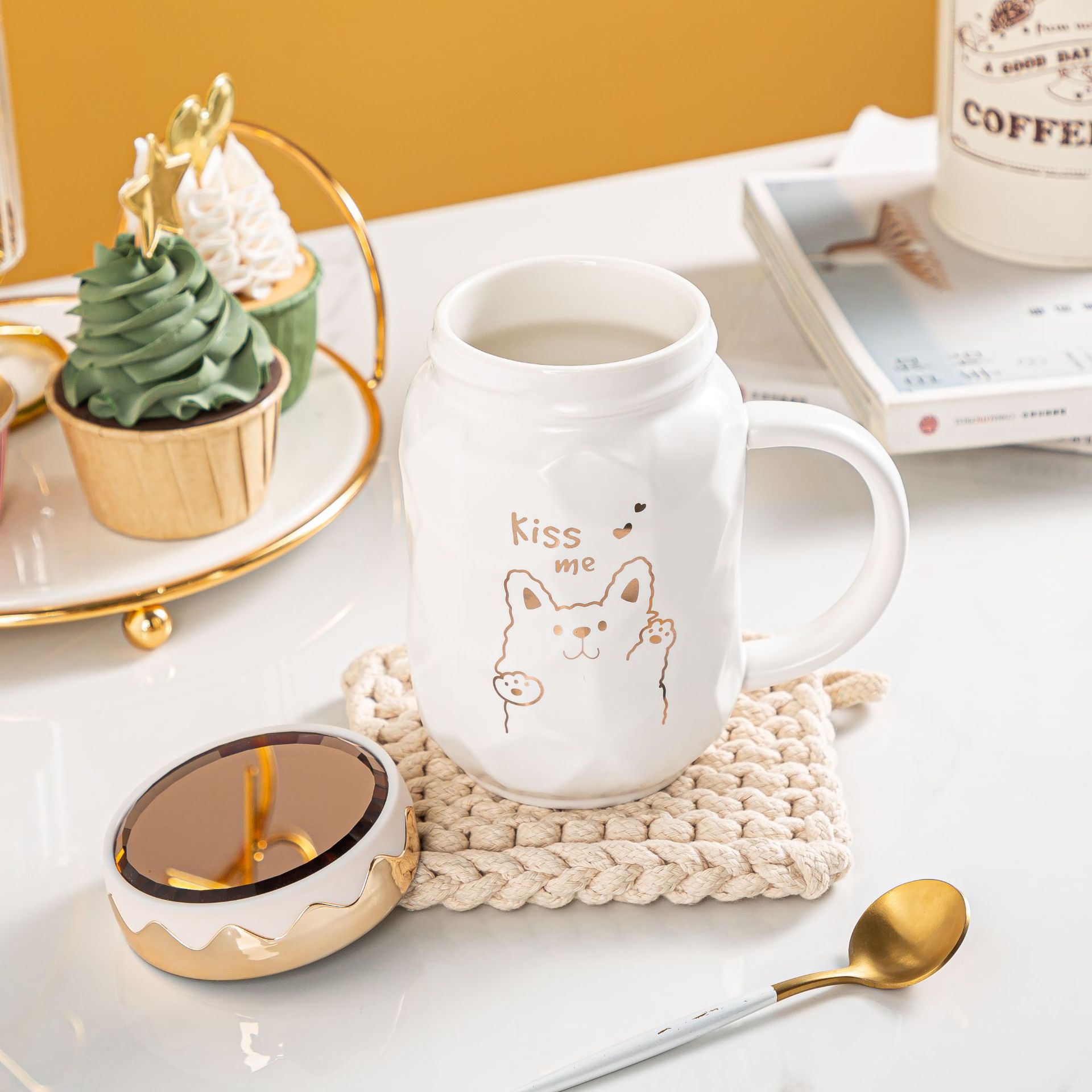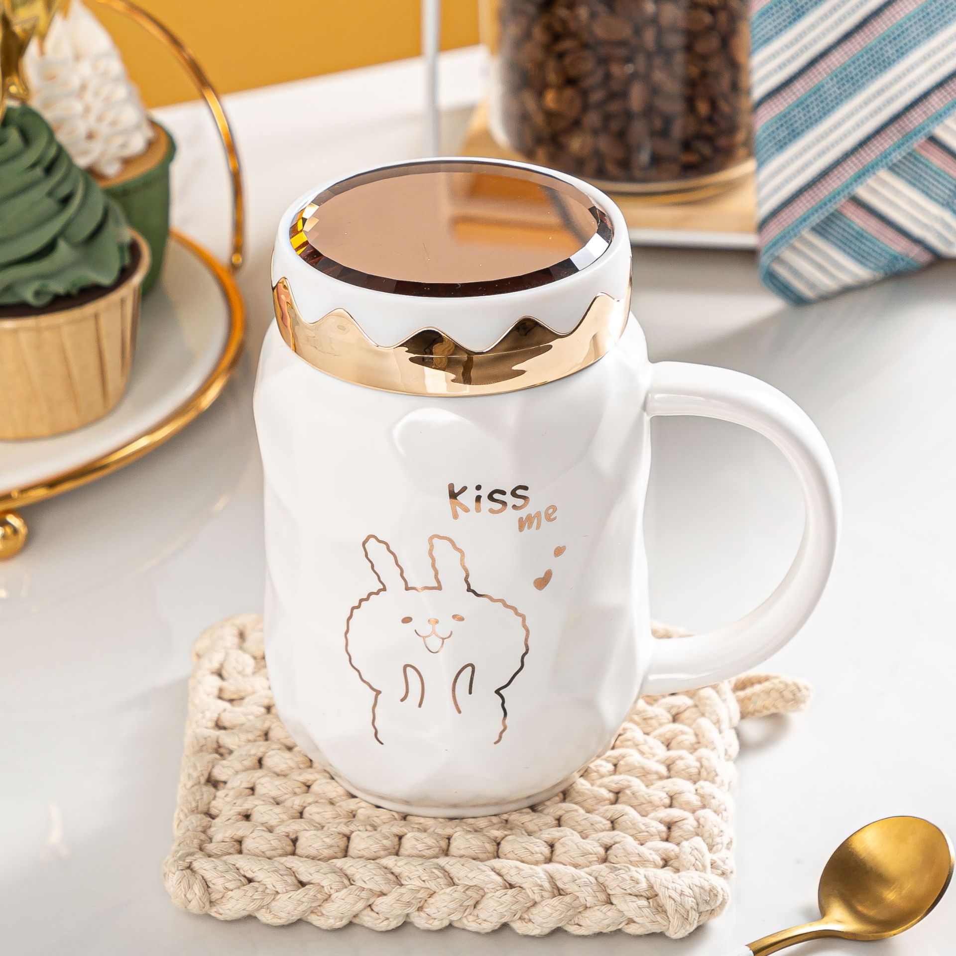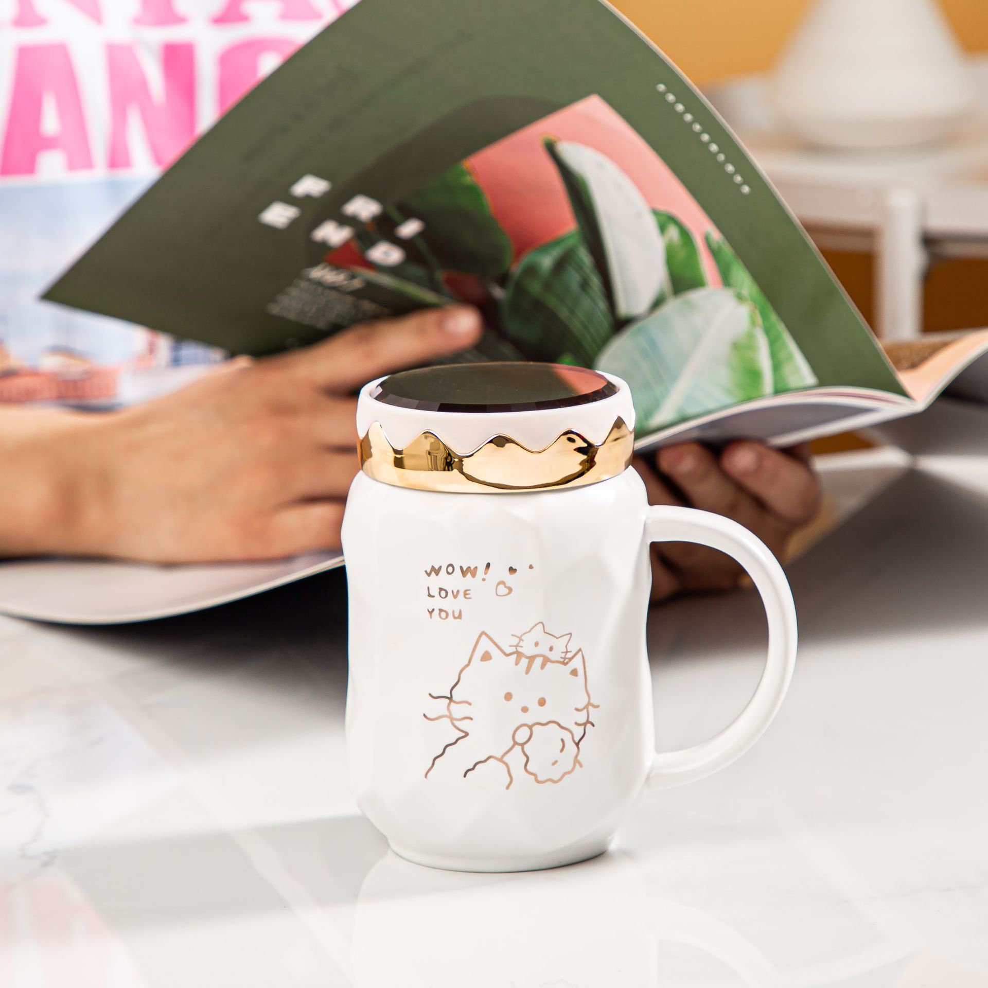 家用办公室高颜值卡通可爱萌趣动物陶瓷马克杯学生创意带盖牛奶杯