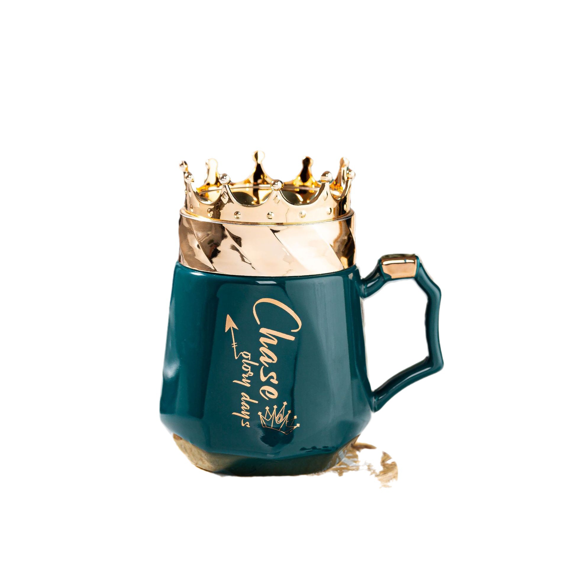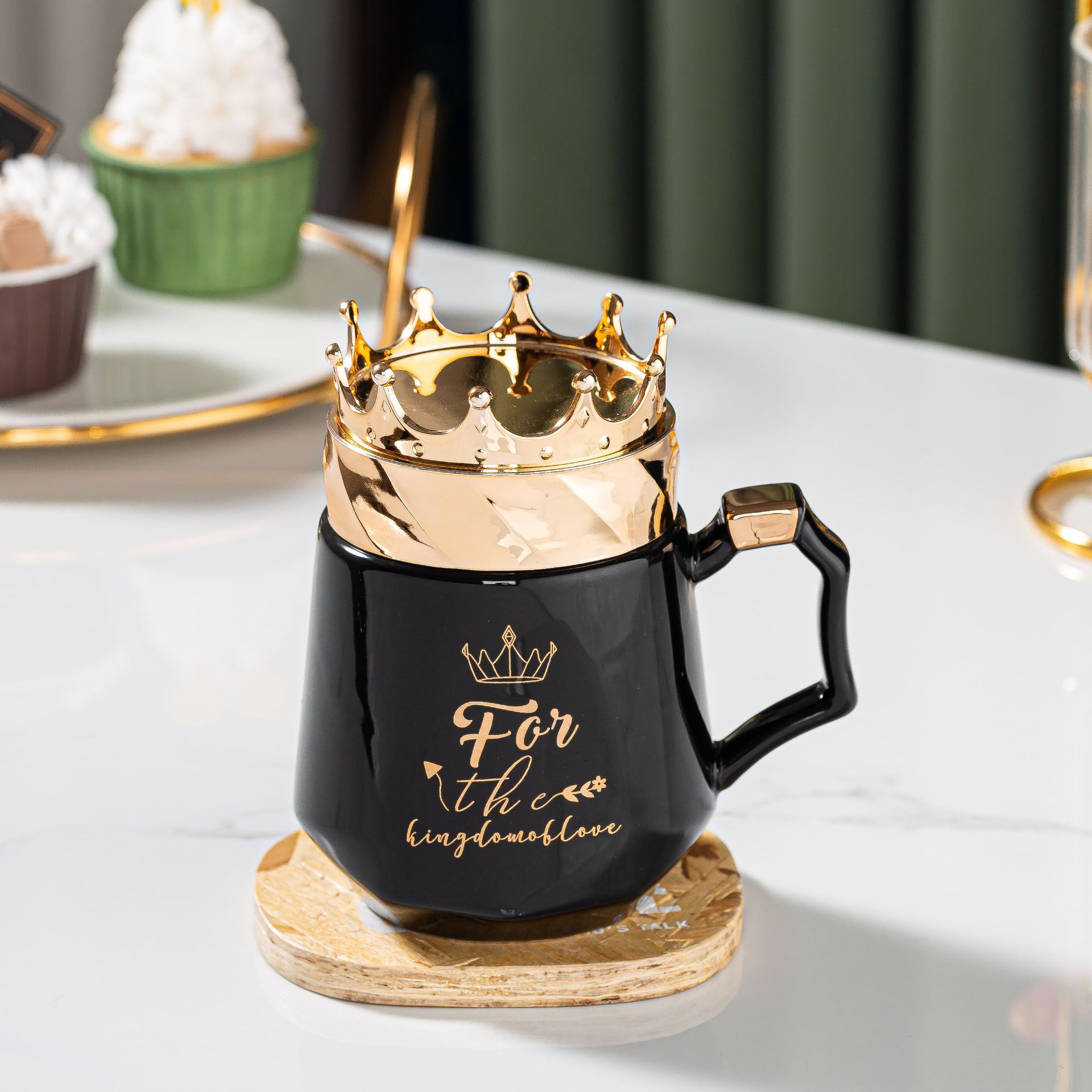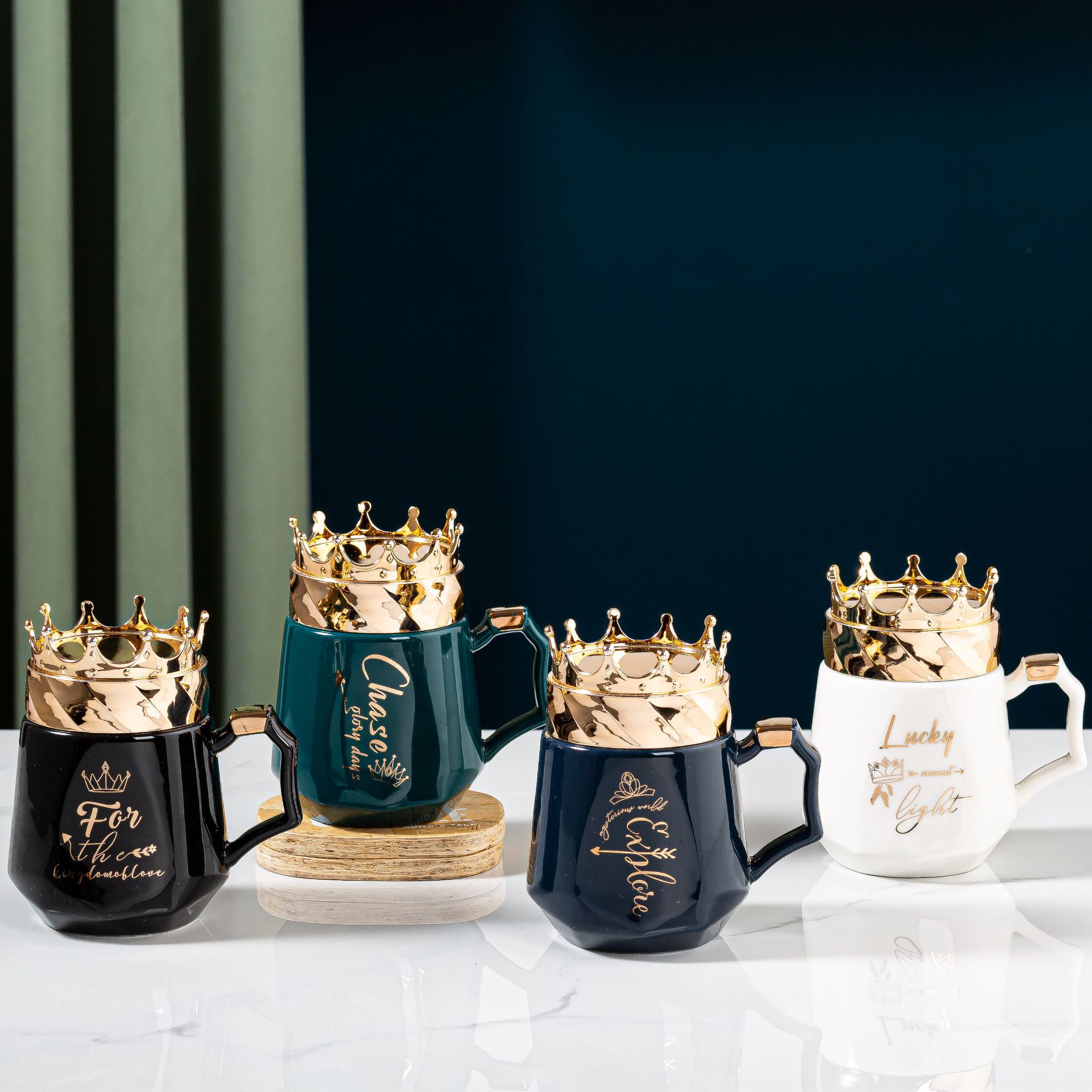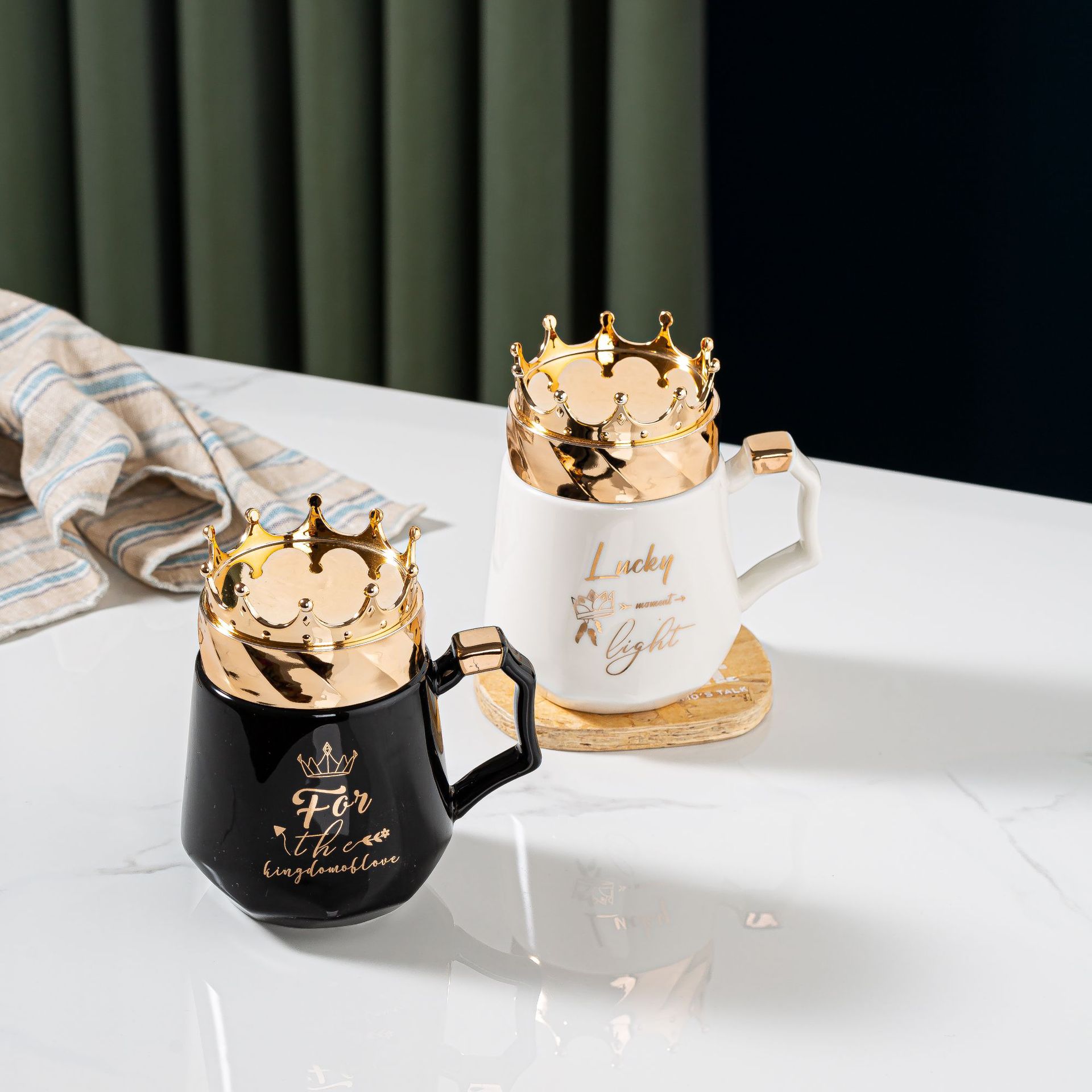 创意高颜值轻奢风皇冠陶瓷杯家用早餐牛奶杯商务礼品批发耐高温