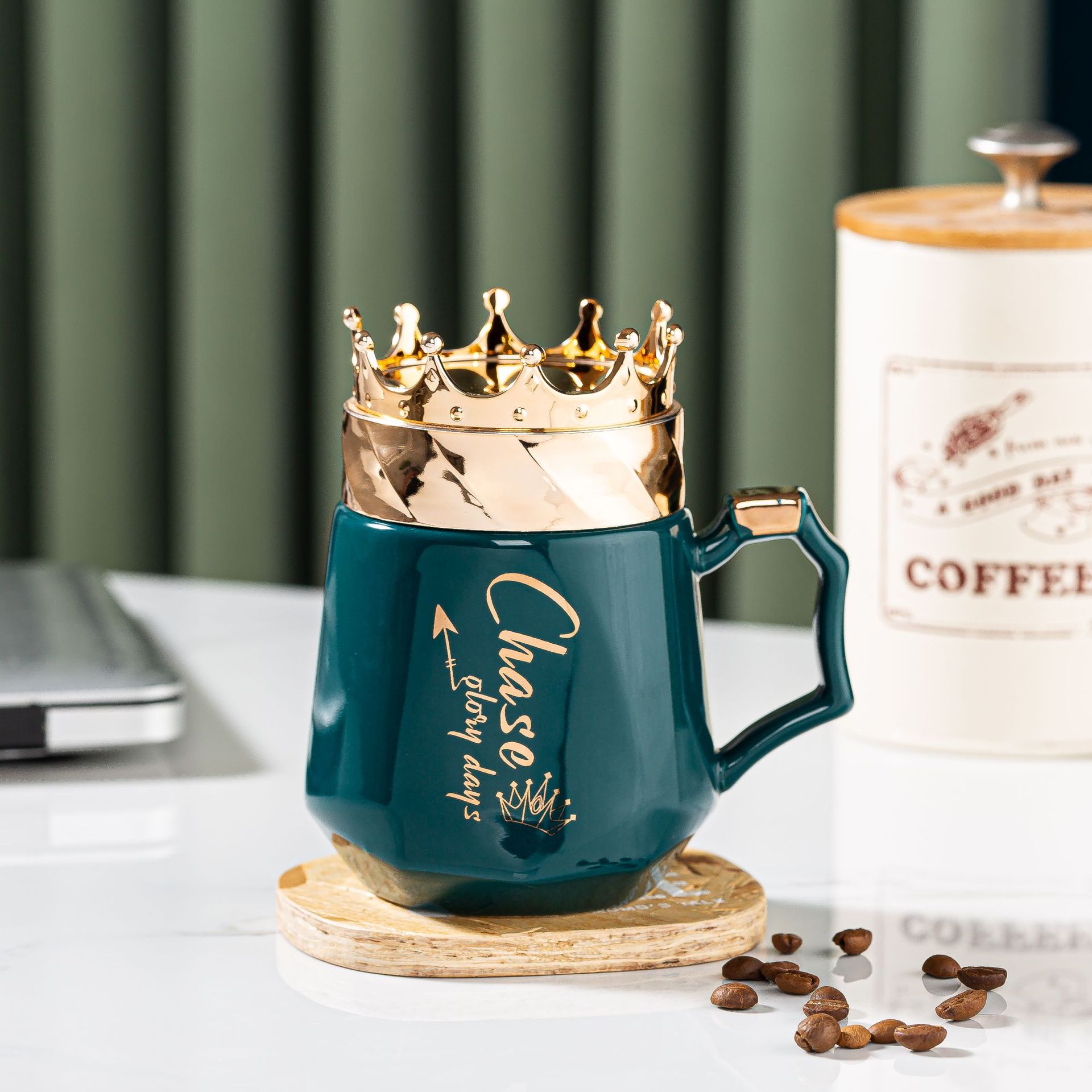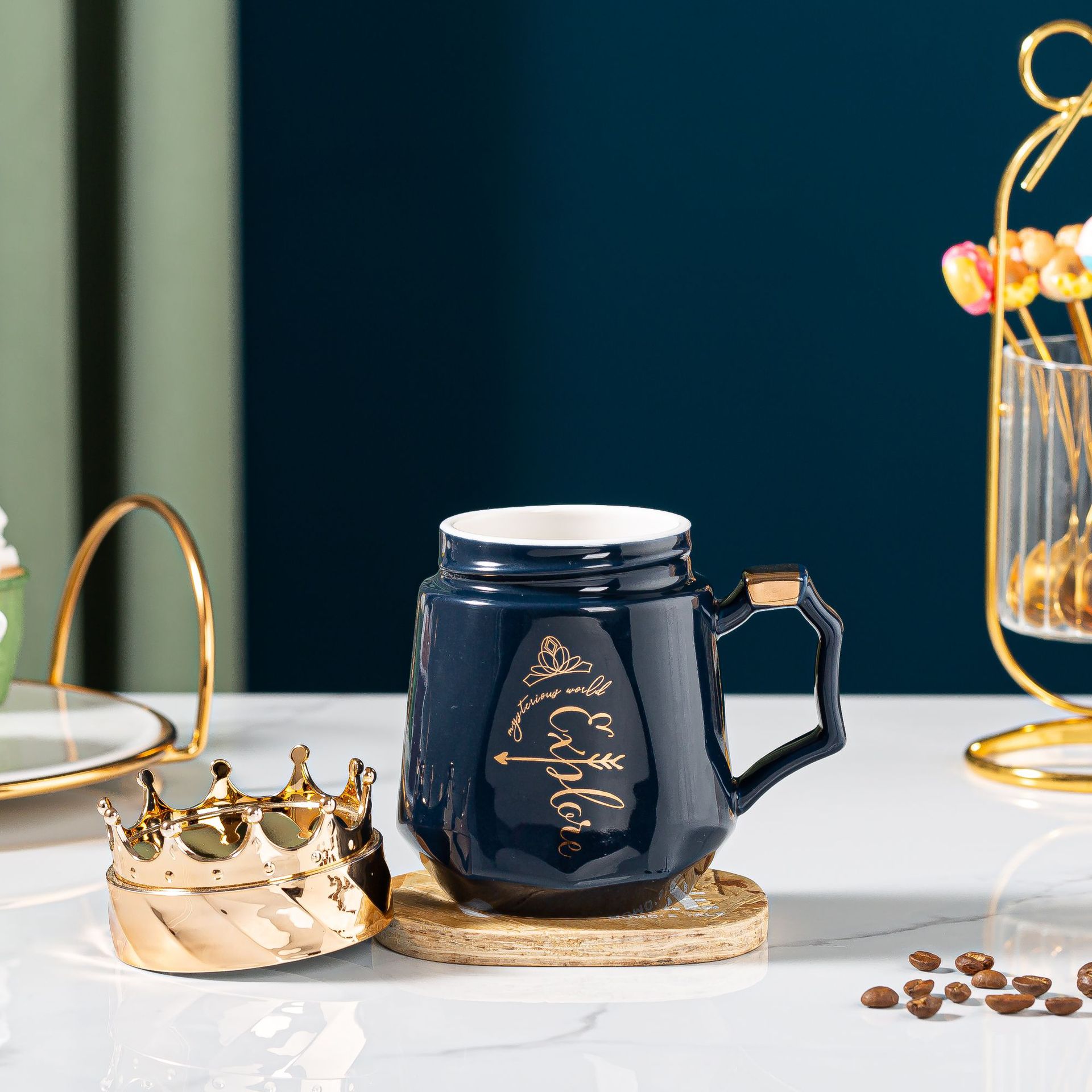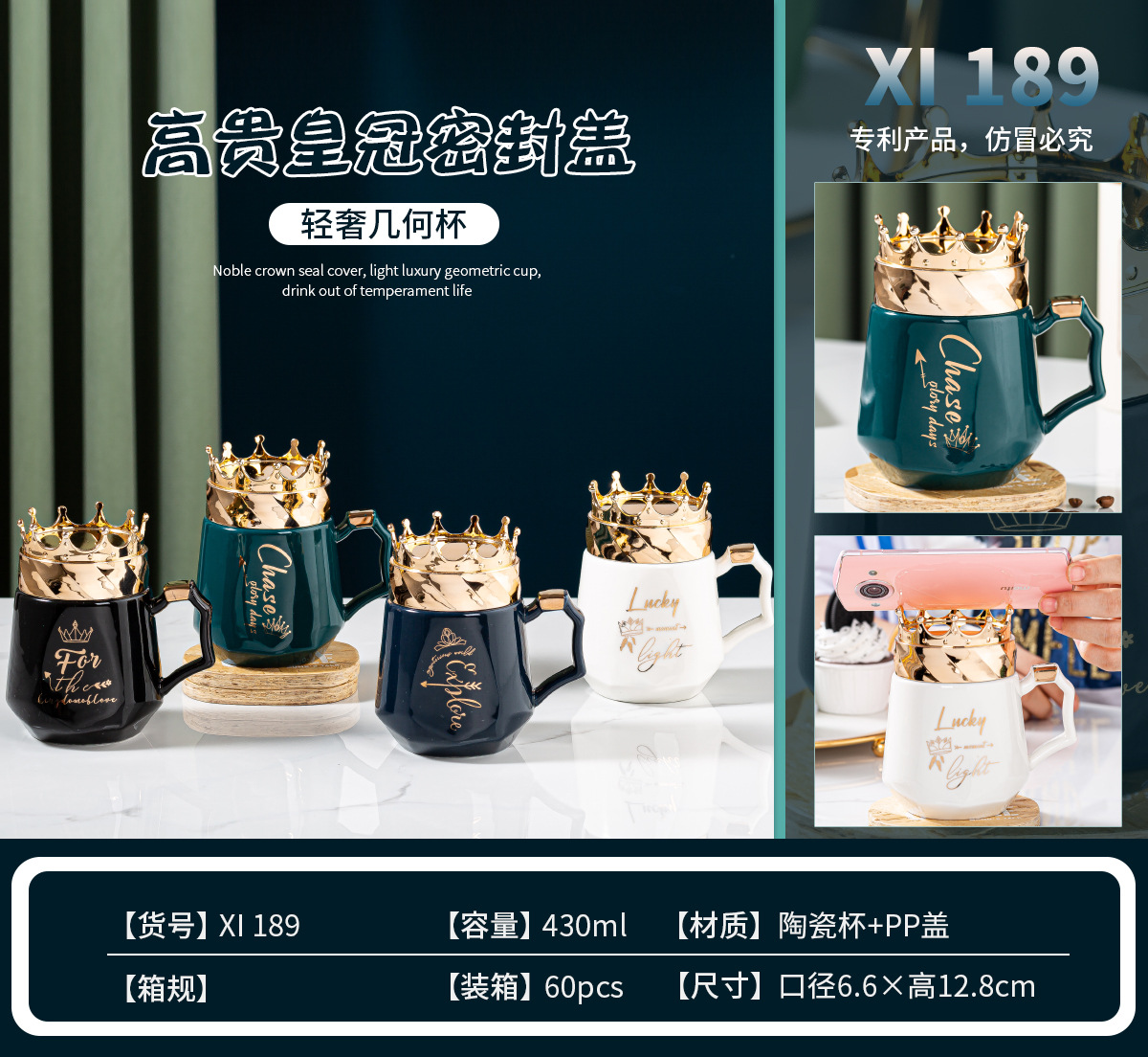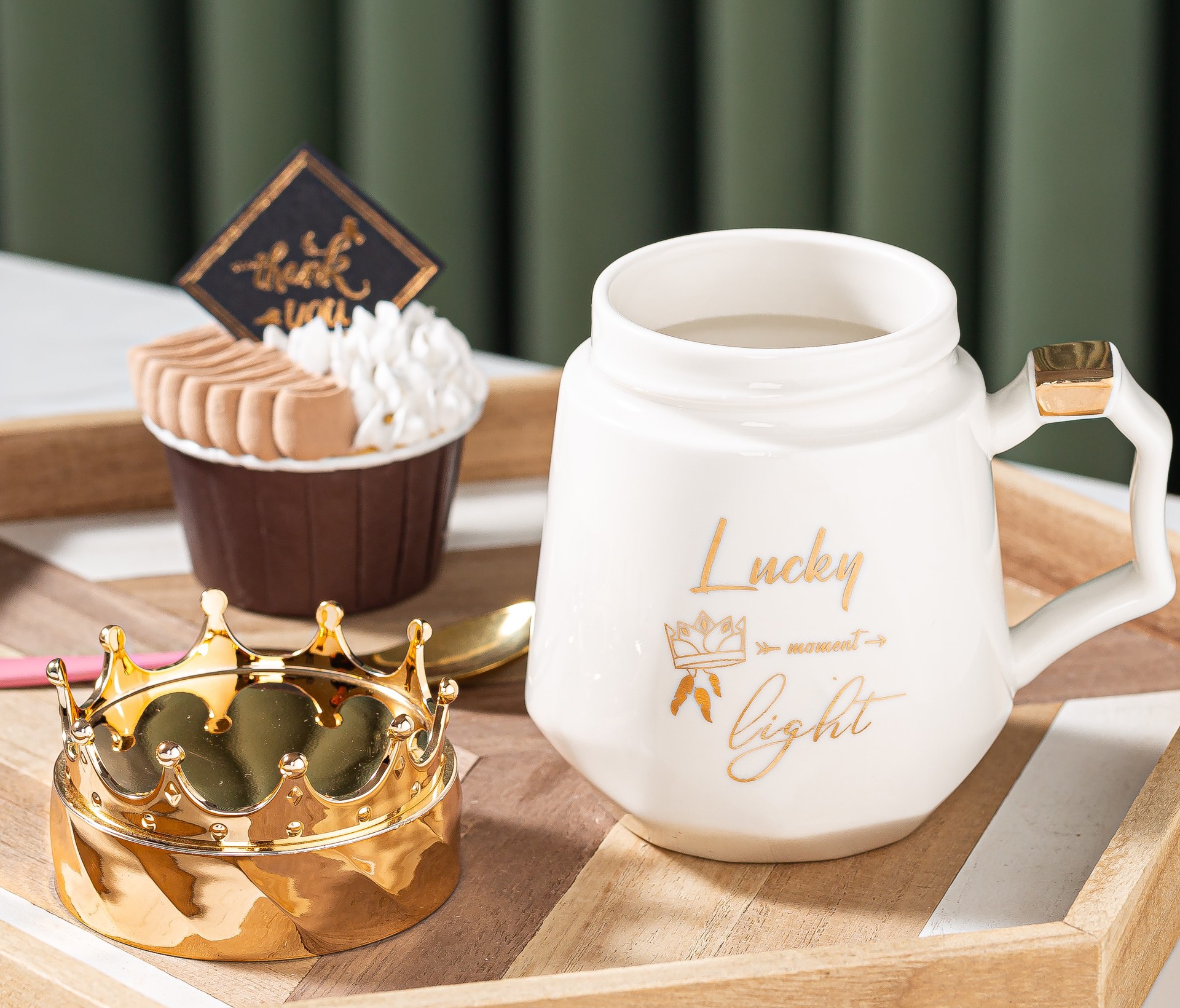 创意高颜值轻奢风皇冠陶瓷杯家用早餐牛奶杯商务礼品批发耐高温
