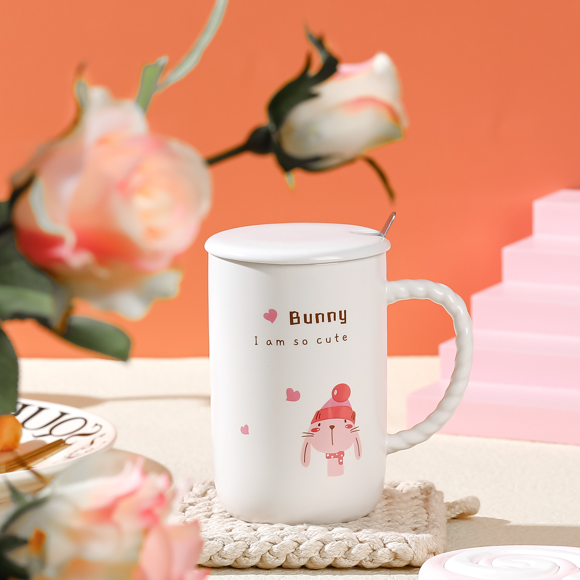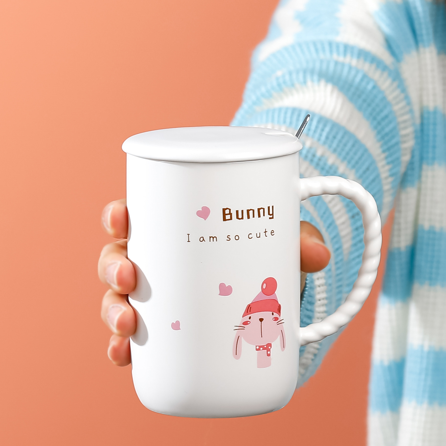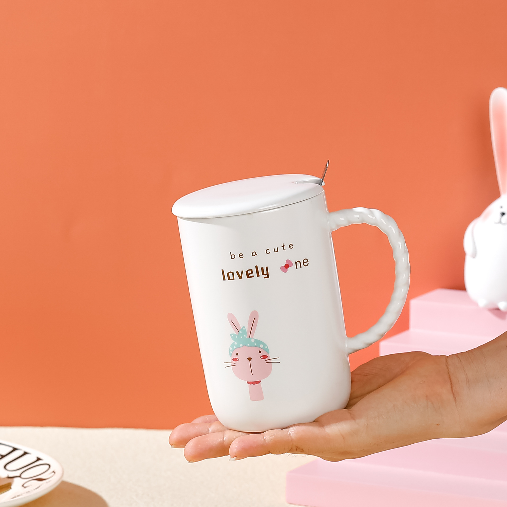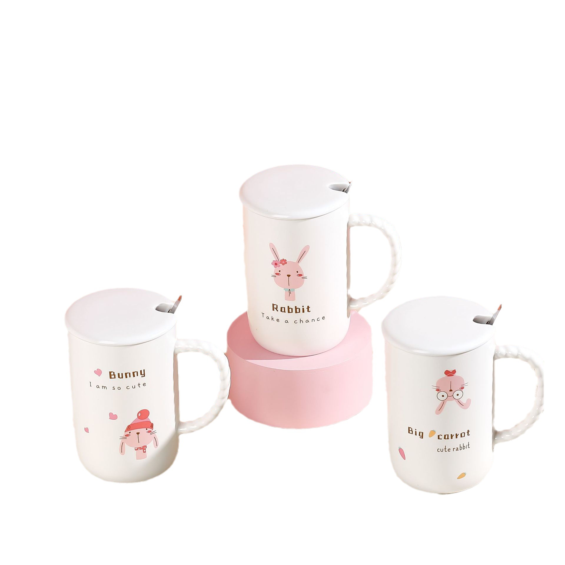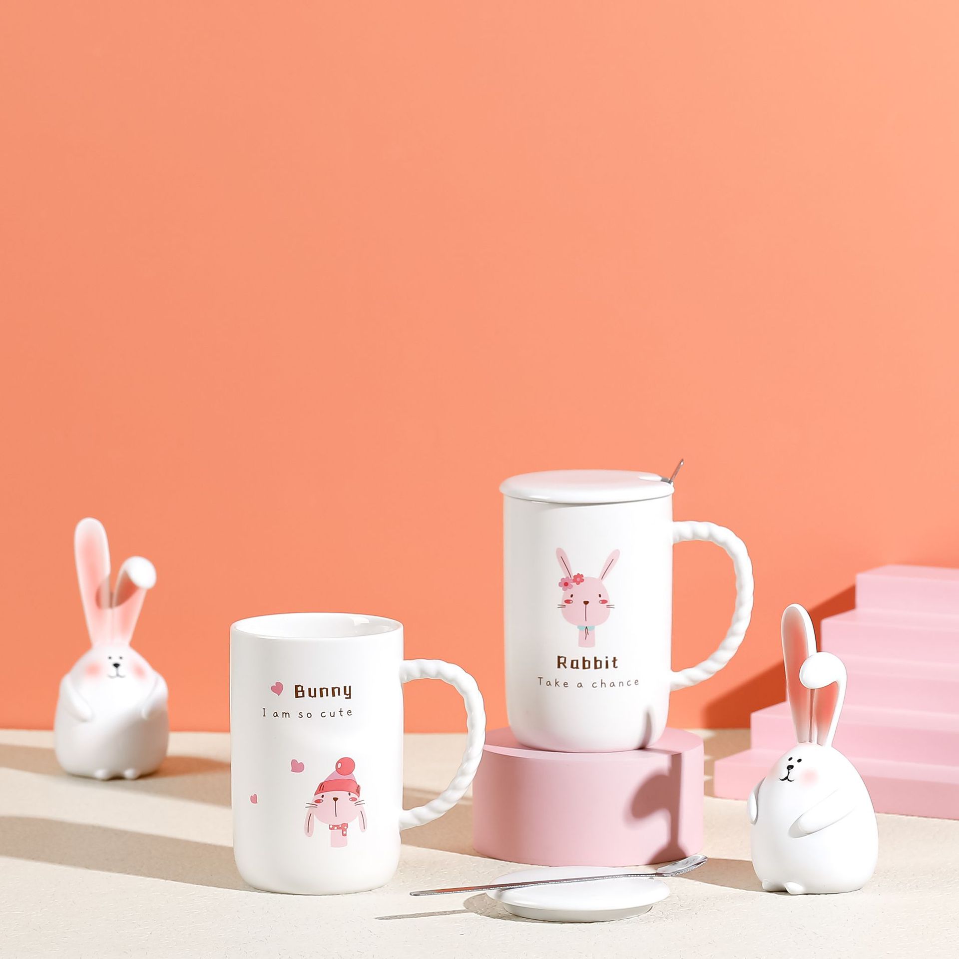 现代简约风家用高颜值大容量可爱兔兔陶瓷杯商务批发早餐牛奶杯