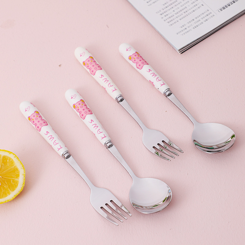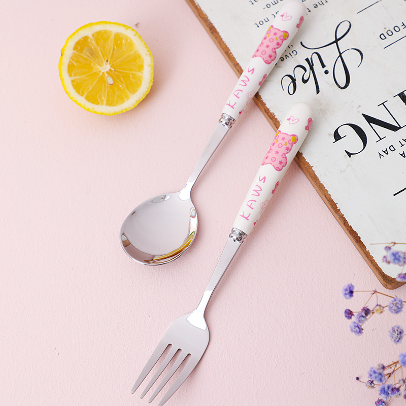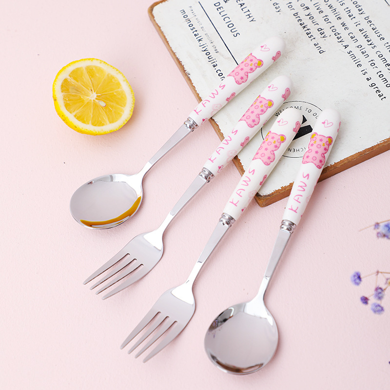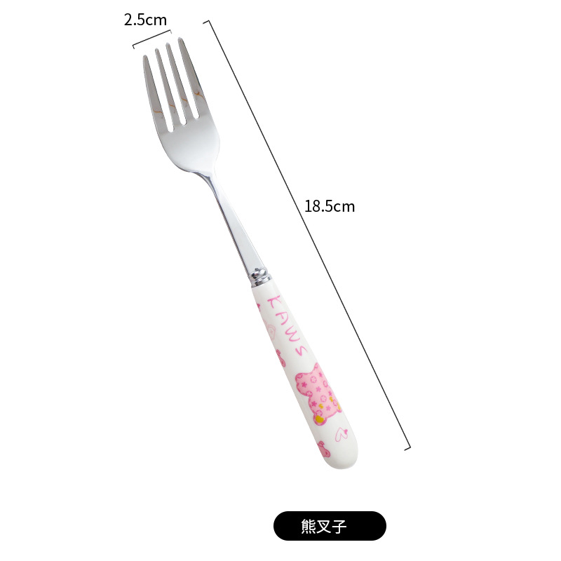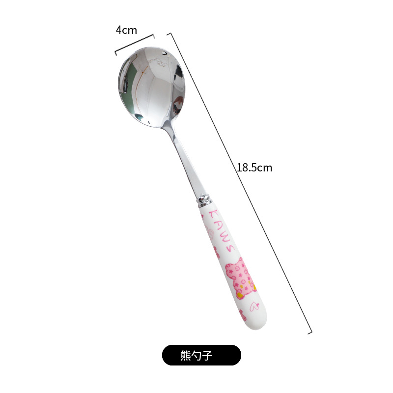 可爱中式暴力熊学生上班族陶瓷手柄不锈钢勺叉便携组合