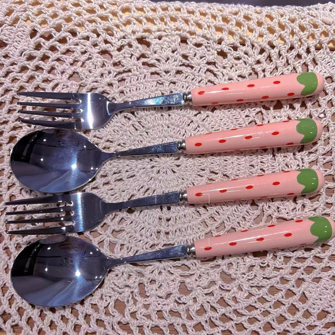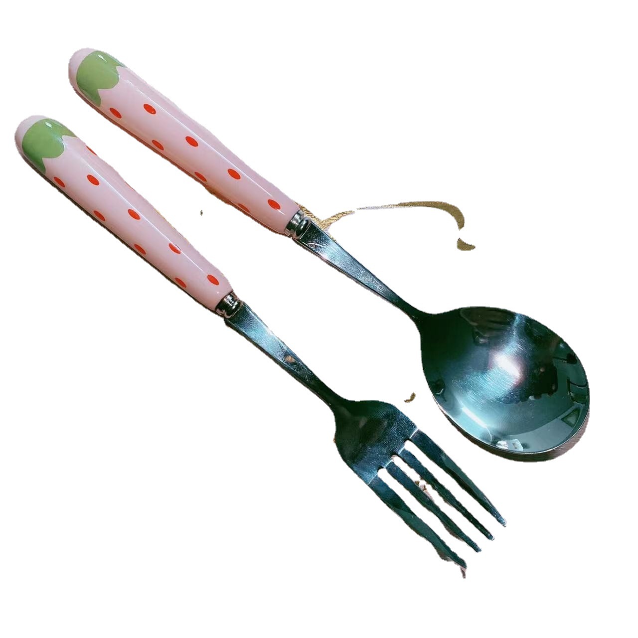 可爱草莓勺子叉子陶瓷柄少女心家用卡通水果叉学生餐具
