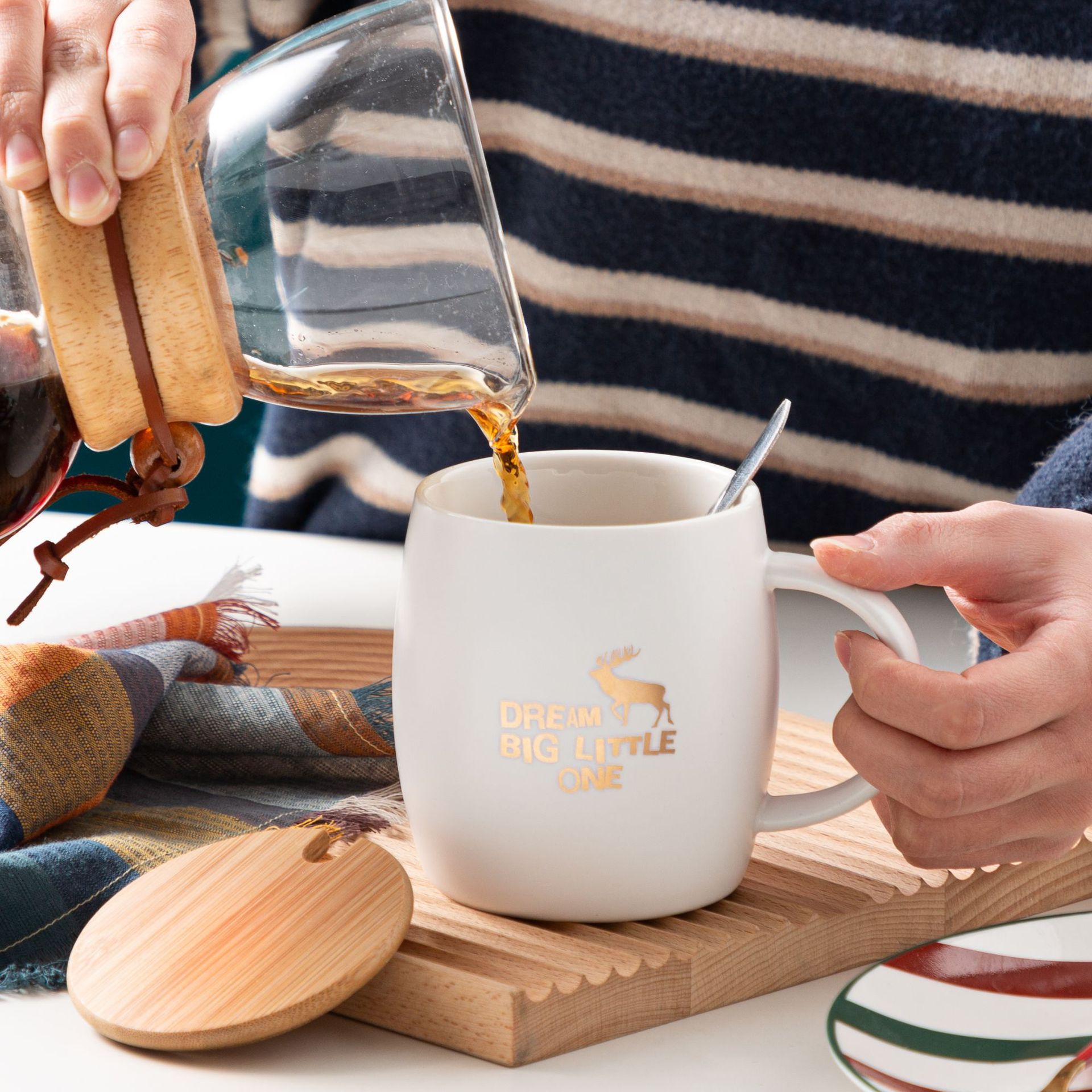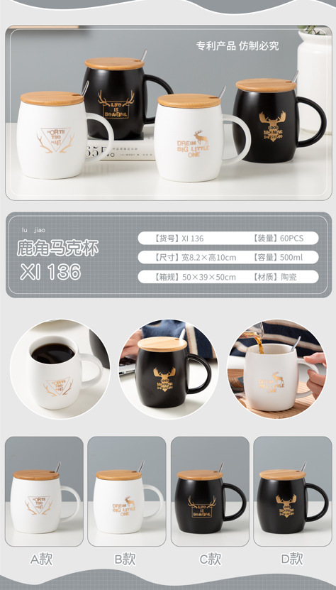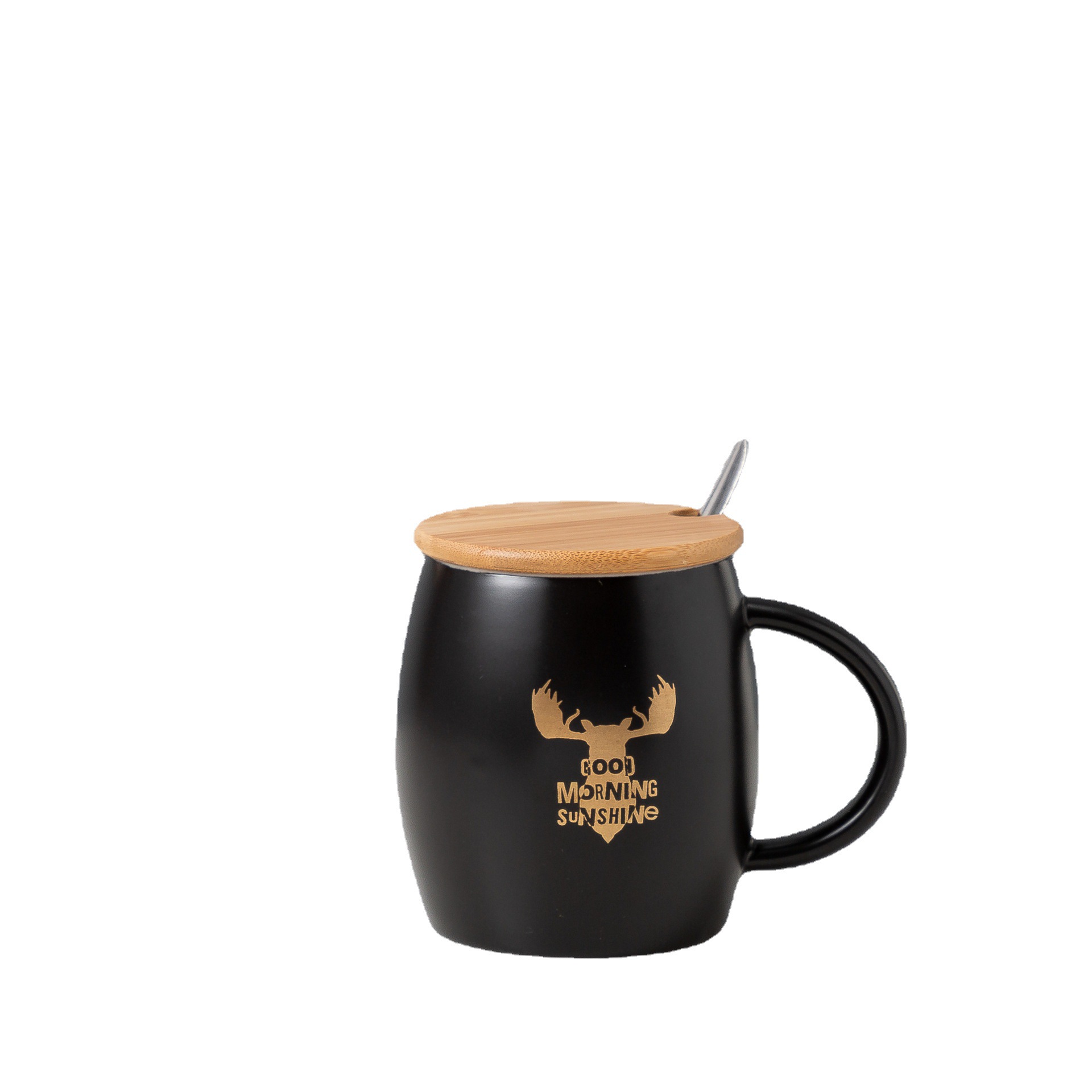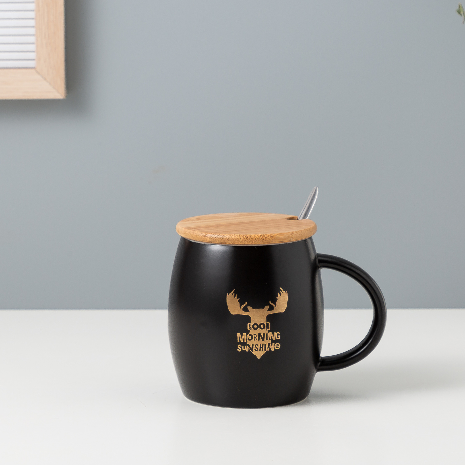 家用高颜值创意简约陶瓷马克水杯带木盖带勺子早餐牛奶杯商务礼品