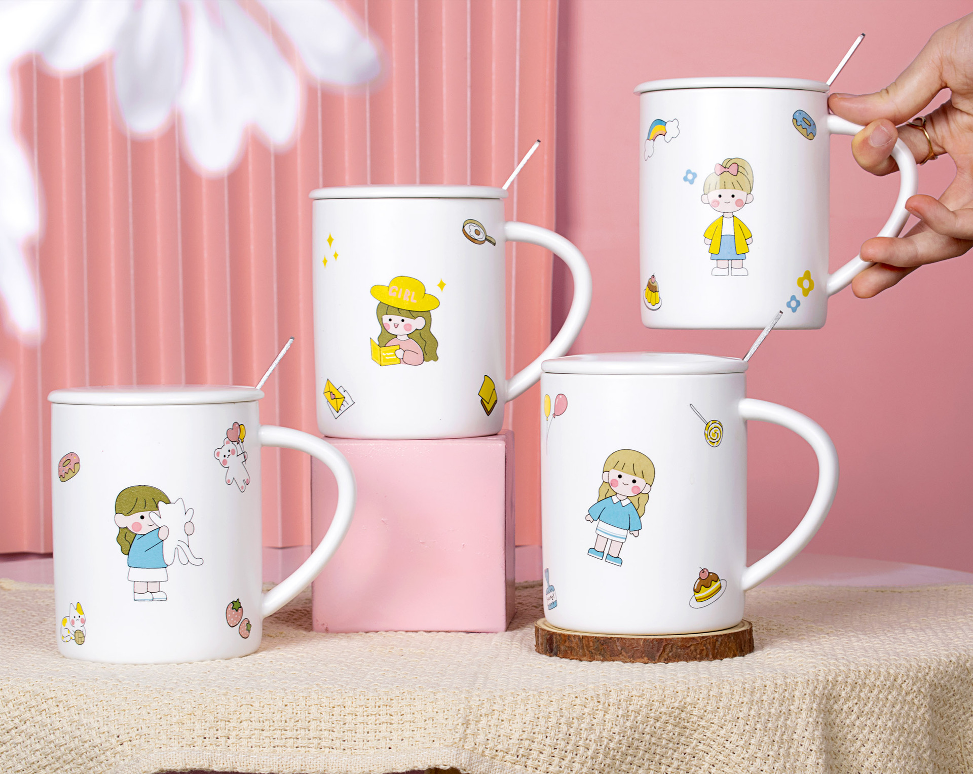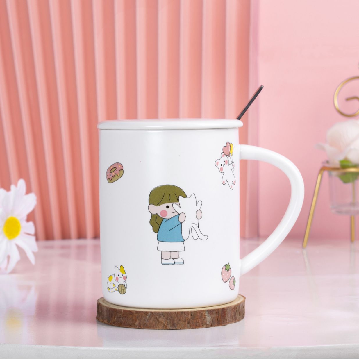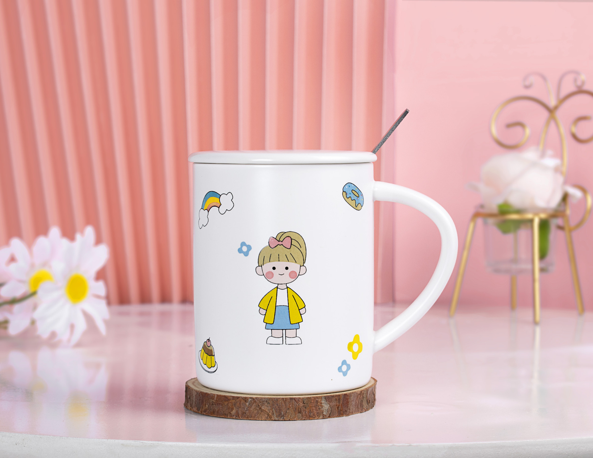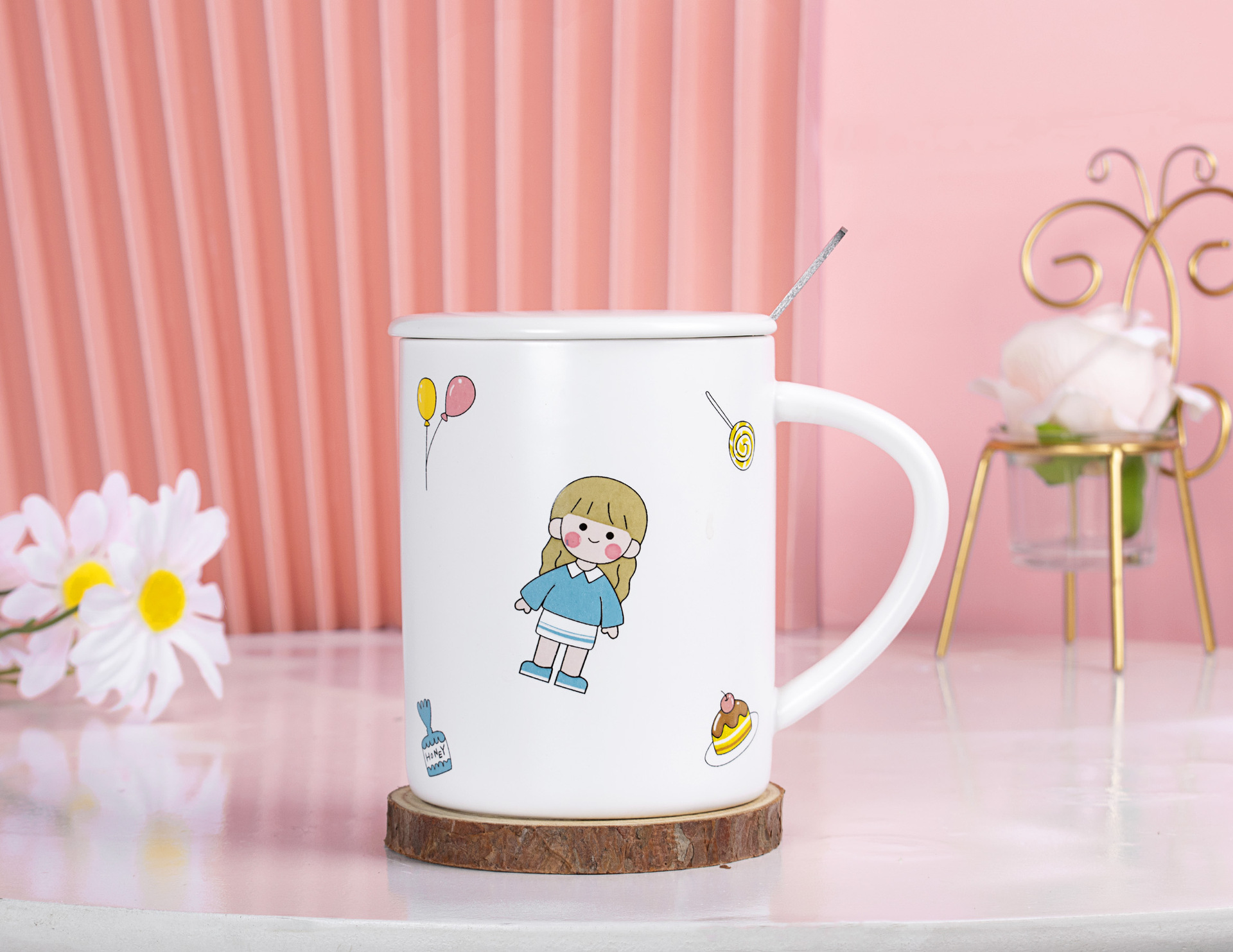 家用个性创意ins卡通少女心可爱女孩陶瓷马克水杯早餐牛奶杯