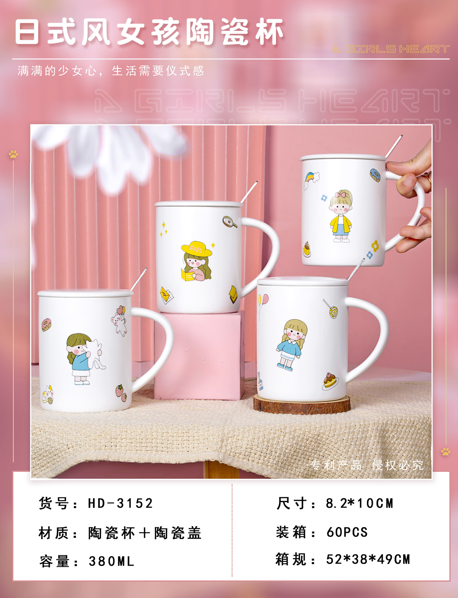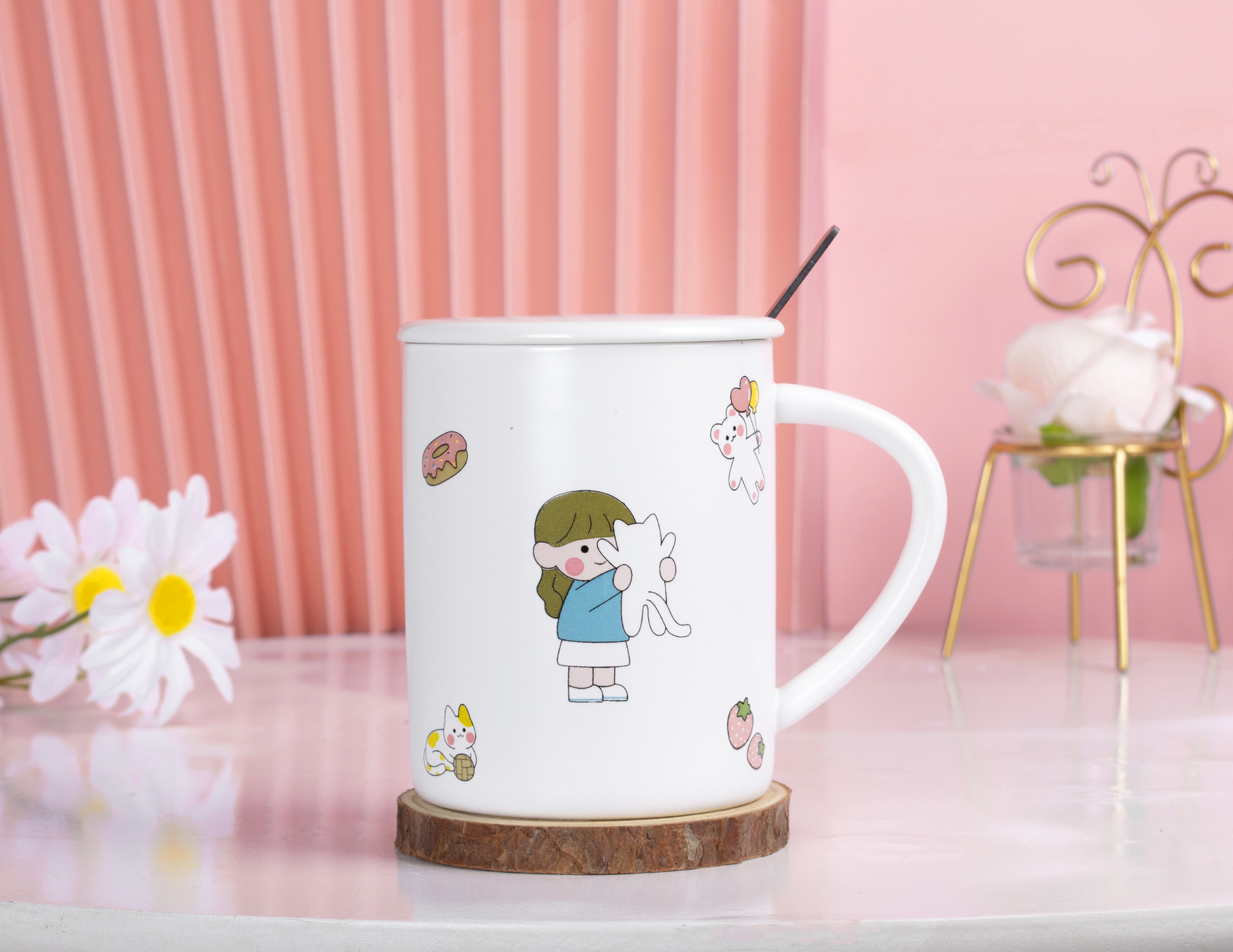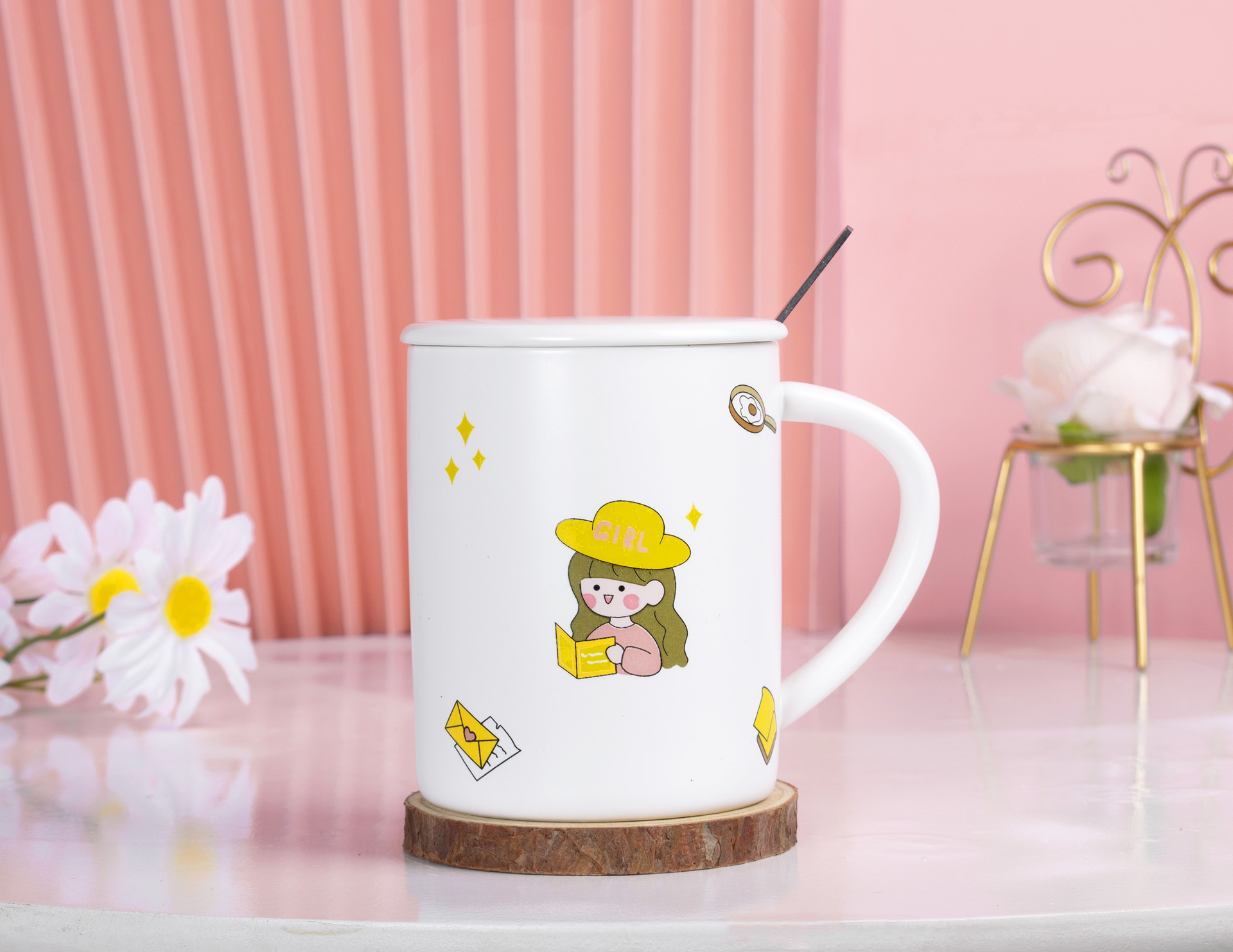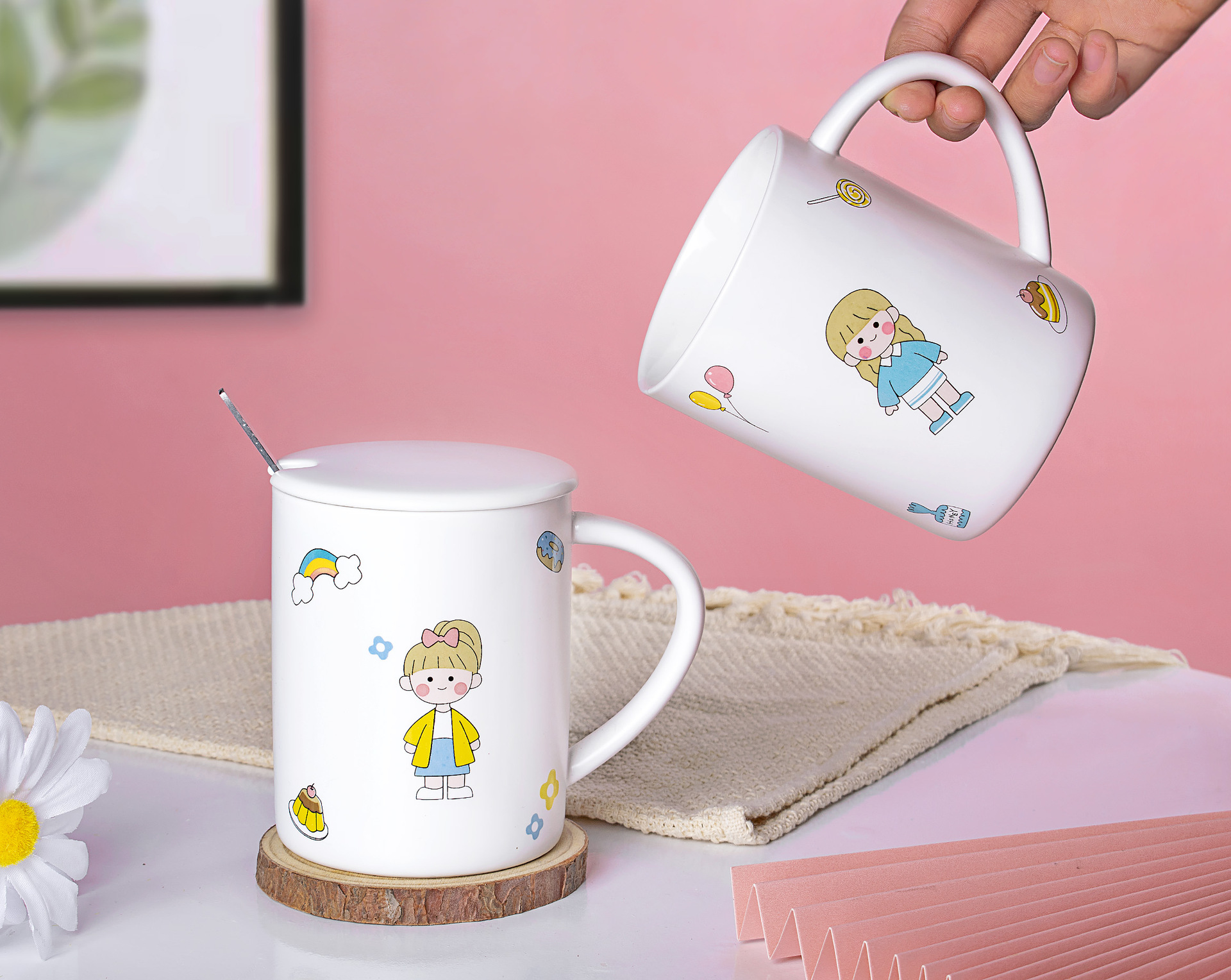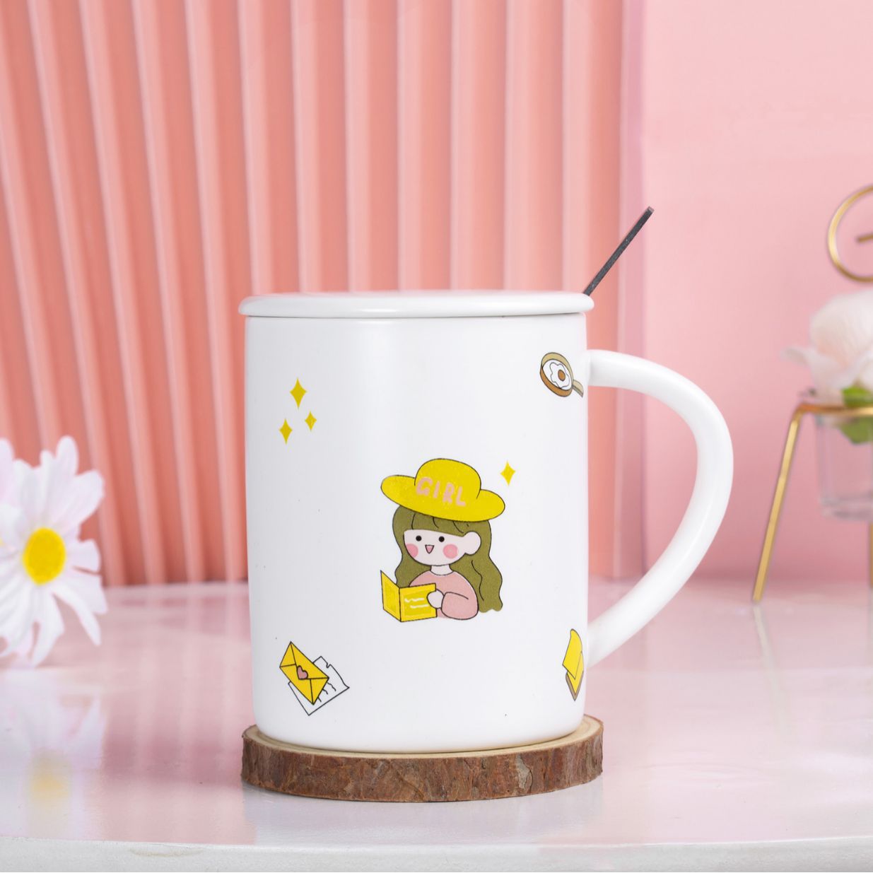 家用个性创意ins卡通少女心可爱女孩陶瓷马克水杯早餐牛奶杯