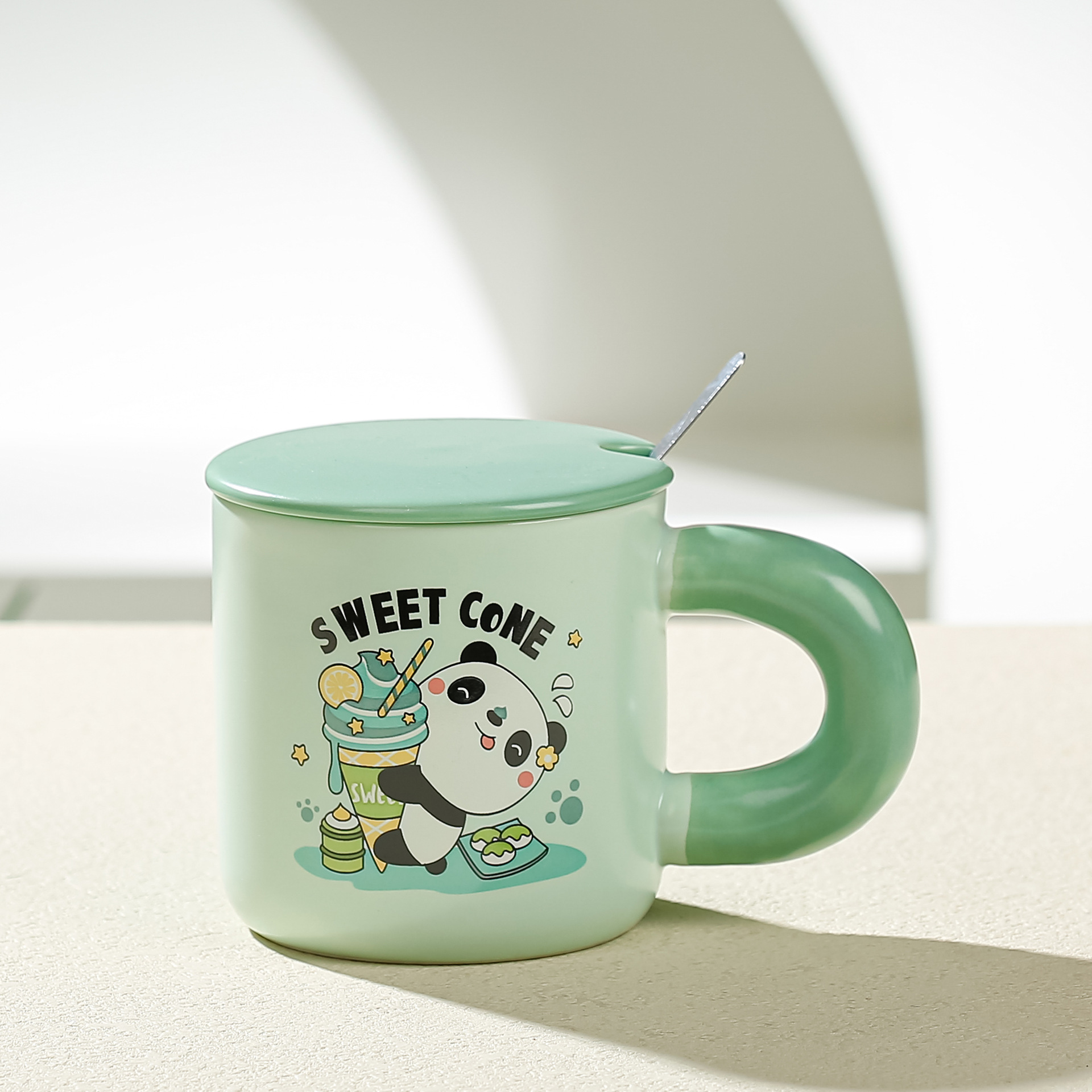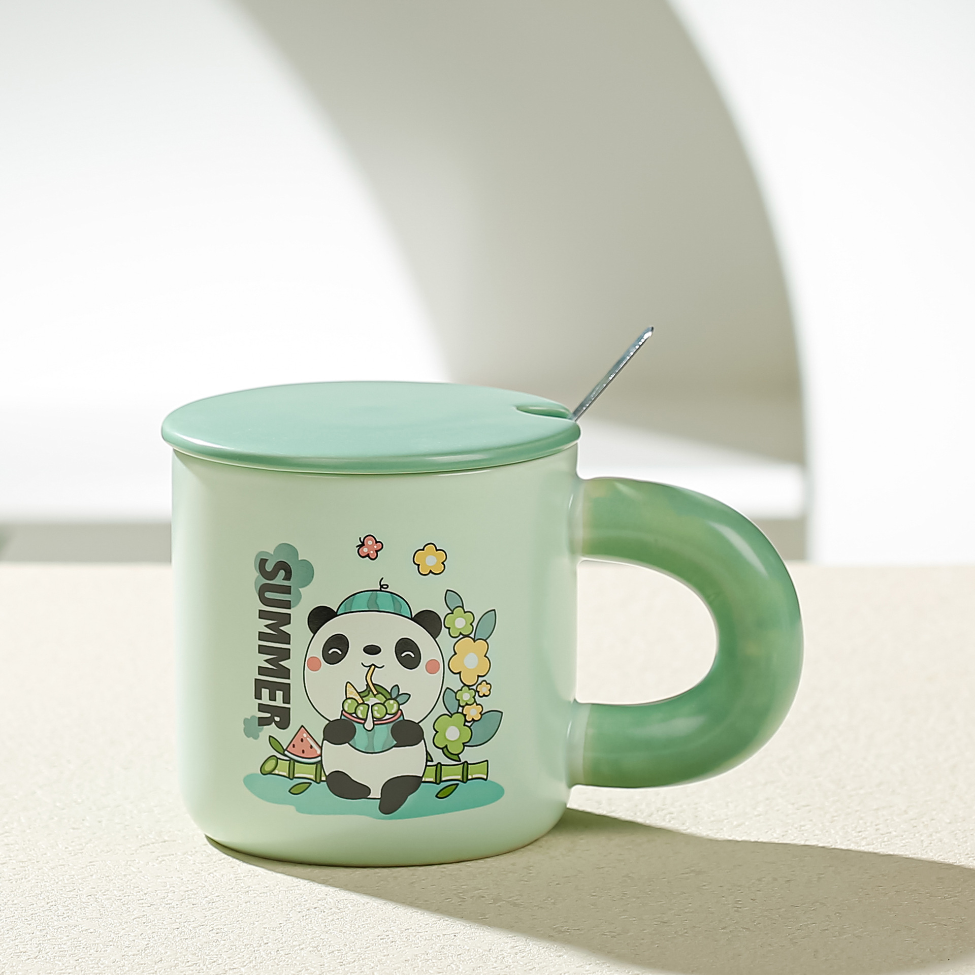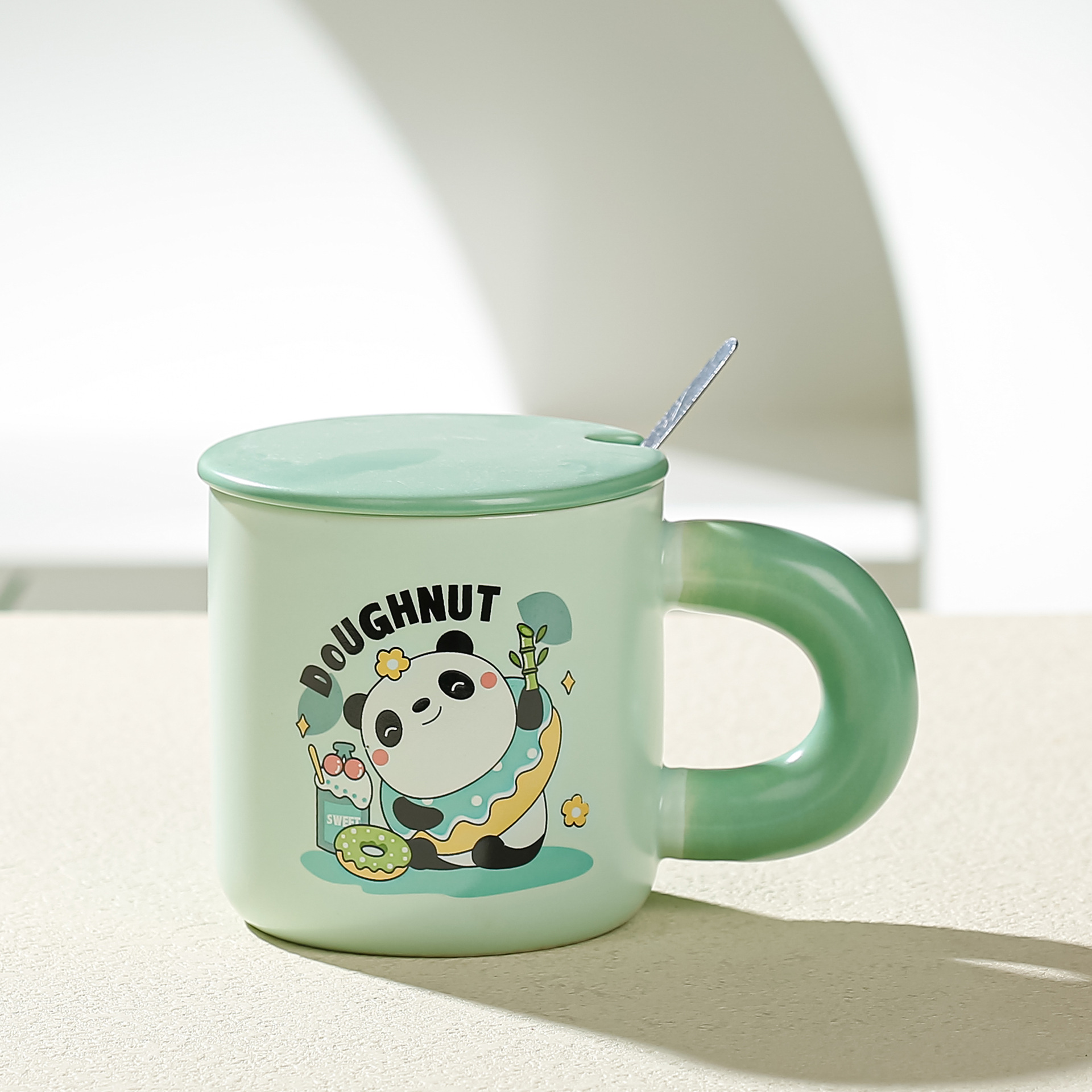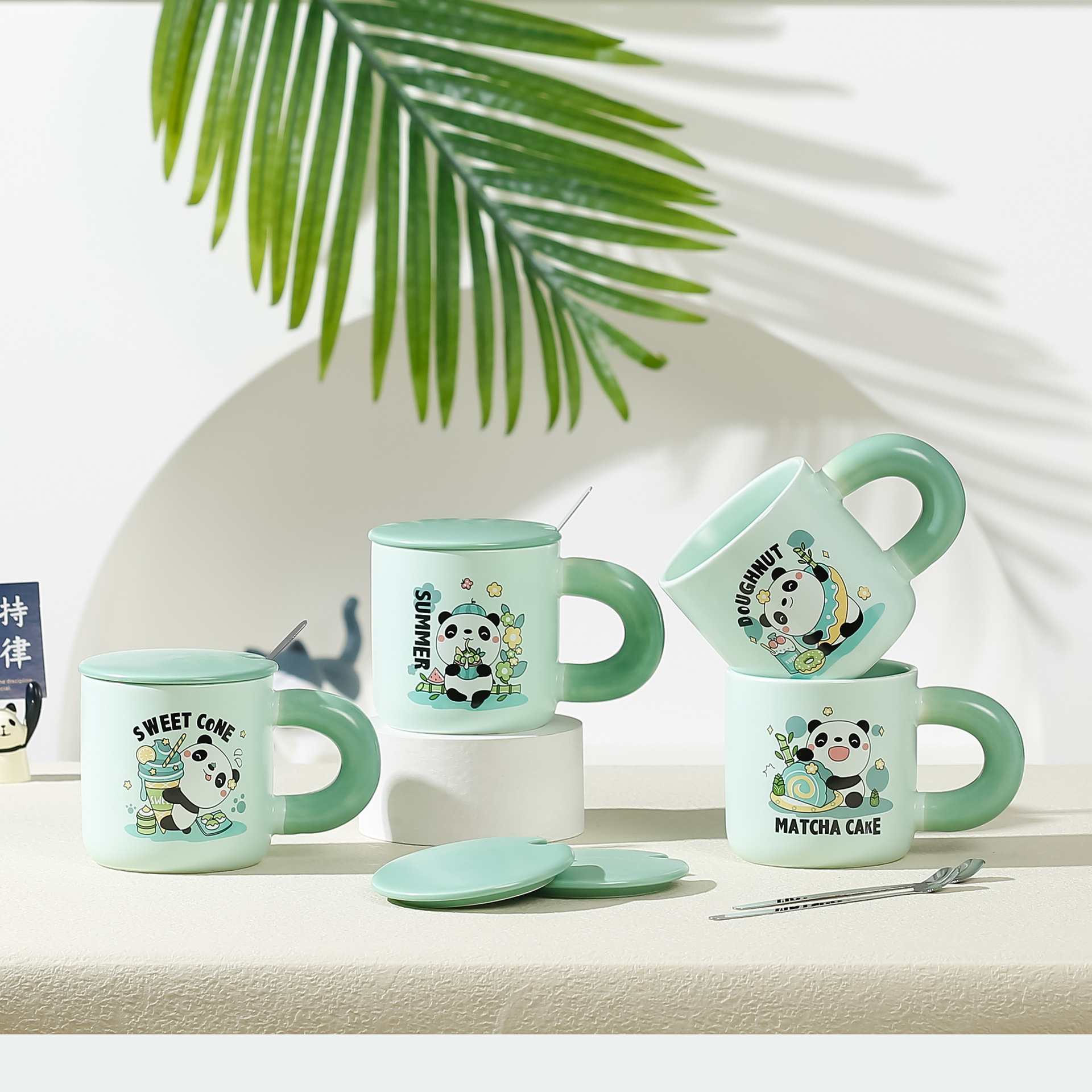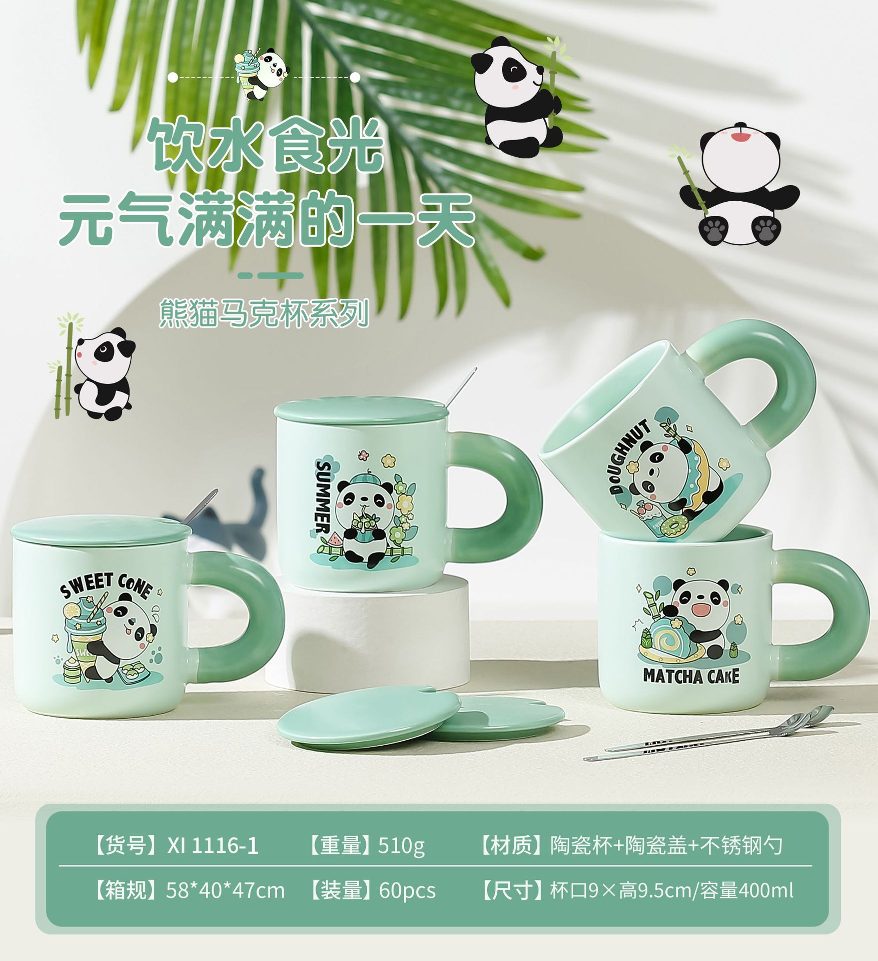家用创意高颜值卡通可爱熊猫陶瓷马克杯学生早餐牛奶杯耐高温