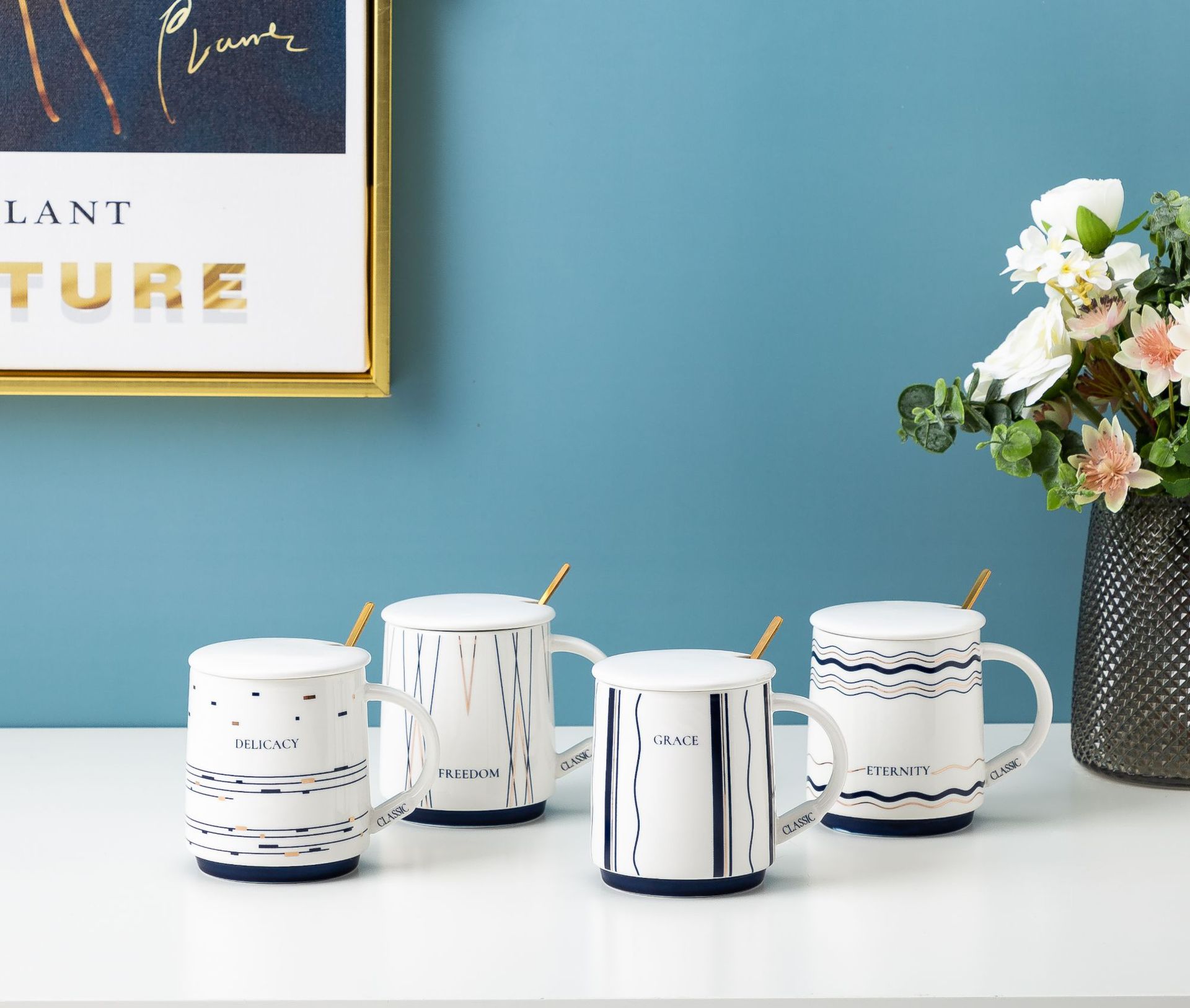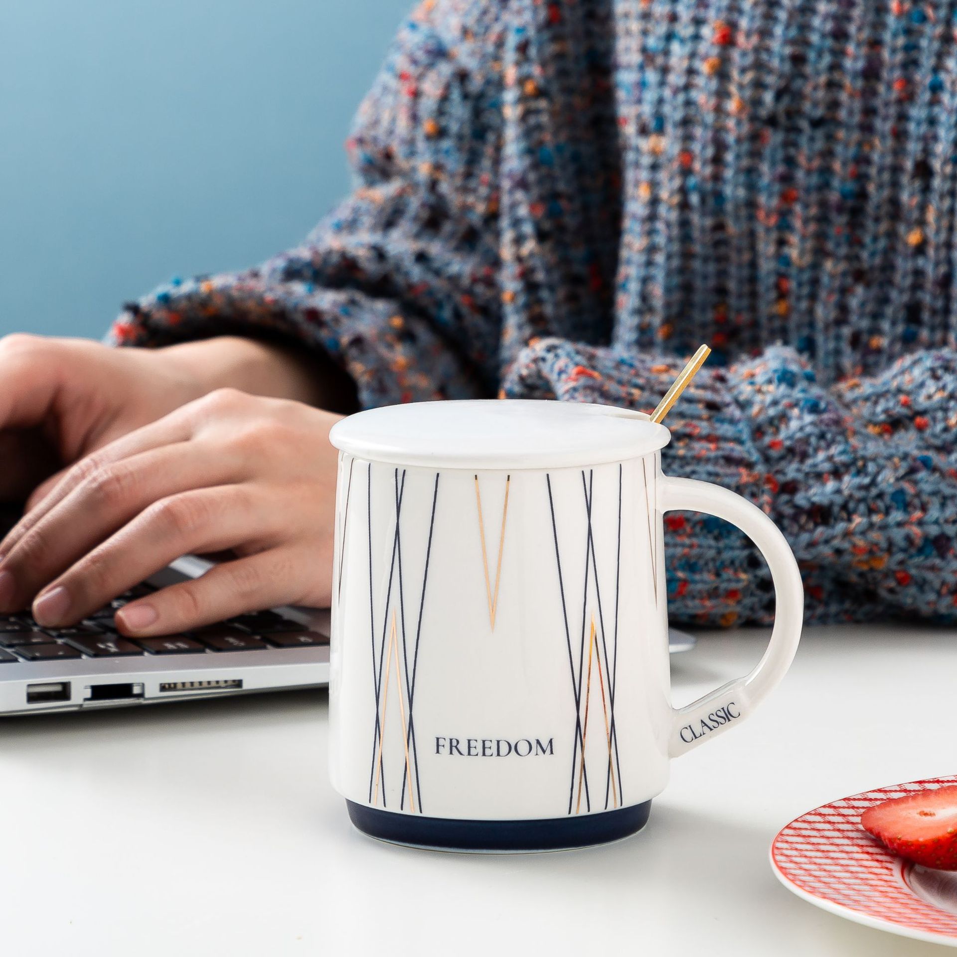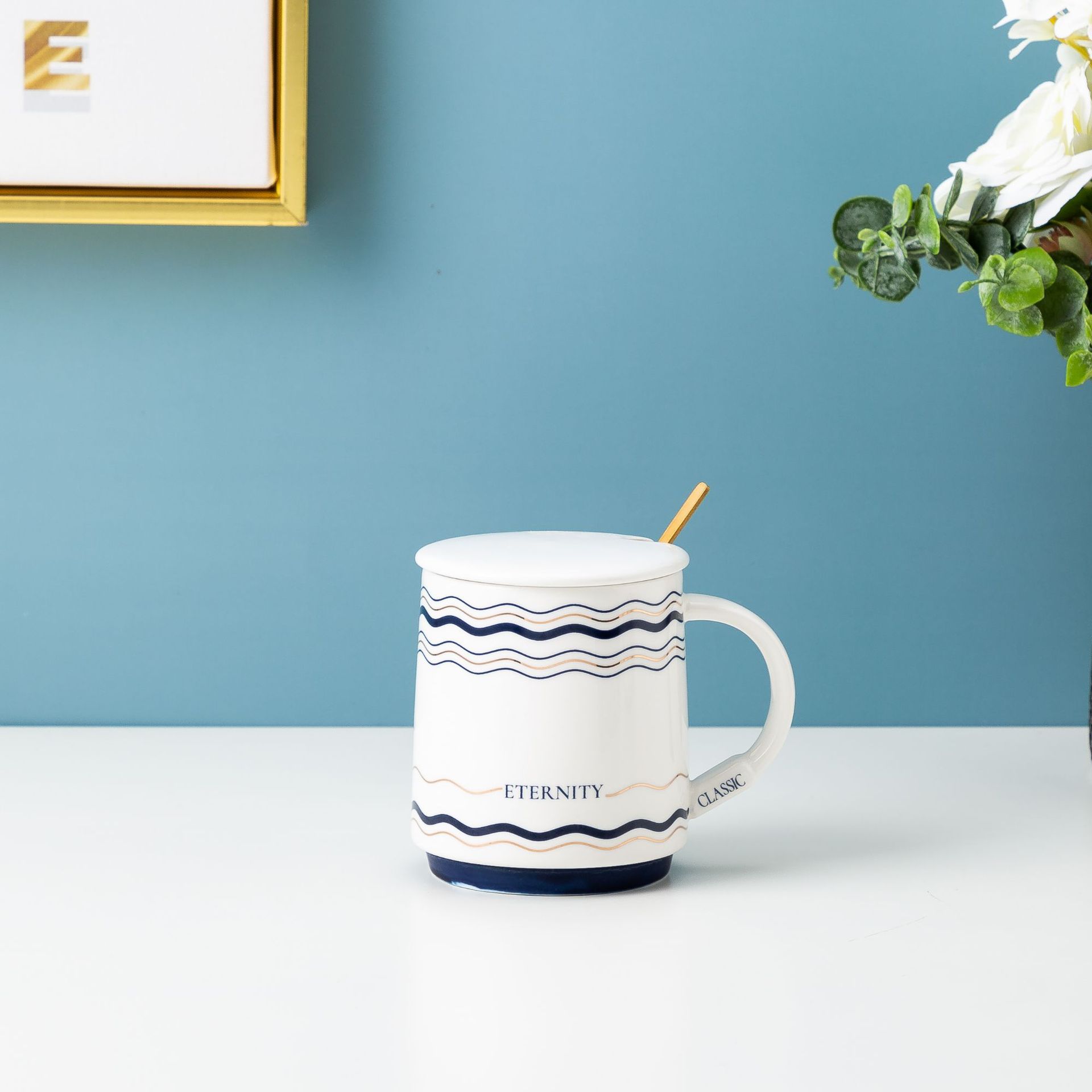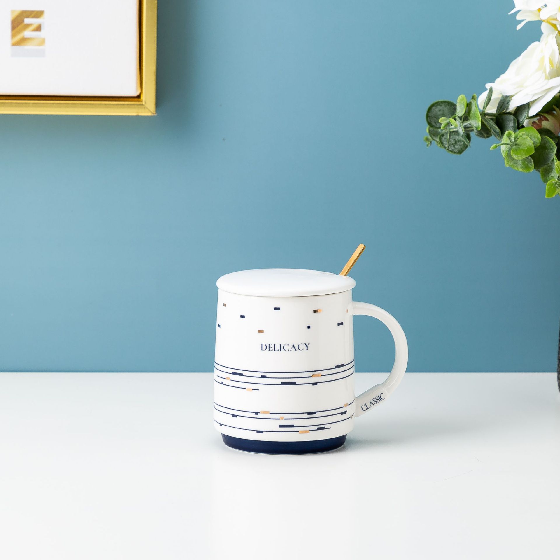 创意高颜值轻奢风线条陶瓷杯带盖勺大容量家用早餐牛奶学生宿舍