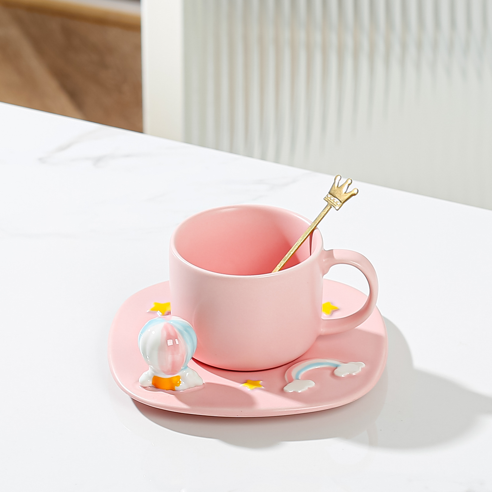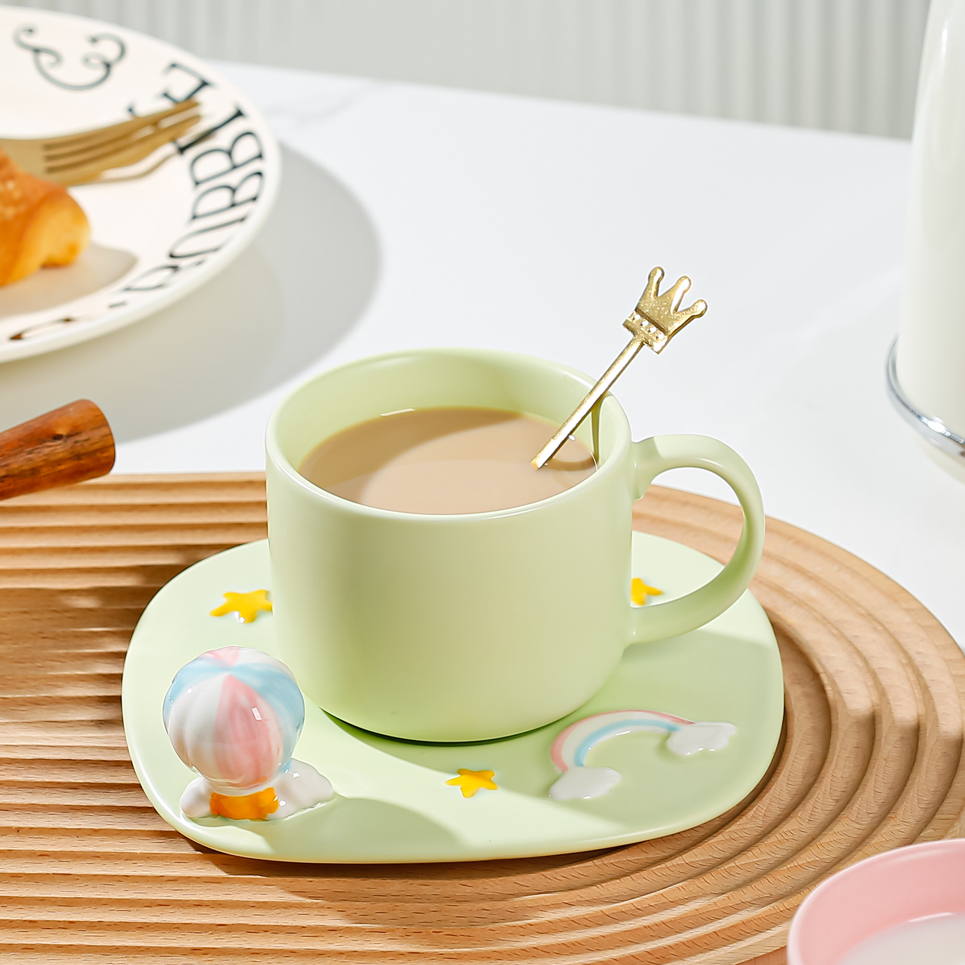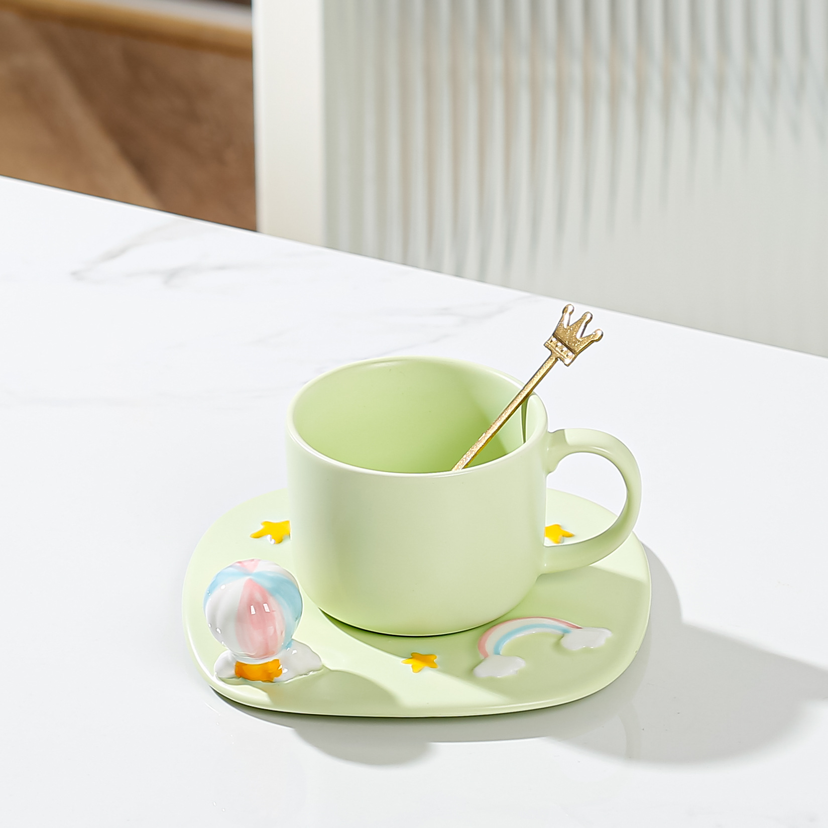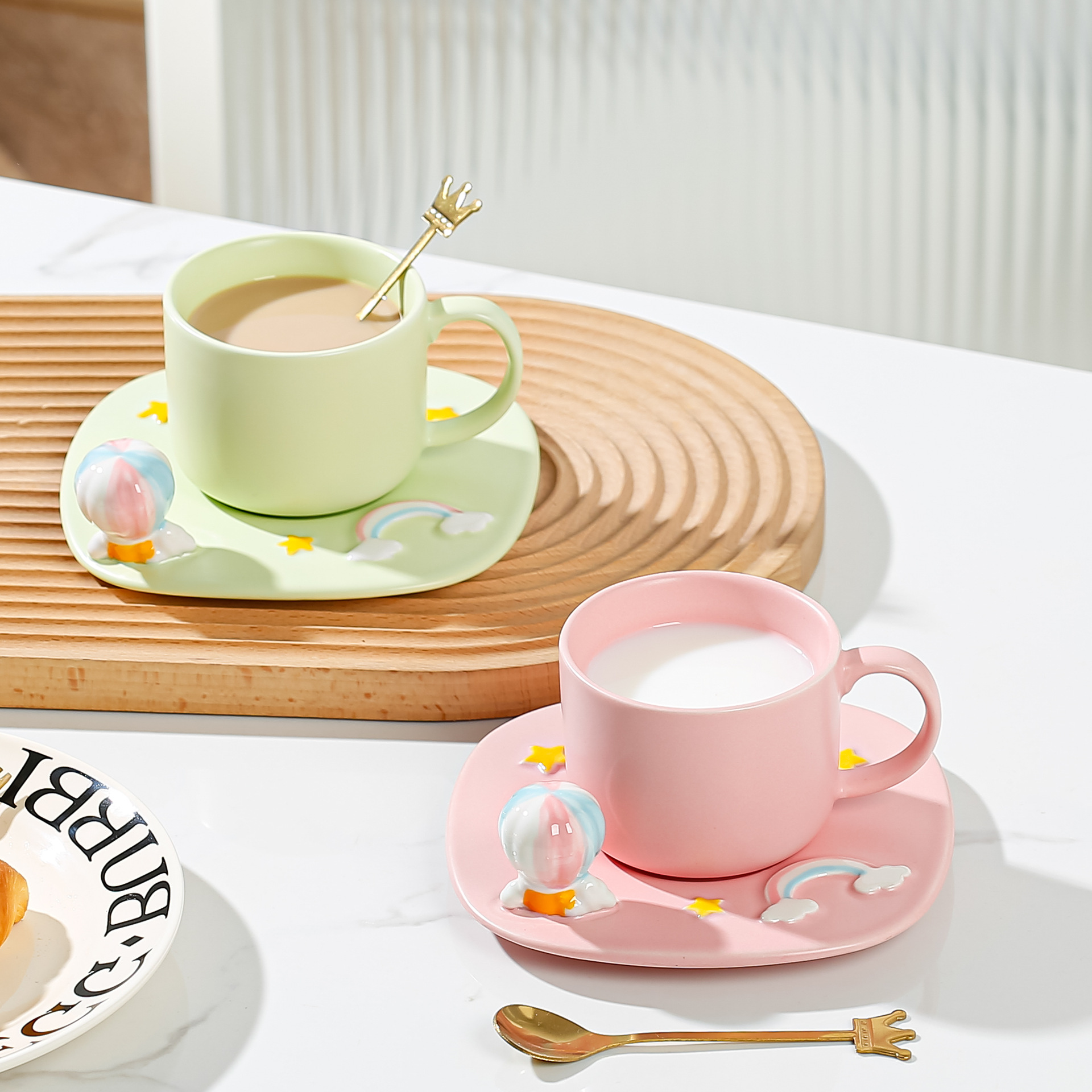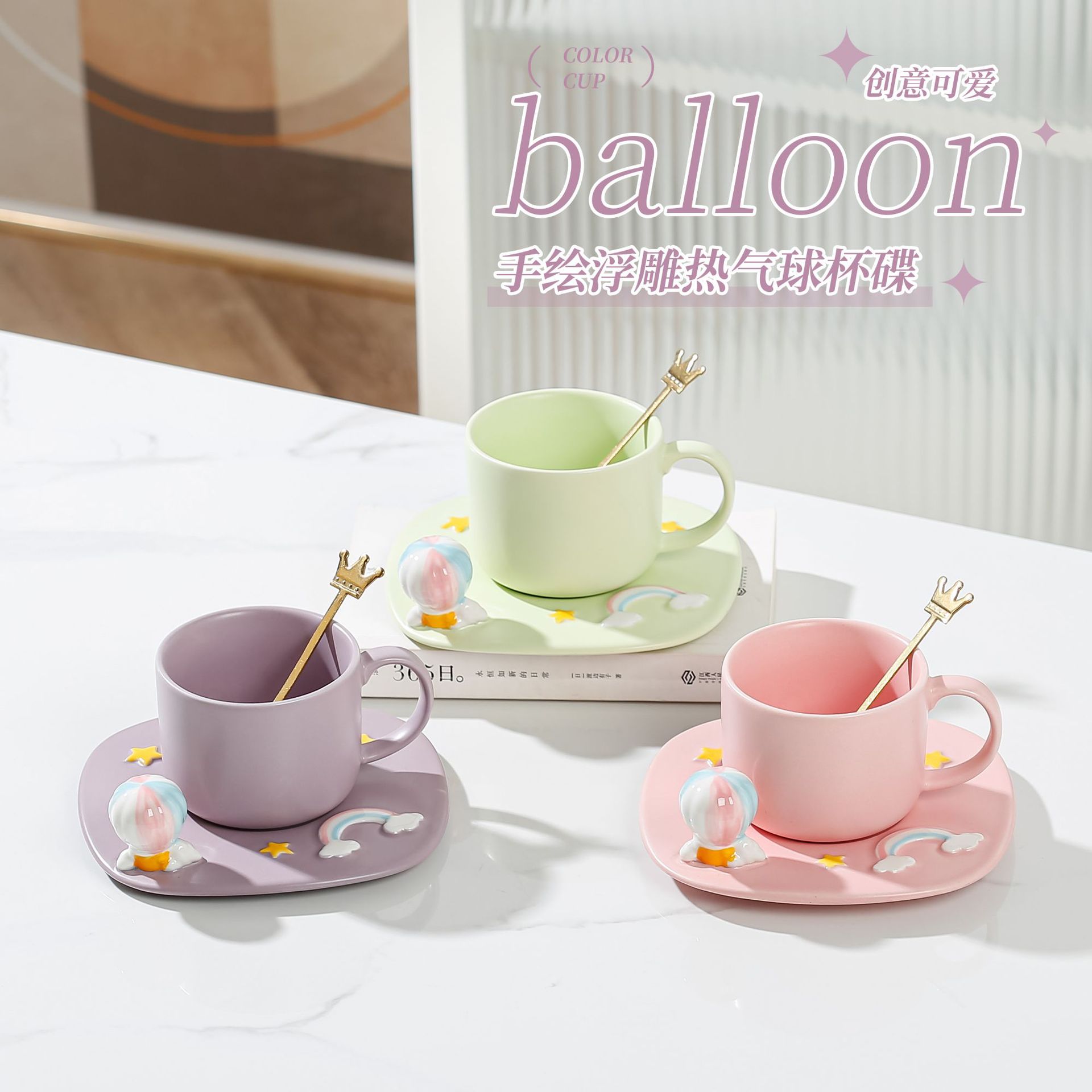 创意高颜值杯碟套装热气球皇冠陶瓷杯办公室早餐牛奶杯商务批发