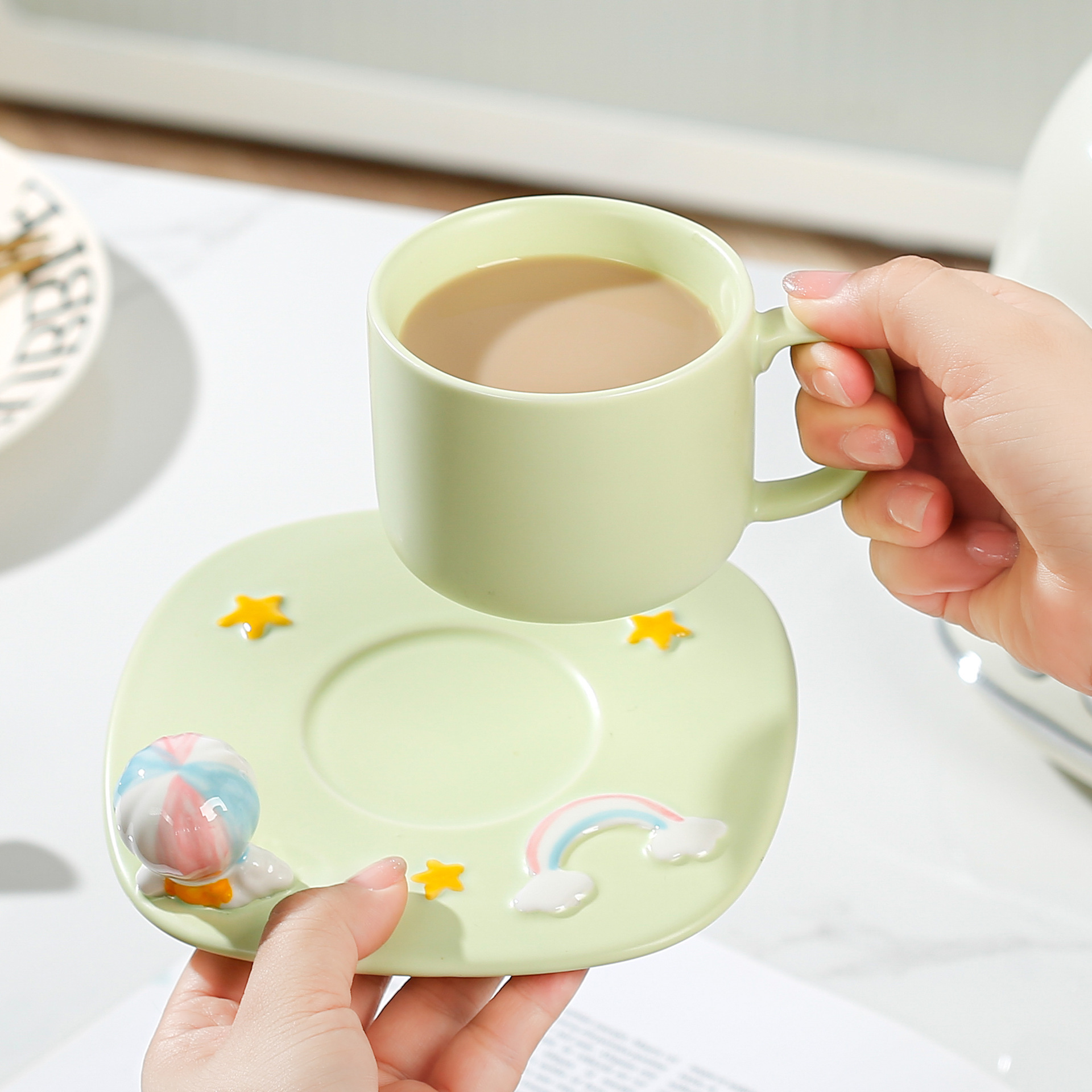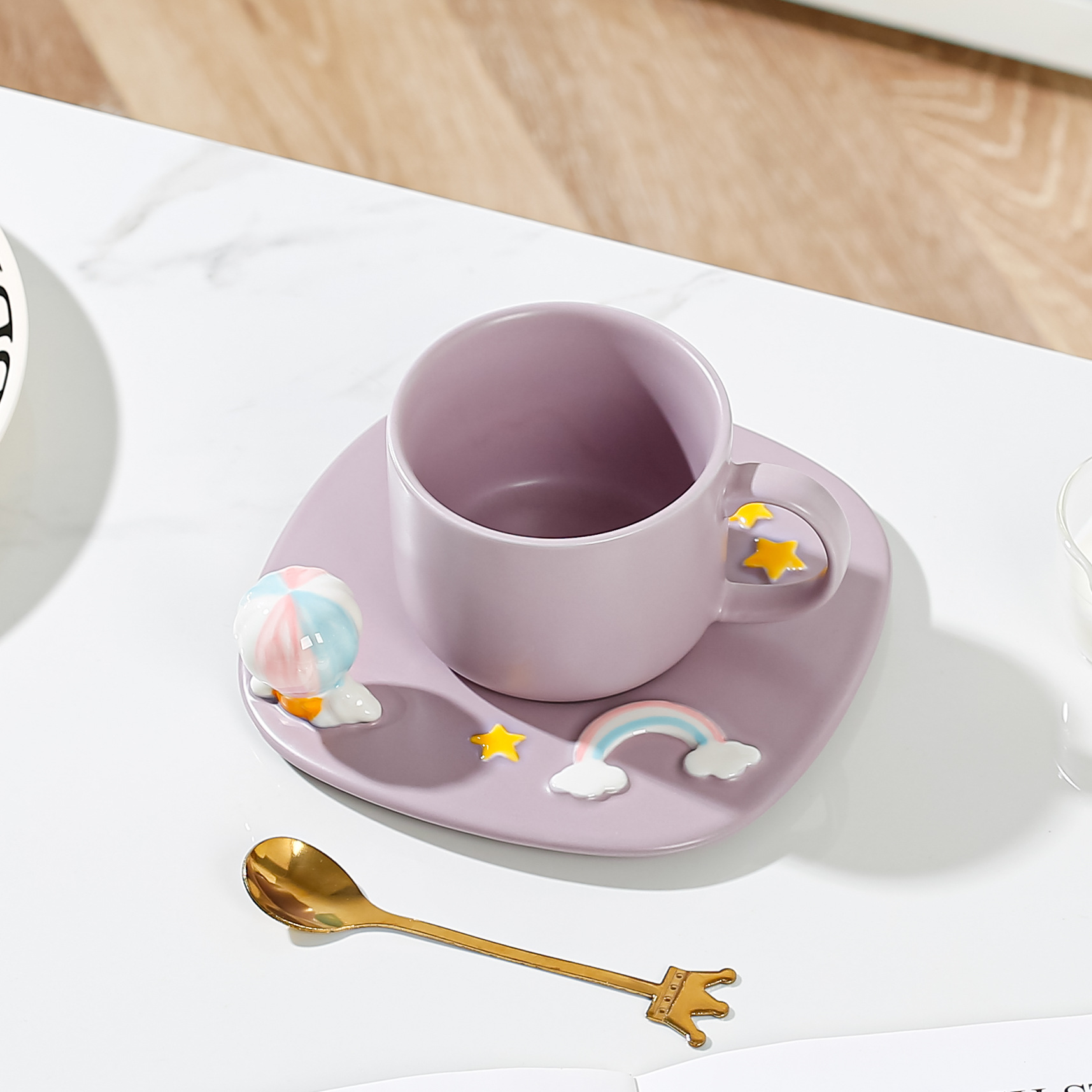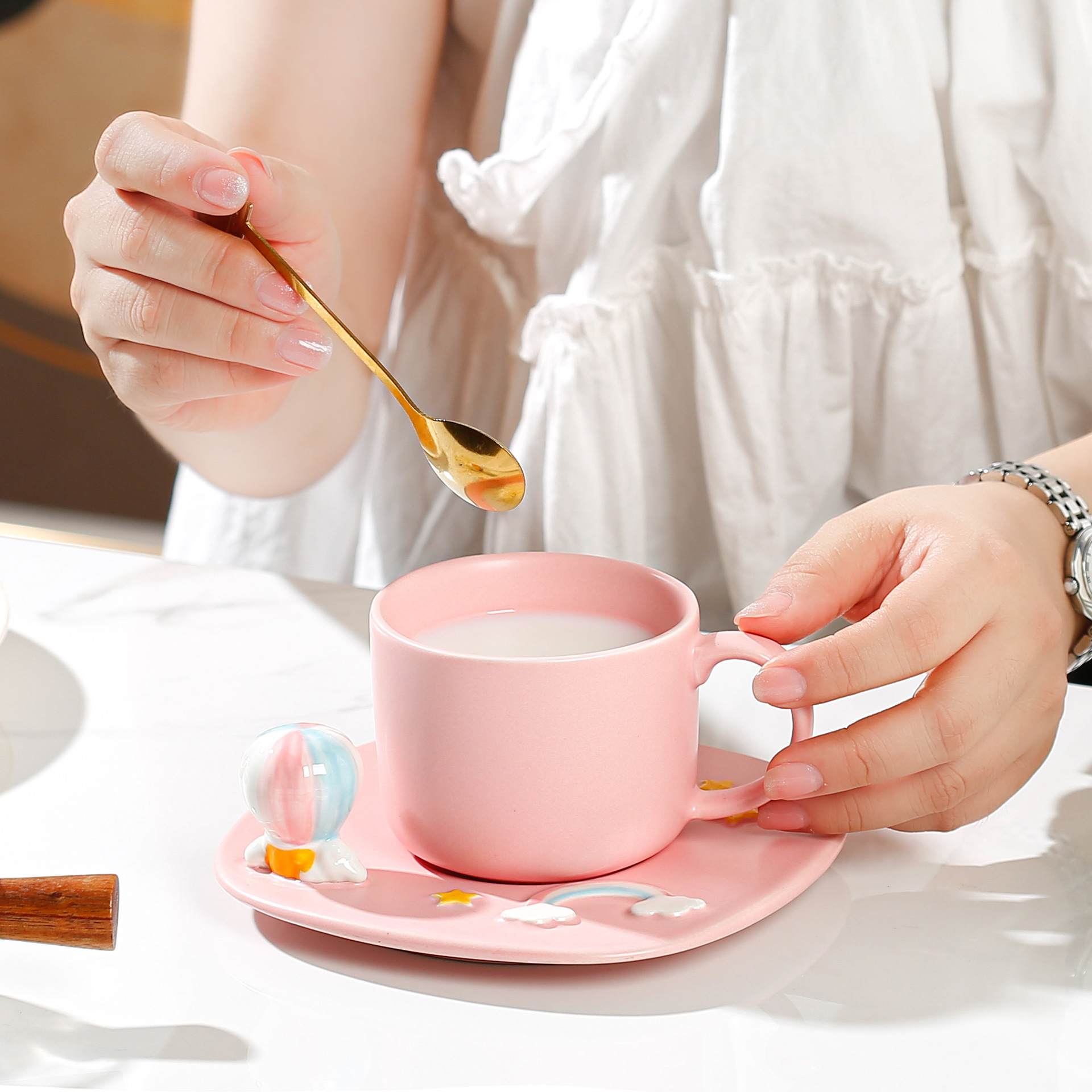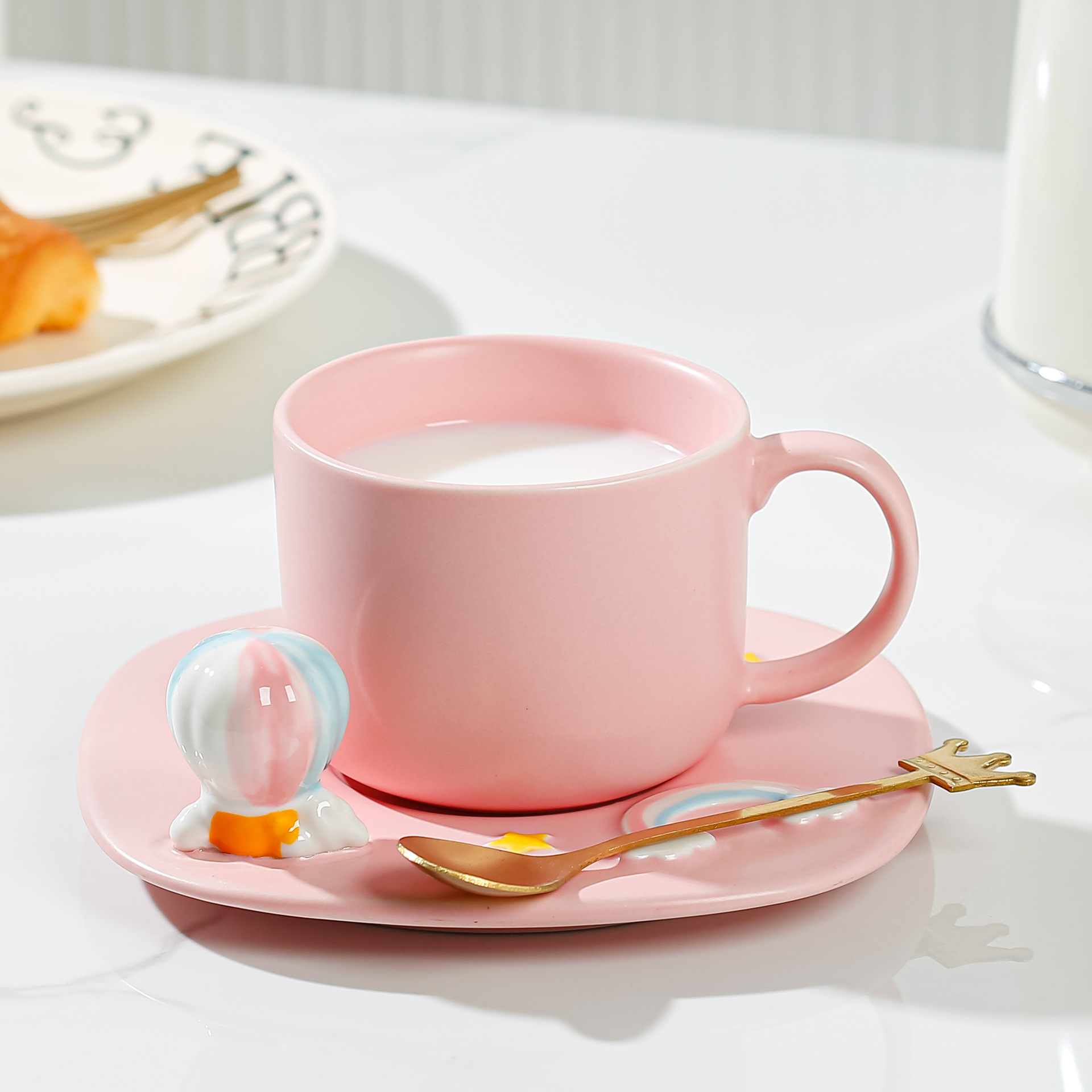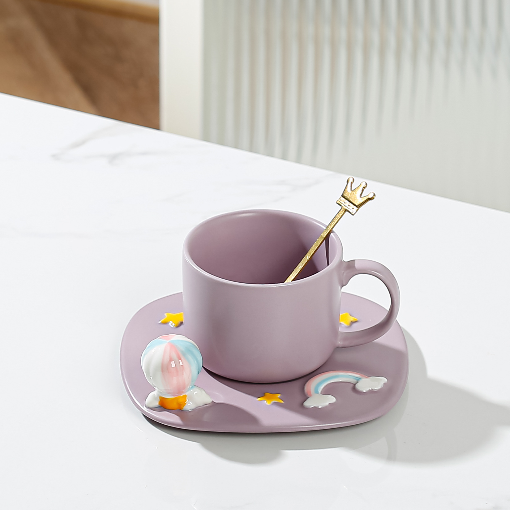 创意高颜值杯碟套装热气球皇冠陶瓷杯办公室早餐牛奶杯商务批发