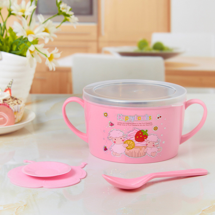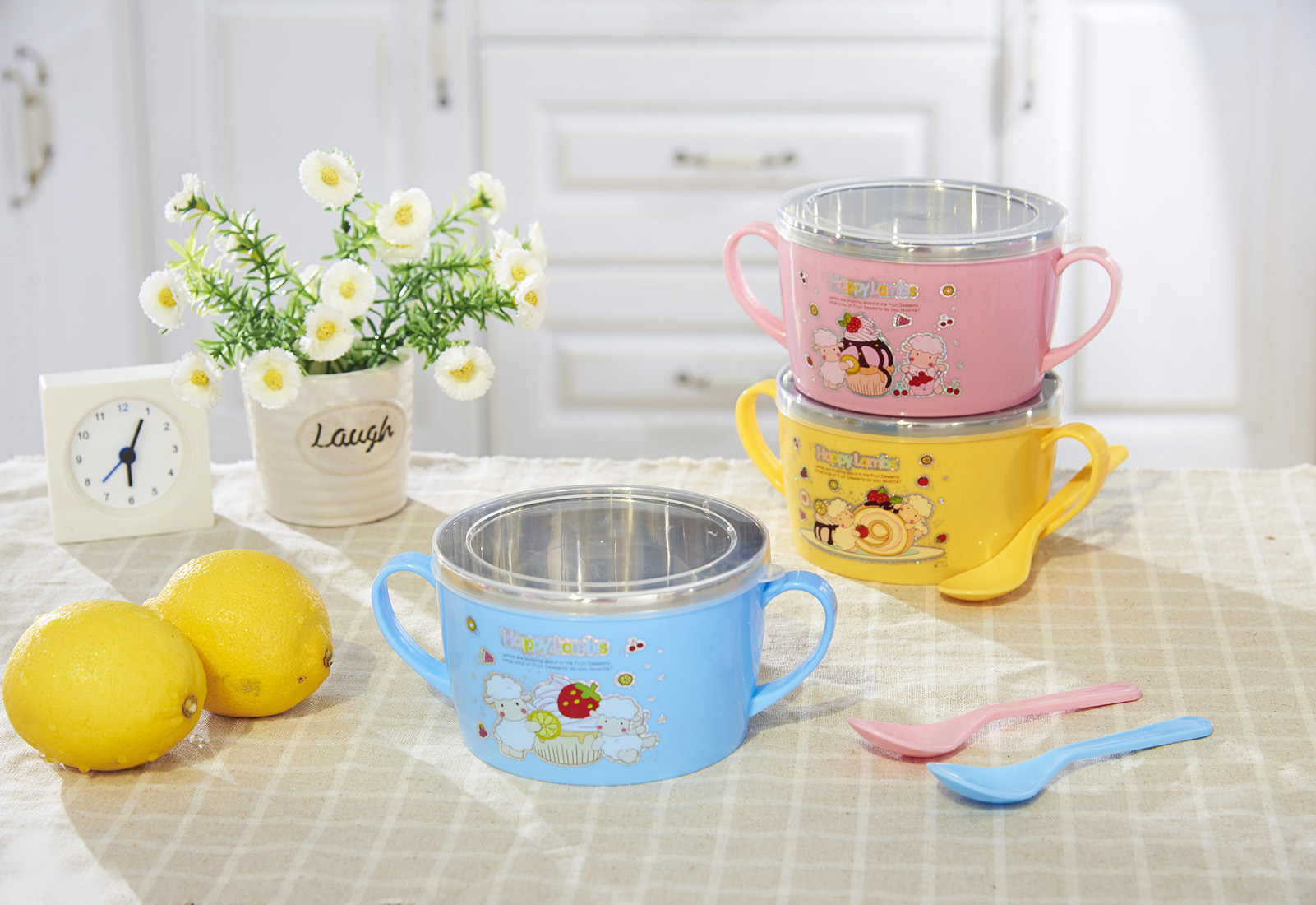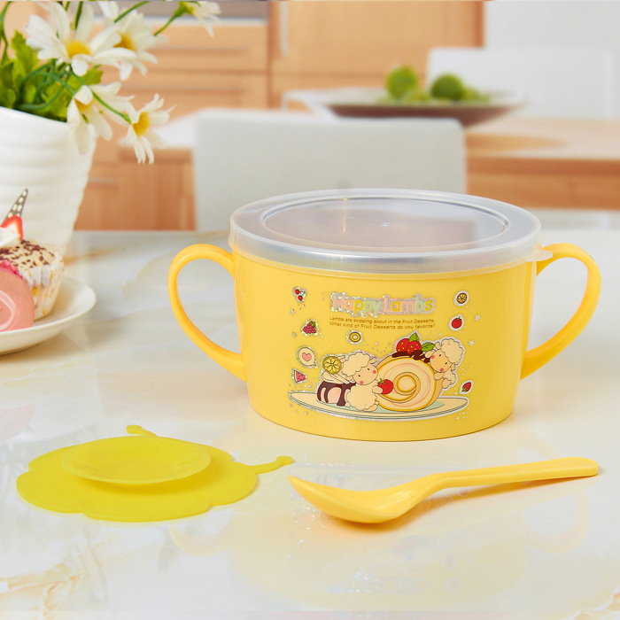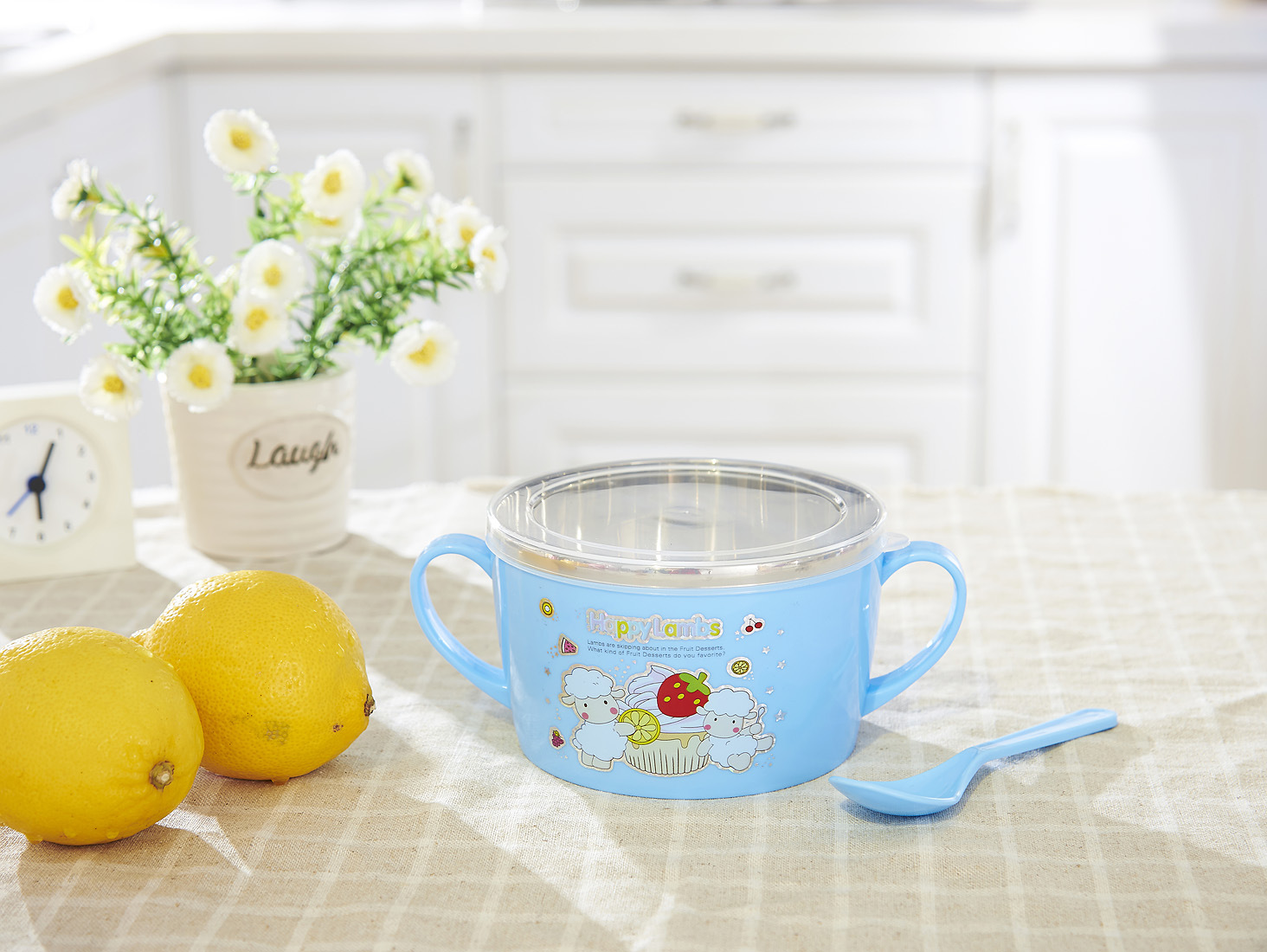 不锈钢卡通带盖宝宝碗加大泡面碗带手柄可爱儿童汤碗厂家直销批发