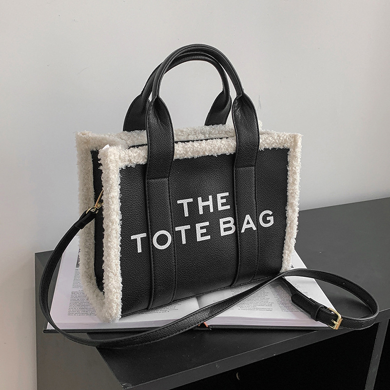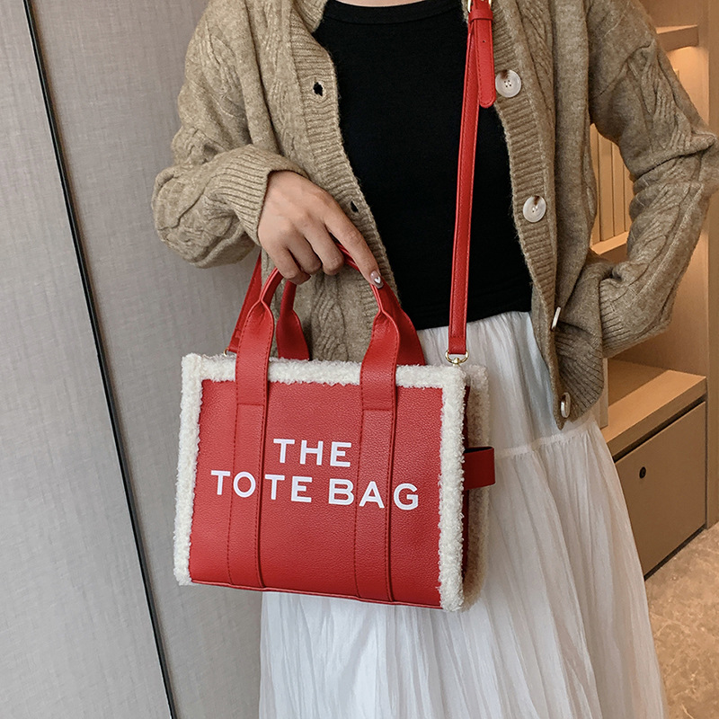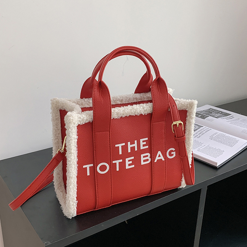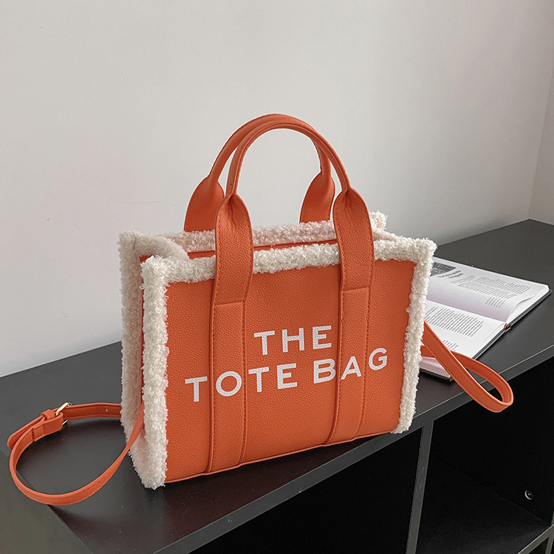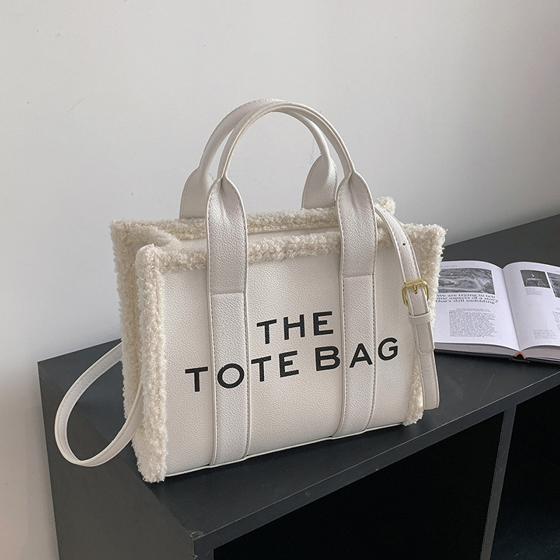 斜挎包女小众设计潮搭2022热卖款欧美单肩包通勤手提羊羔毛托特包