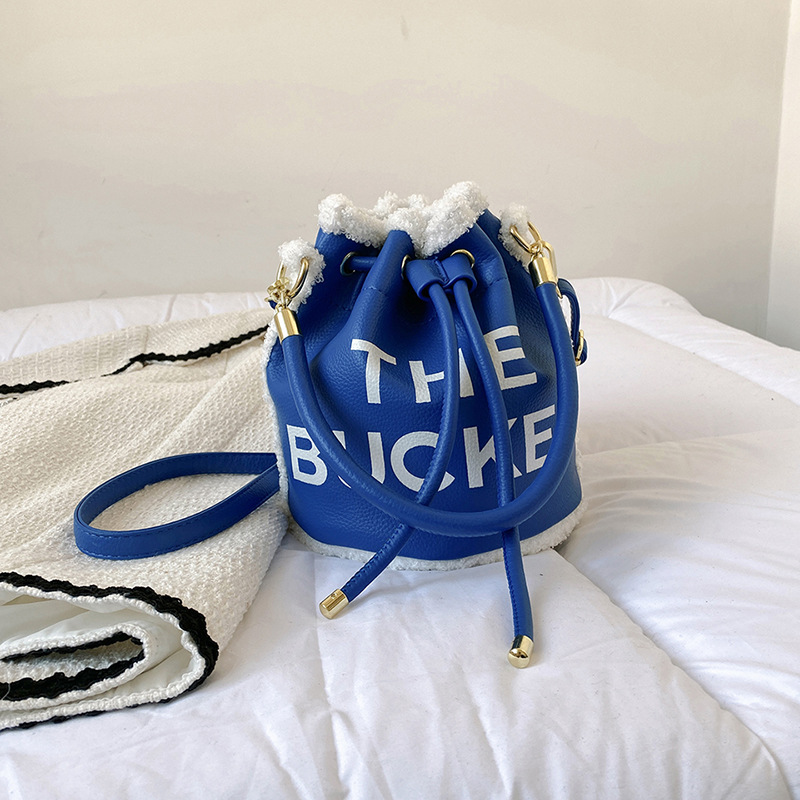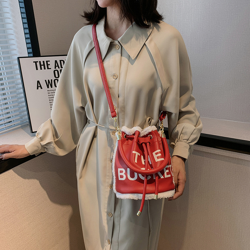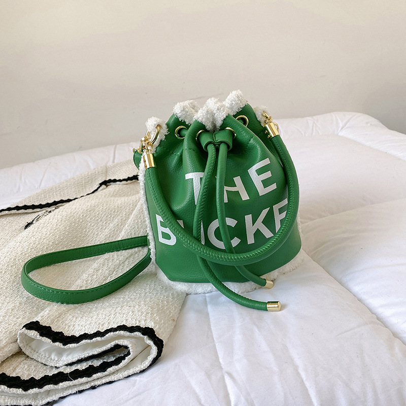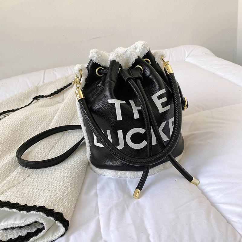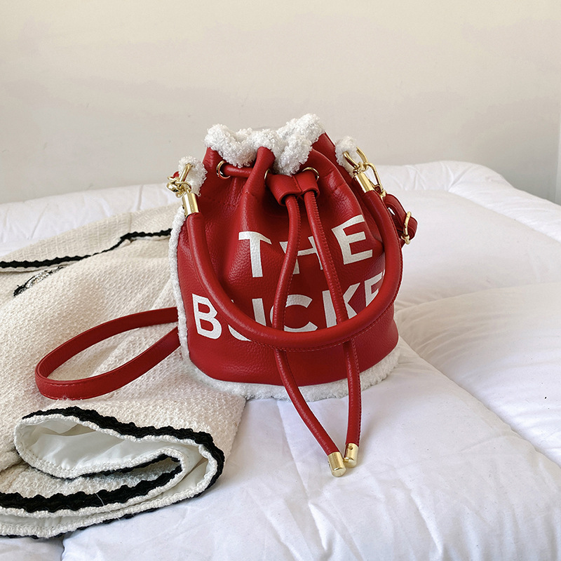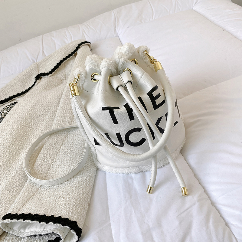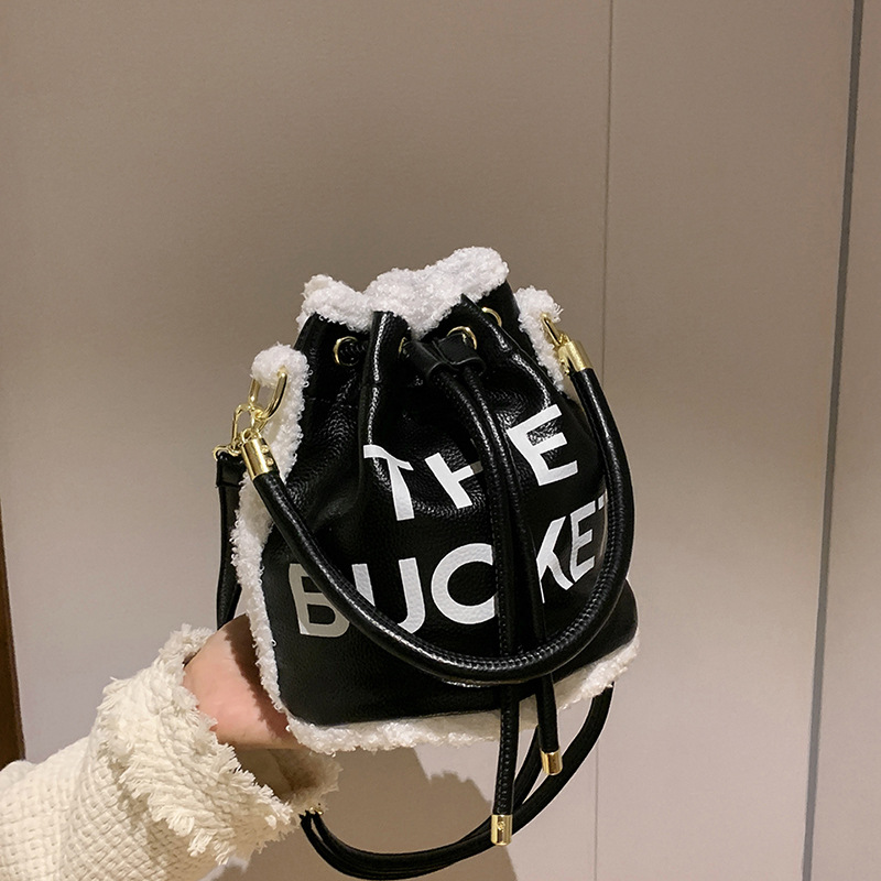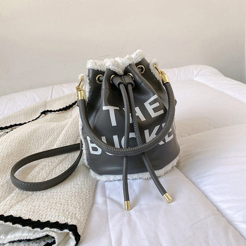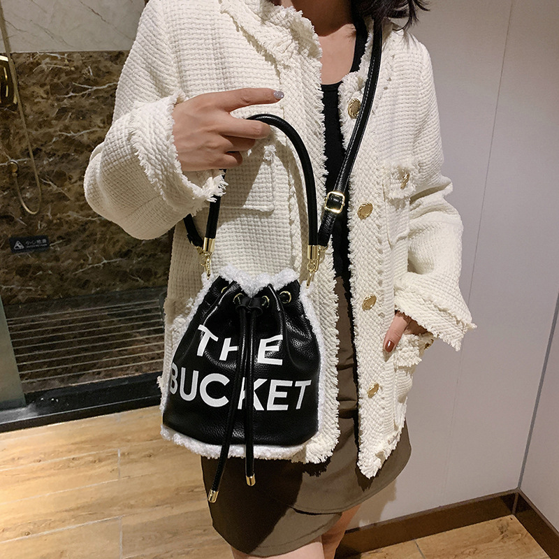 网红同款小众设计羊羔毛字母手提水桶包女2022秋冬韩版单肩斜挎包
