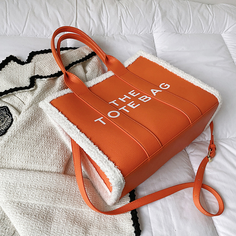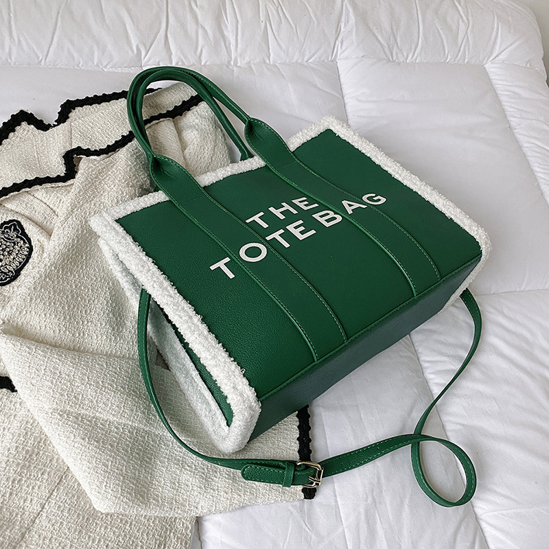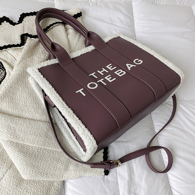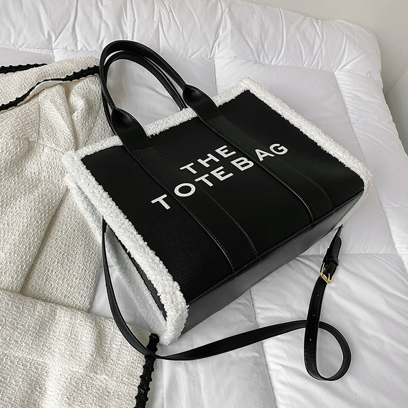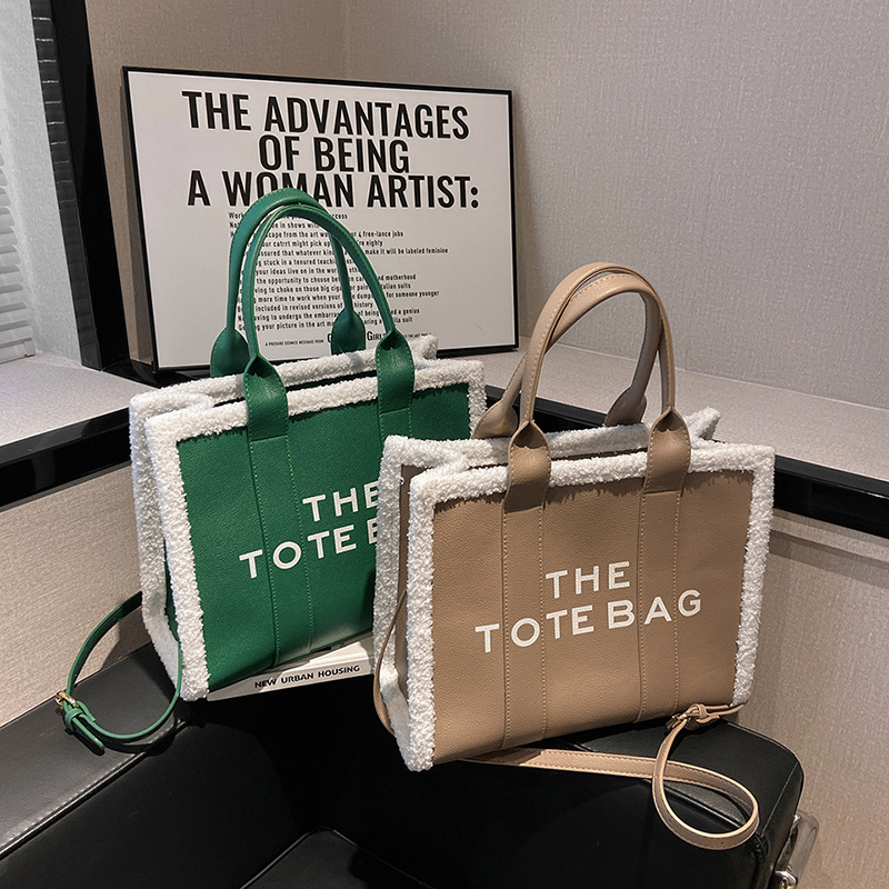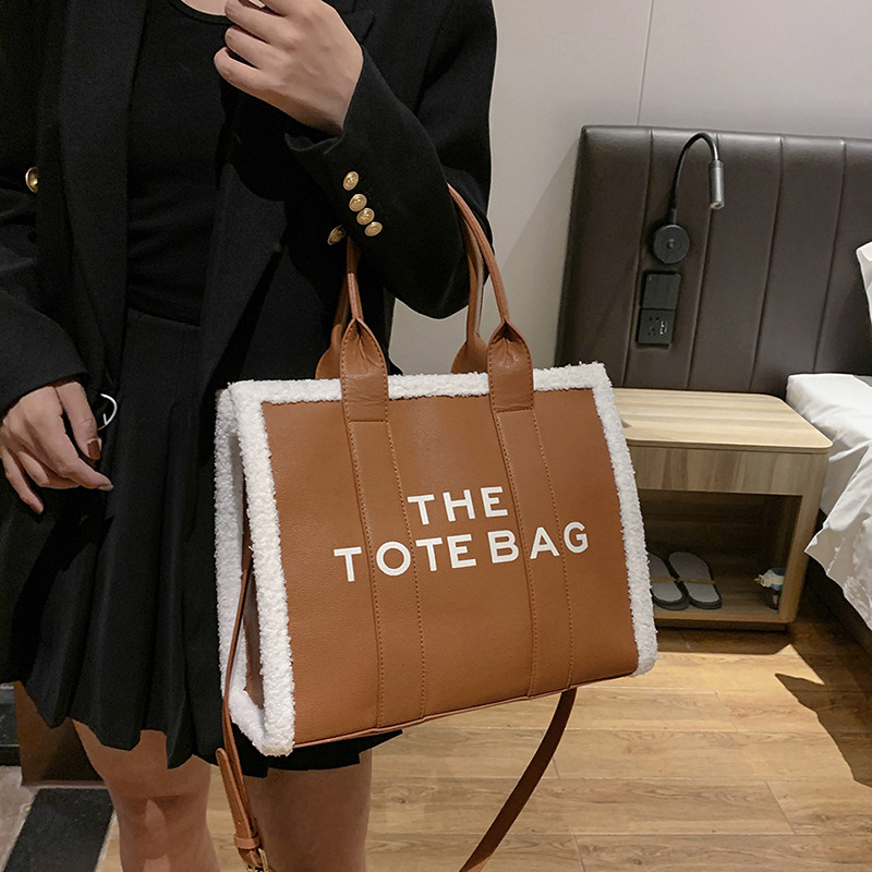 外贸大容量包包女新款潮时尚手提羊羔毛托特包大号字母单肩斜挎包