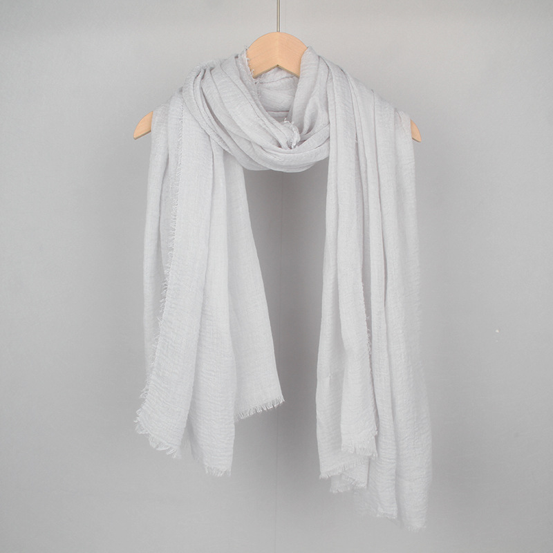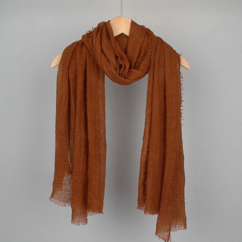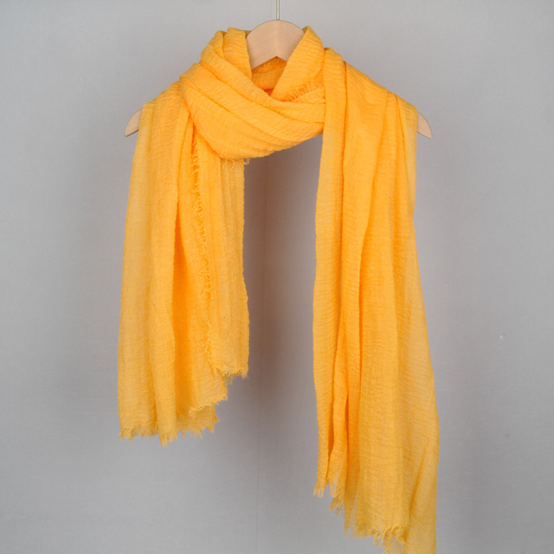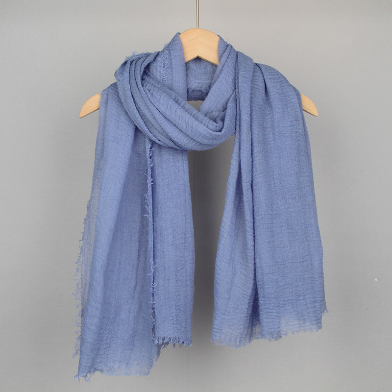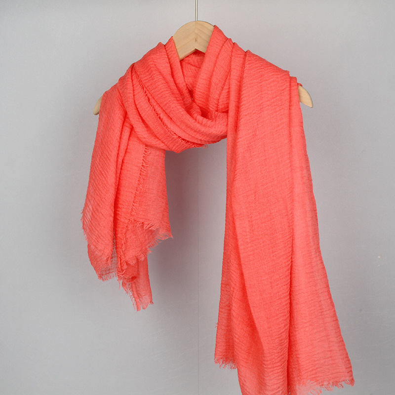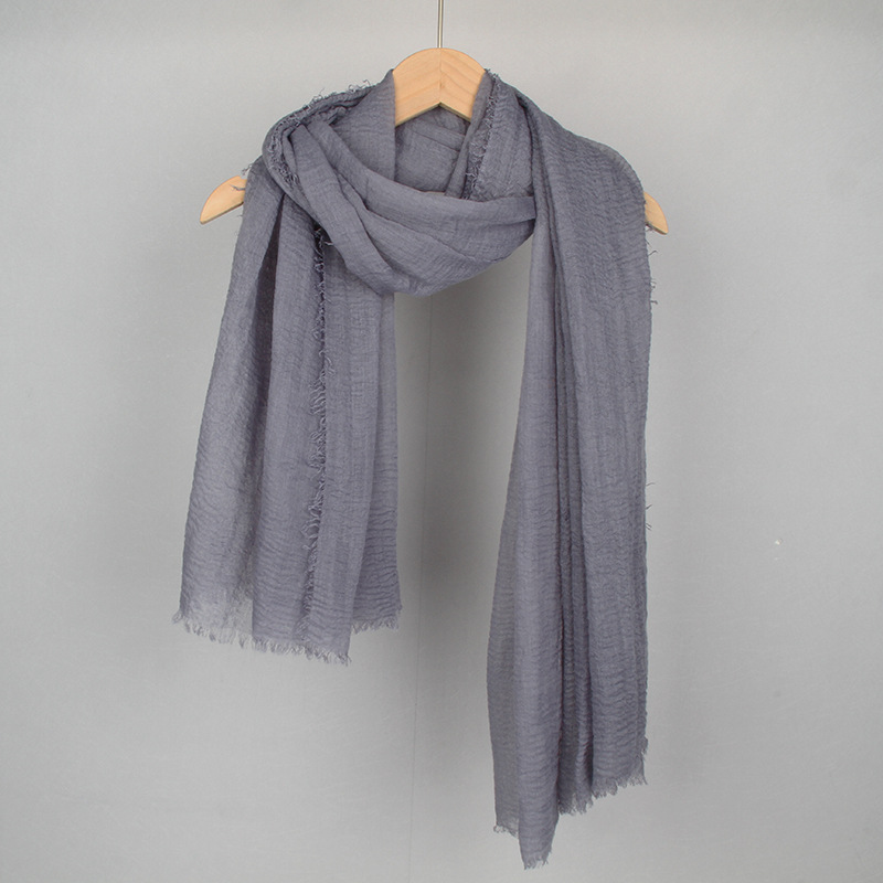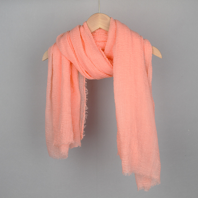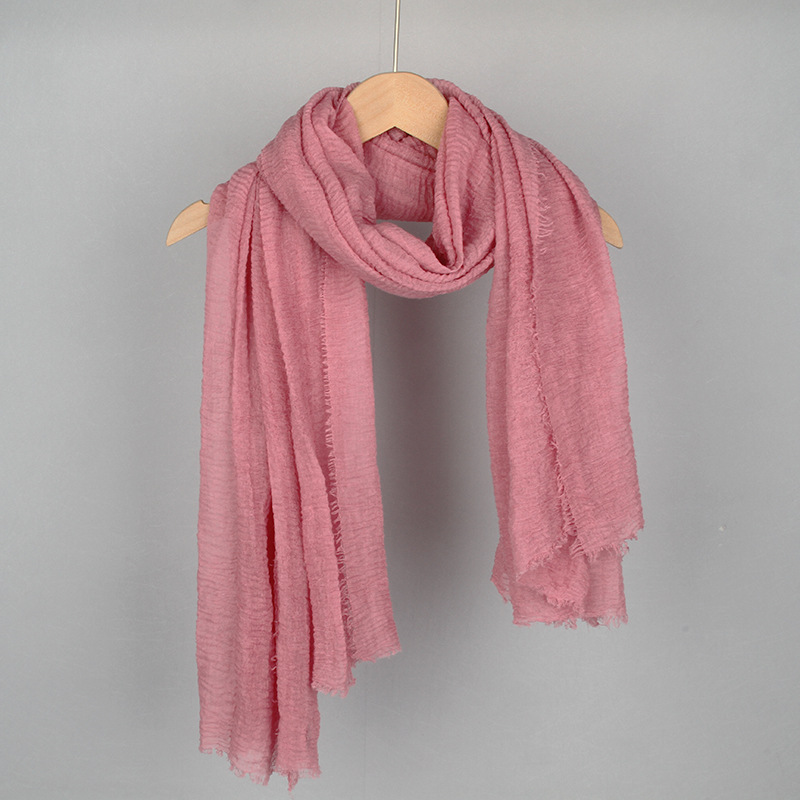 跨境纯色棉麻围巾女包头巾欧美单色棉麻泡泡巾防晒纱巾批发