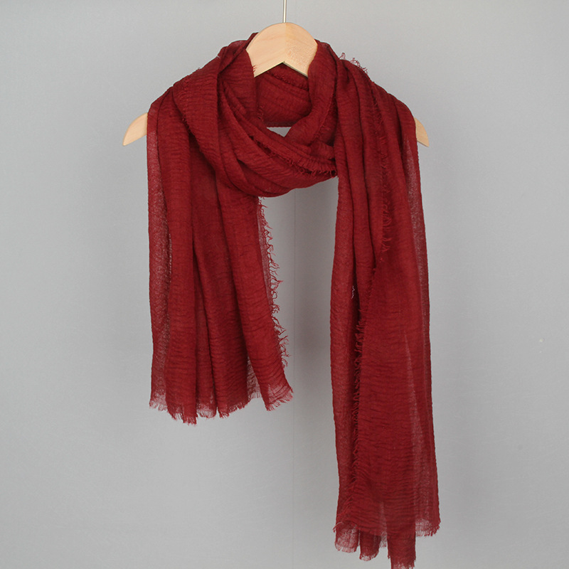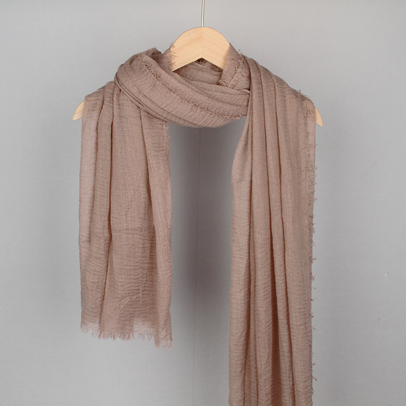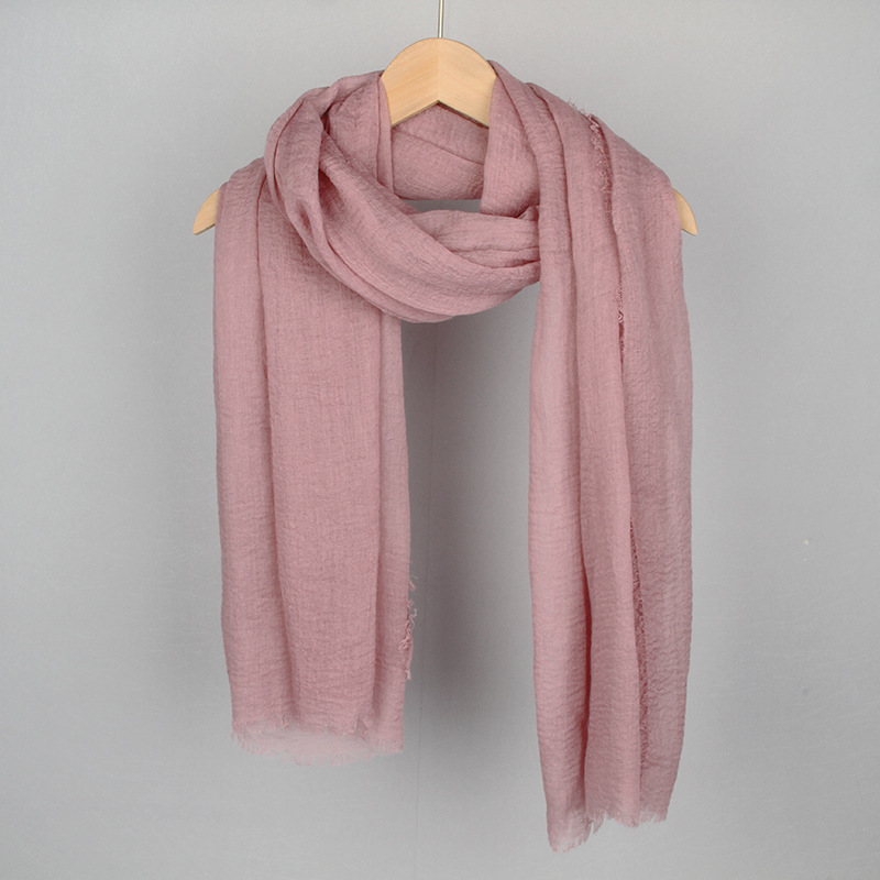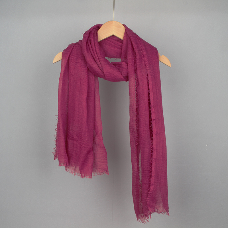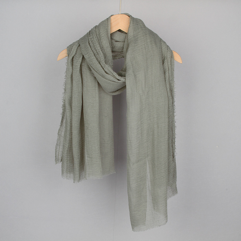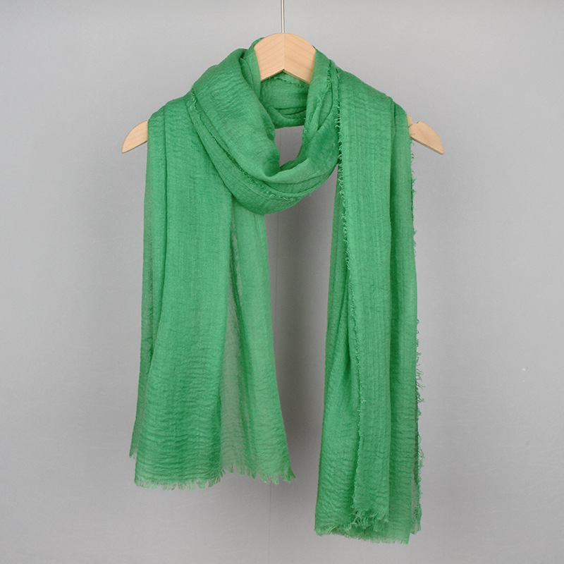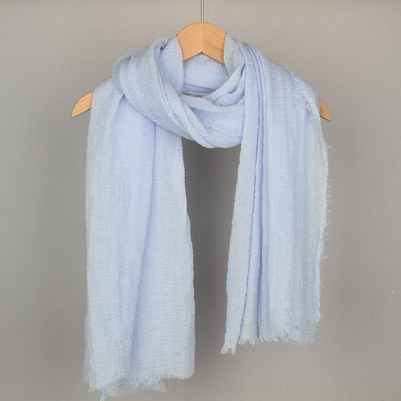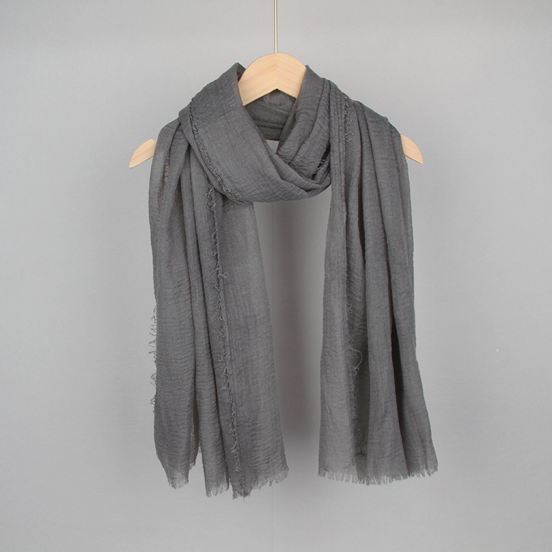 跨境纯色棉麻围巾女包头巾欧美单色棉麻泡泡巾防晒纱巾批发