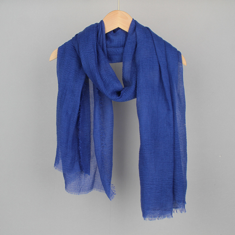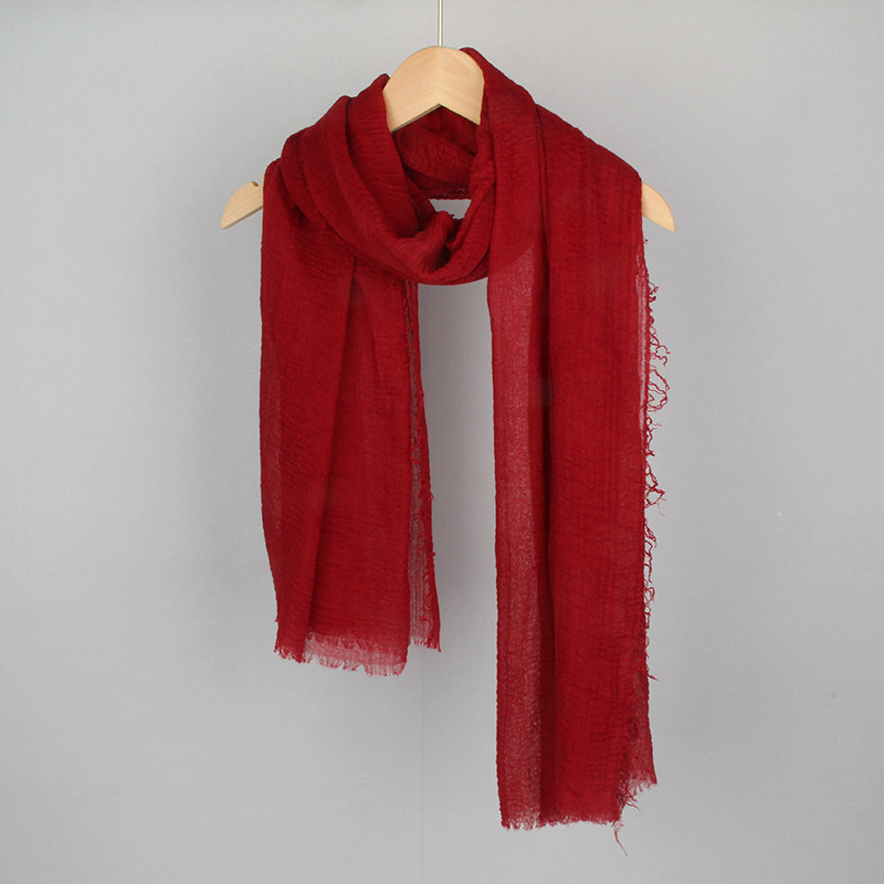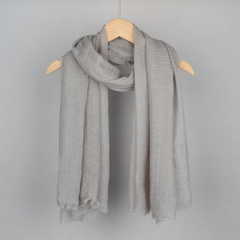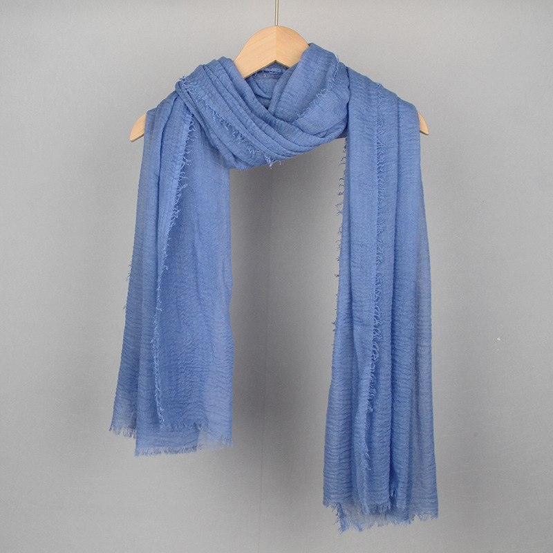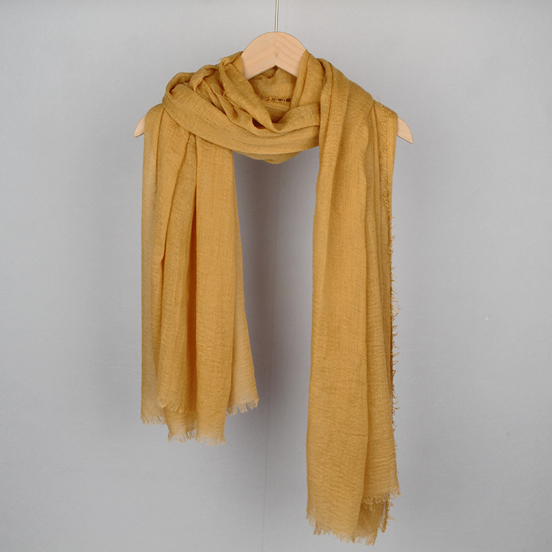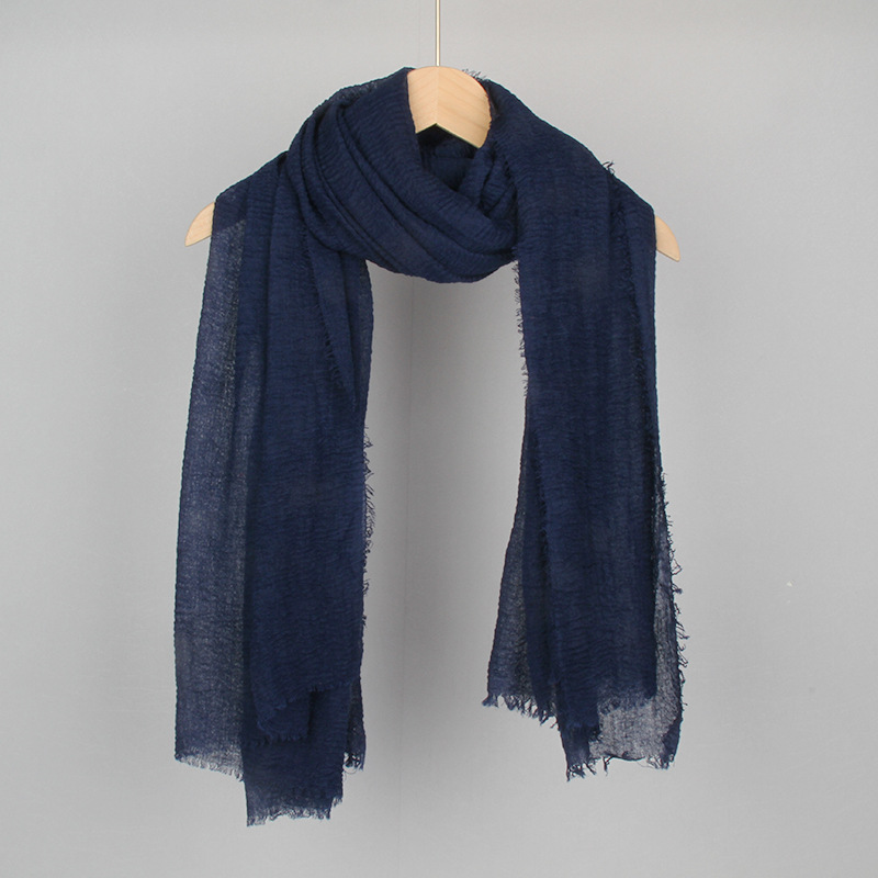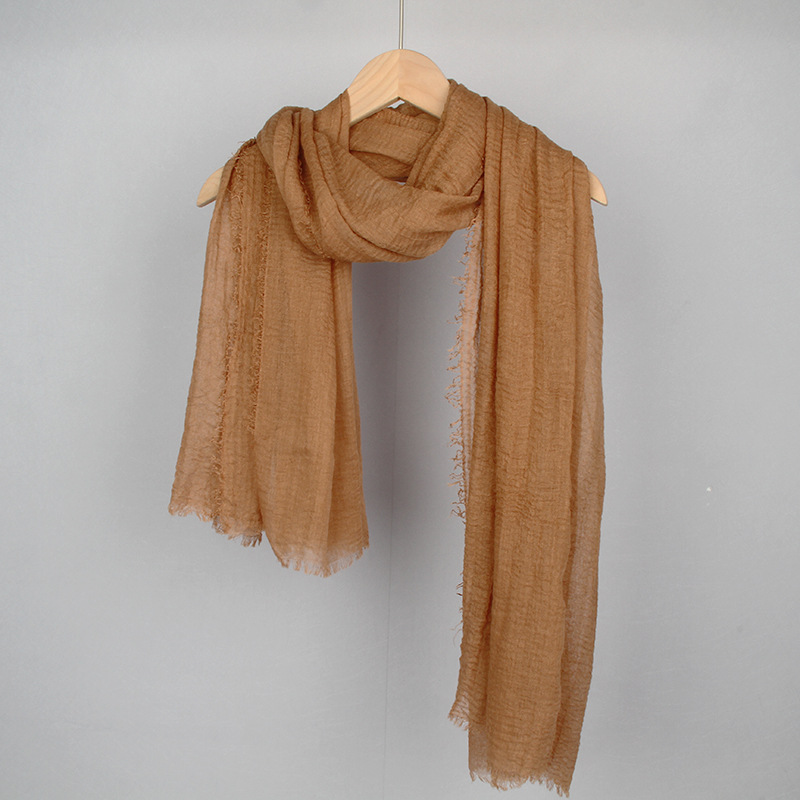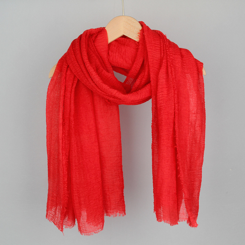 跨境纯色棉麻围巾女包头巾欧美单色棉麻泡泡巾防晒纱巾批发