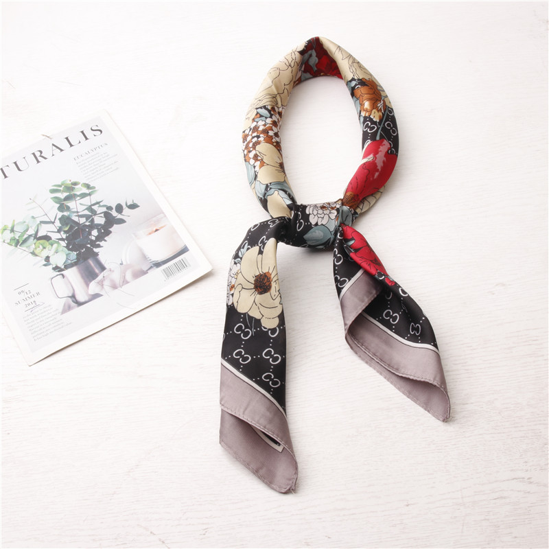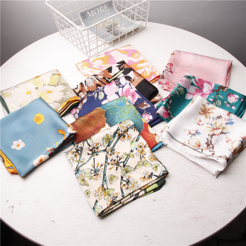 丝巾女春秋季装饰围巾批发春款百搭飘带仿真丝职业领巾70cm小方巾