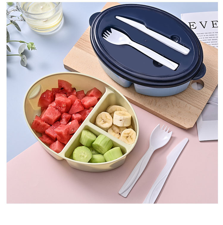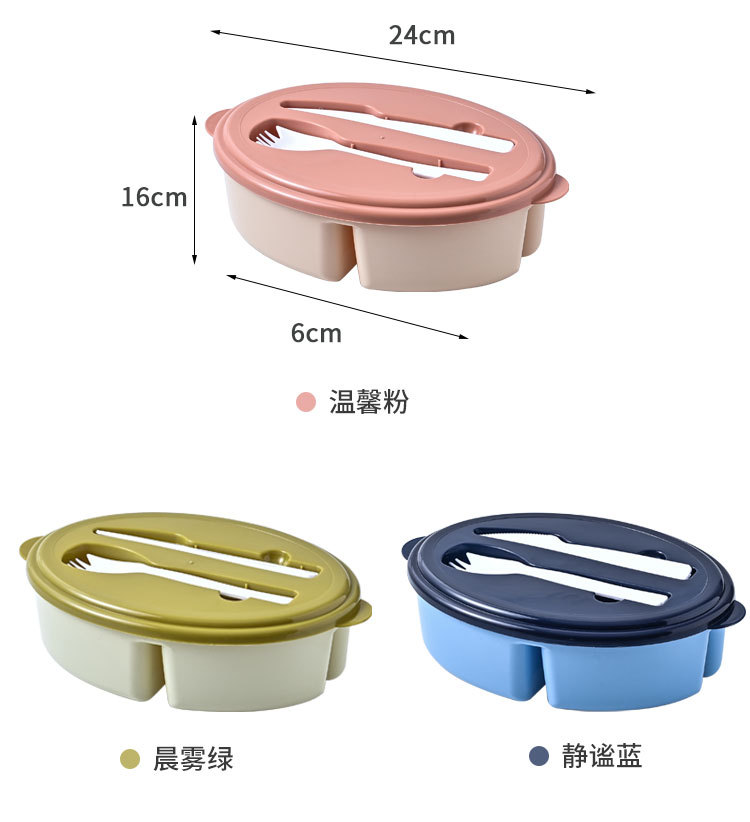 椭圆形饭盒保鲜盒塑料水果便当盒食品冰箱收纳密封带盖便当盒外出