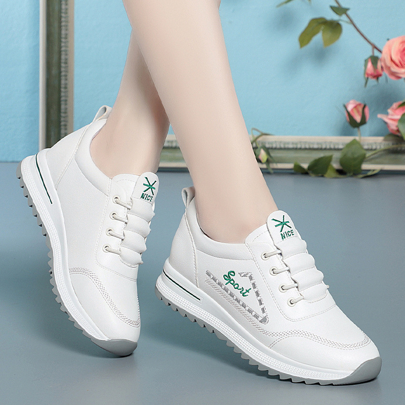 软皮小白鞋女2023新款运动休闲鞋软底春秋款皮鞋中老年女鞋妈妈鞋