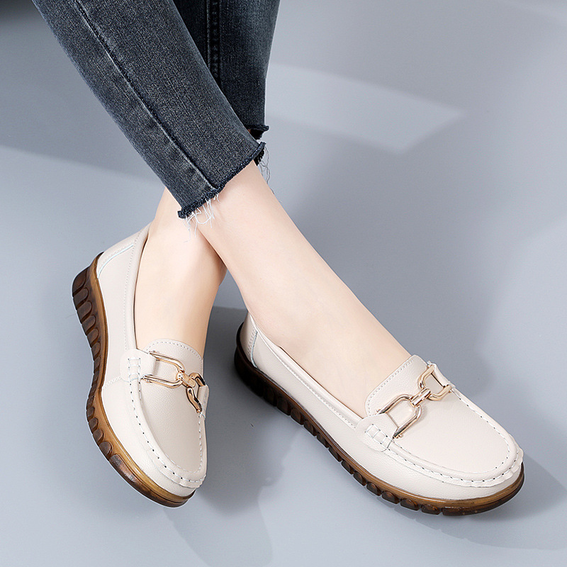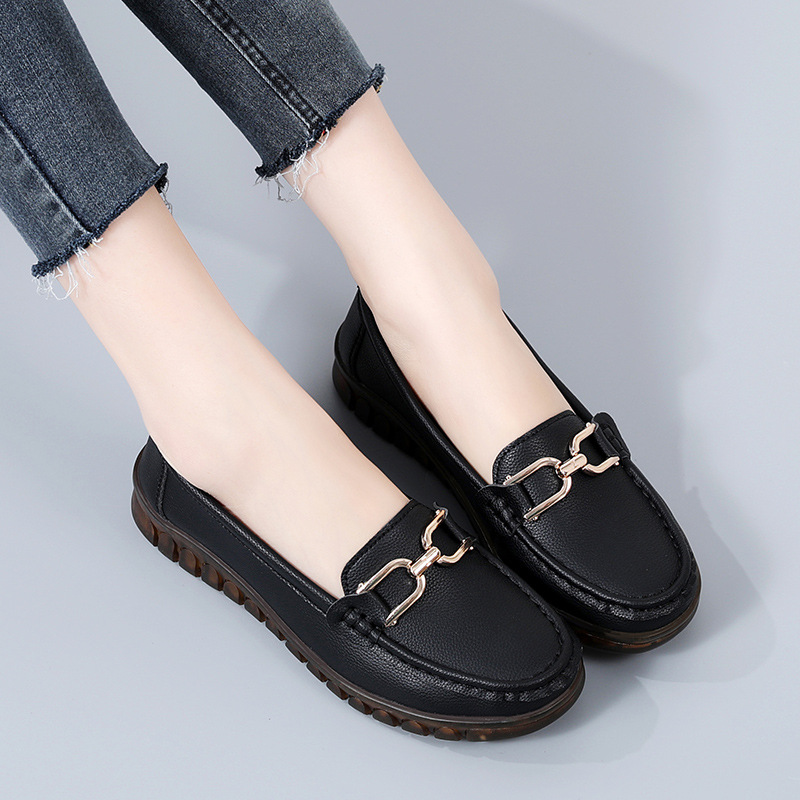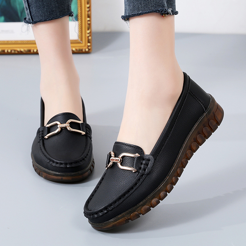 金扣圆头一脚蹬软底浅口时髦乐福鞋女英伦风平底鞋软底单鞋