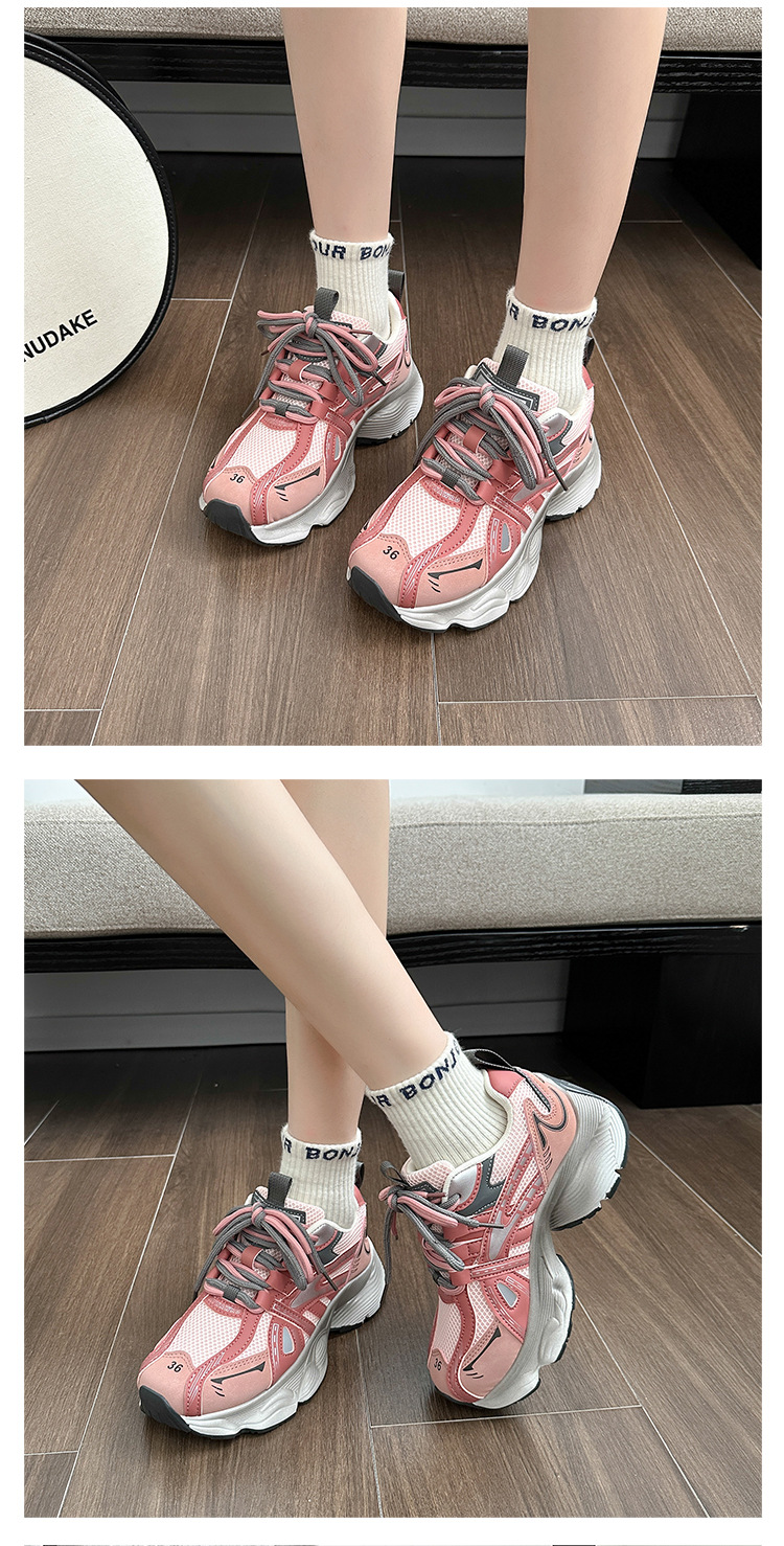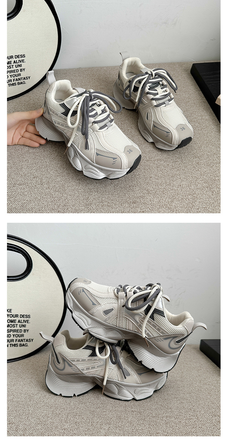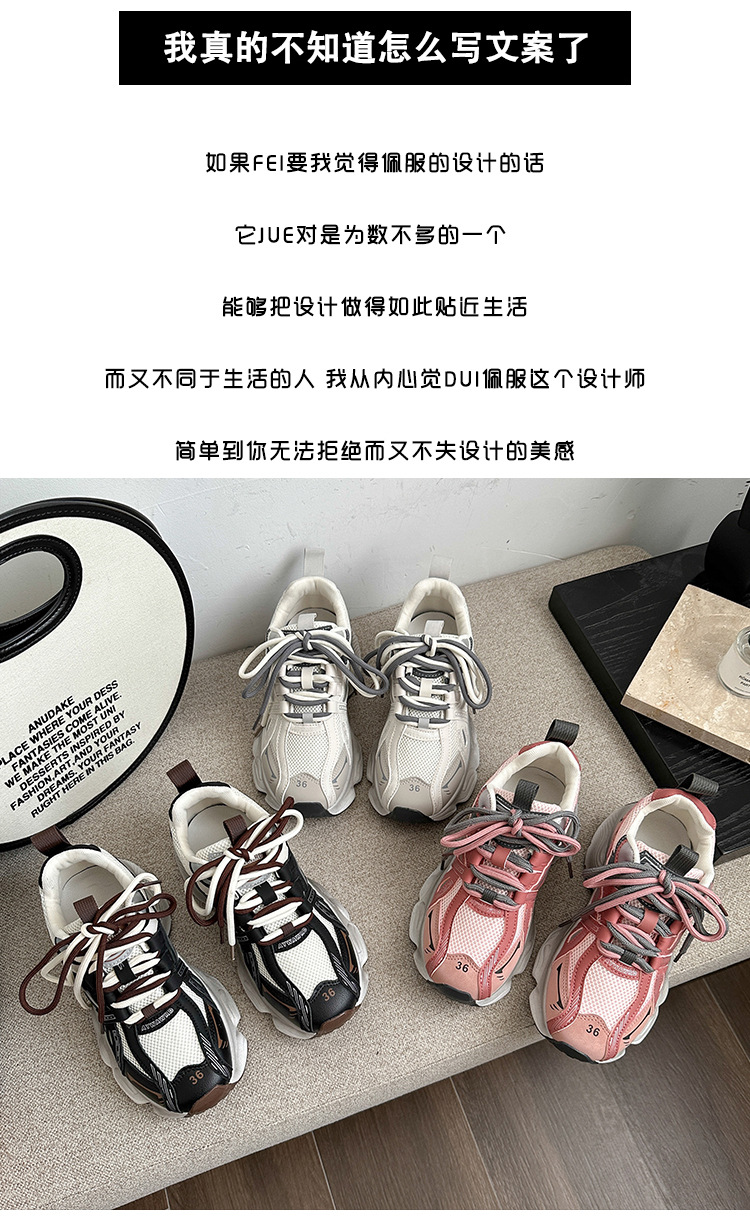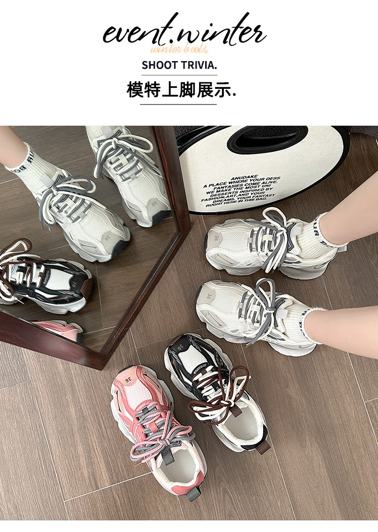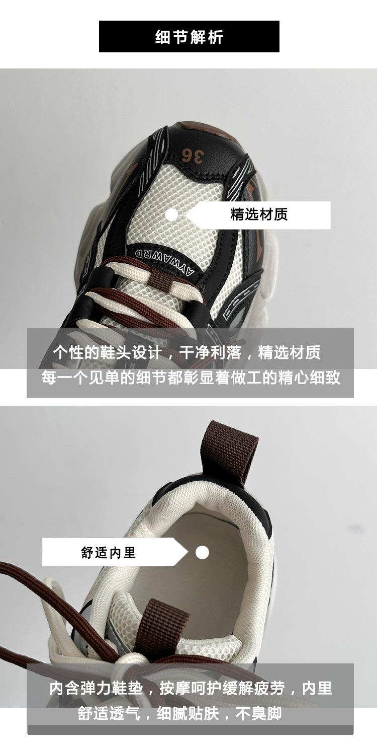 真皮老爹鞋女2023秋季新款显脚小透气网面厚底网红百搭运动休闲鞋