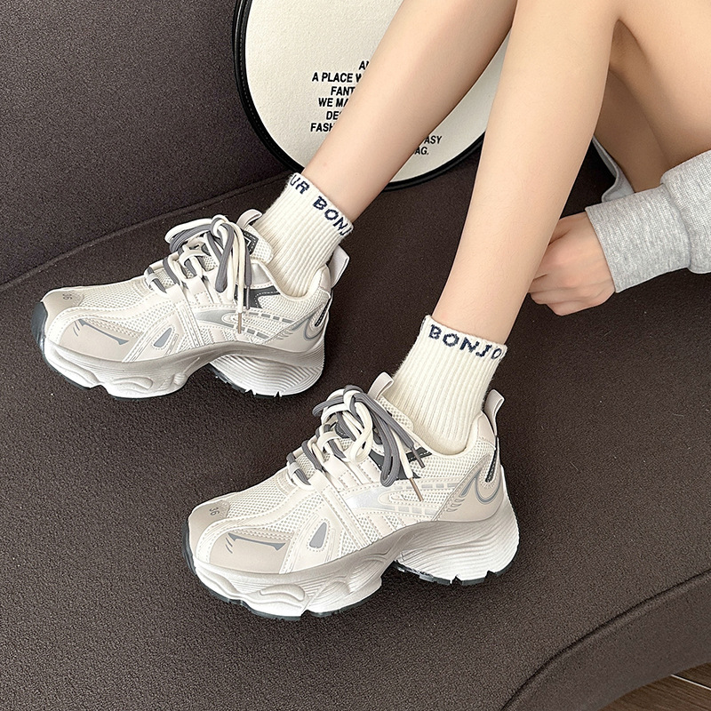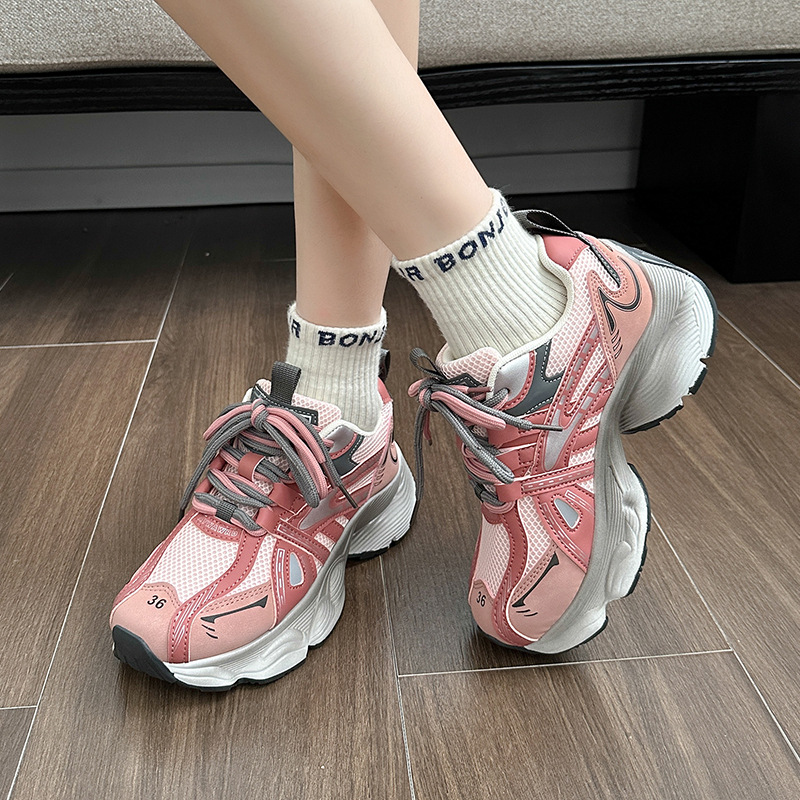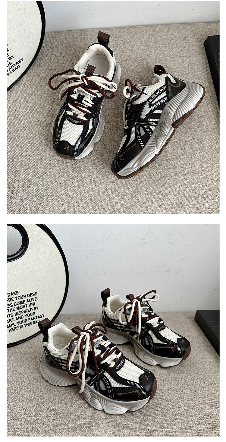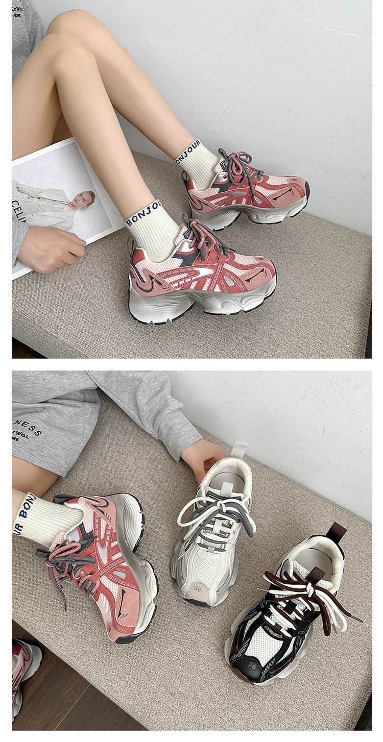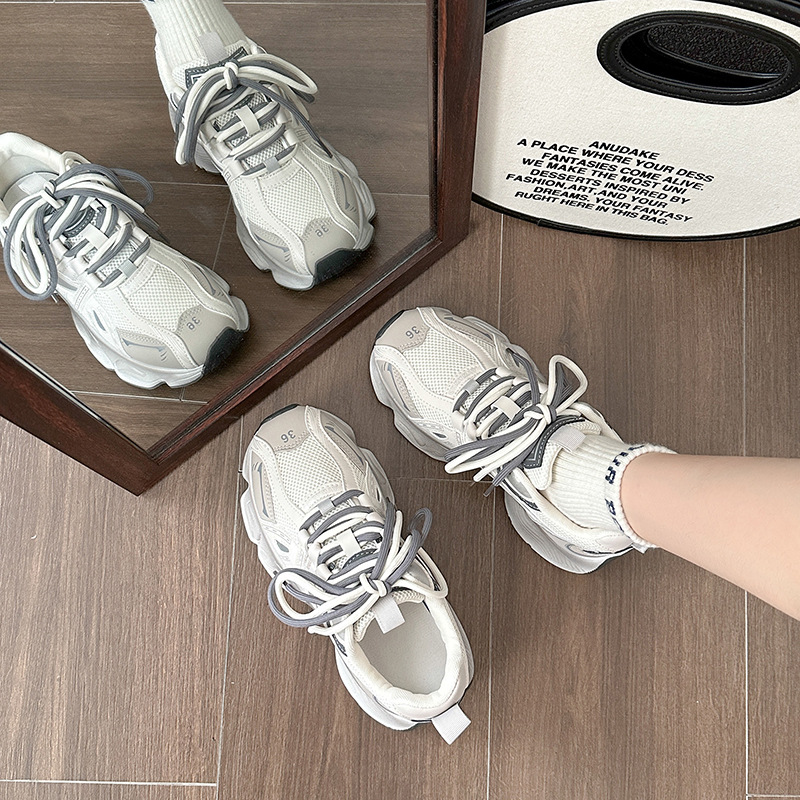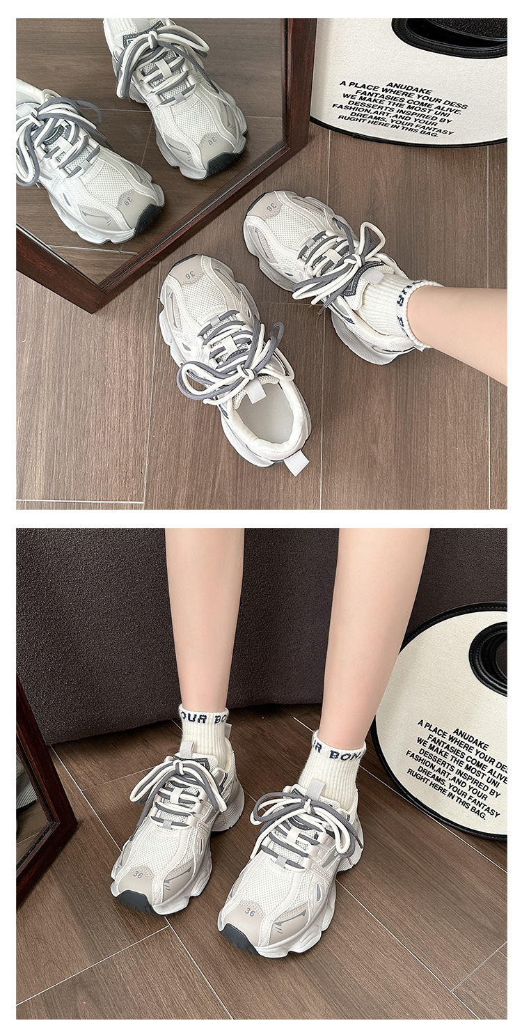 真皮老爹鞋女2023秋季新款显脚小透气网面厚底网红百搭运动休闲鞋