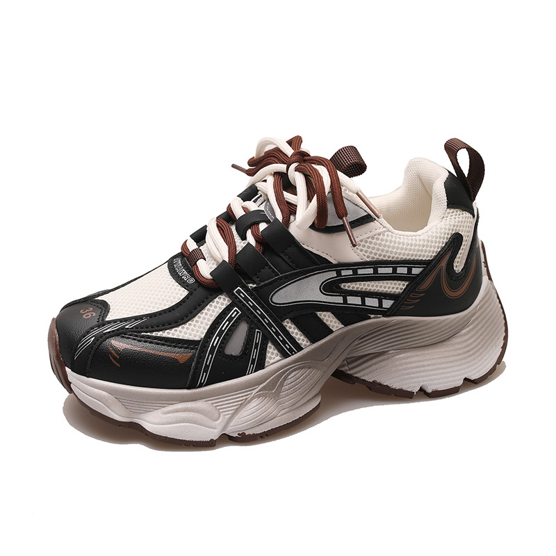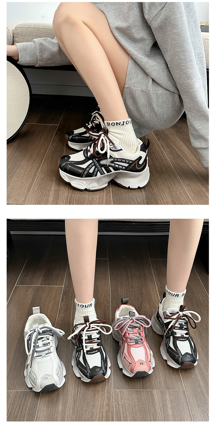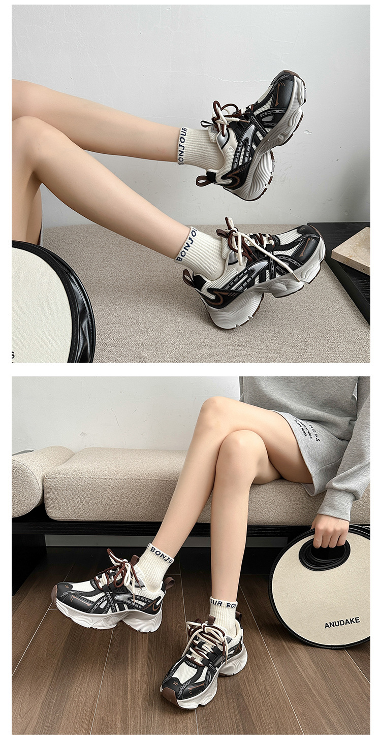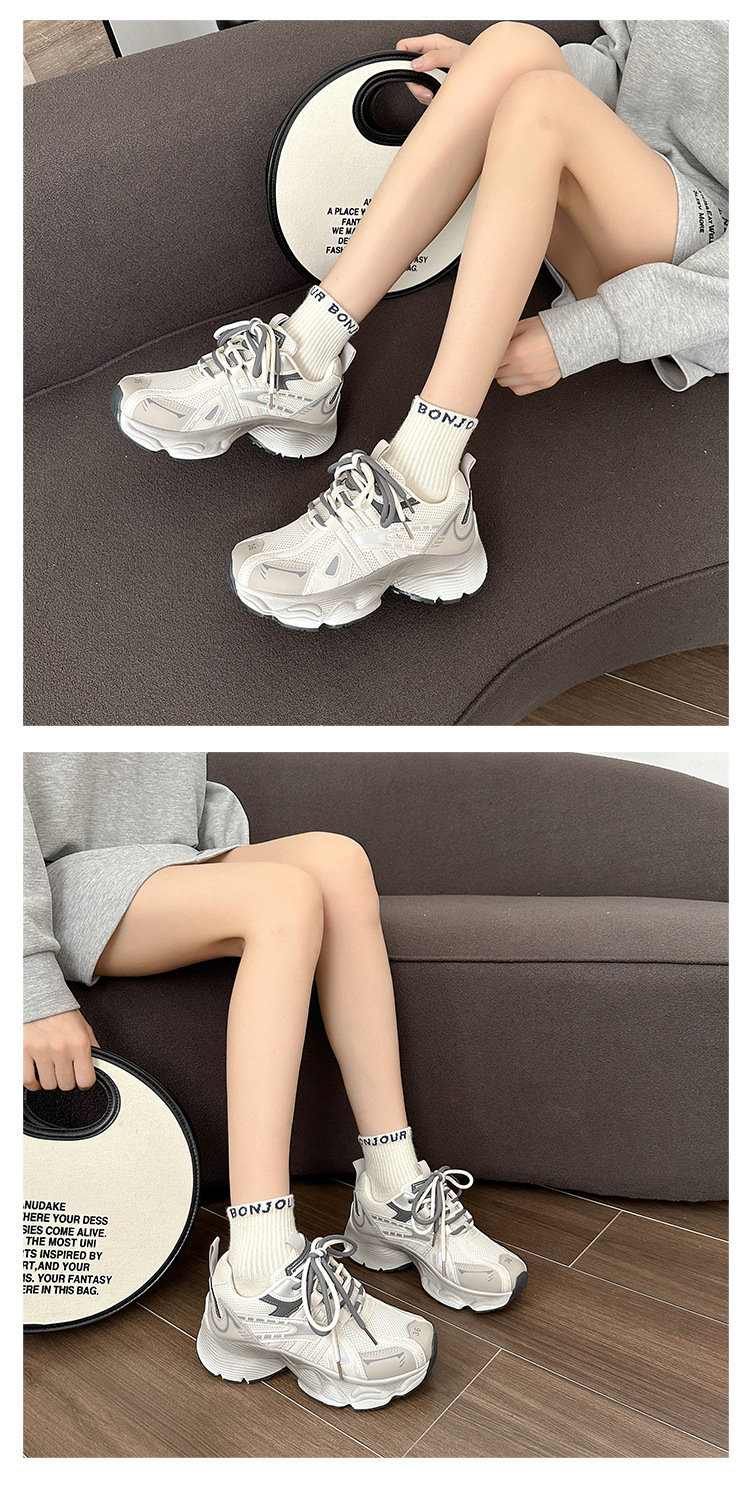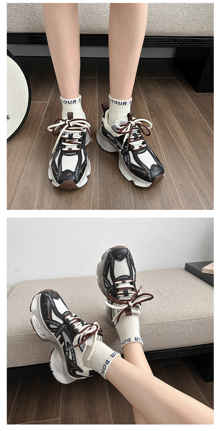 真皮老爹鞋女2023秋季新款显脚小透气网面厚底网红百搭运动休闲鞋