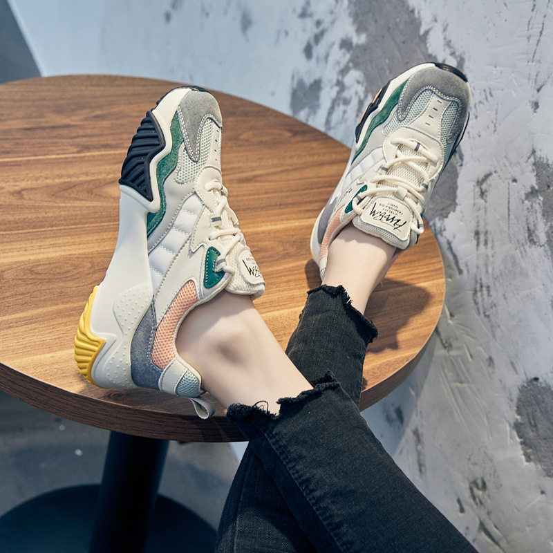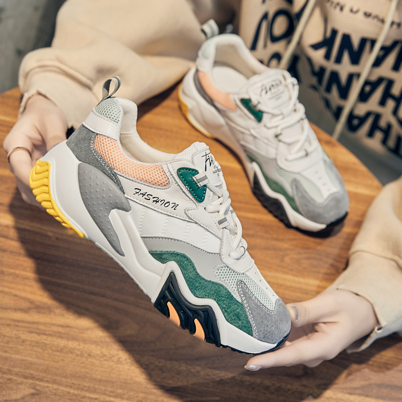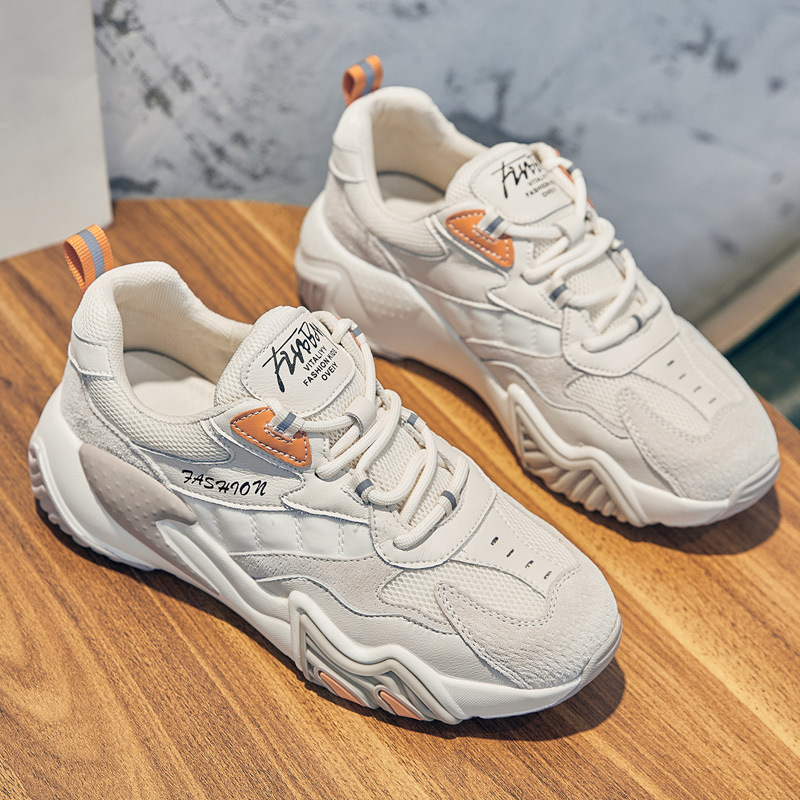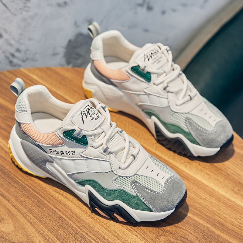 厚底老爹鞋女2023春季新款百搭厚底松糕休闲拼色透气运动鞋板鞋女
