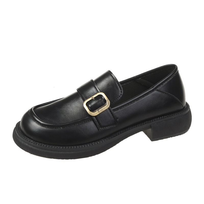 2023春季新款黑色小皮鞋女英伦风复古平底单鞋软底厚底乐福鞋