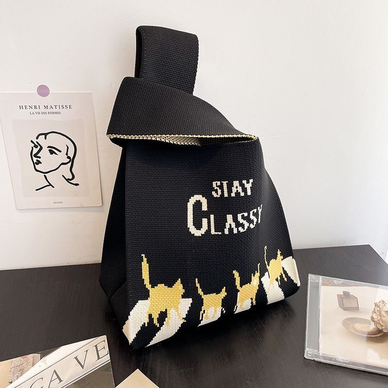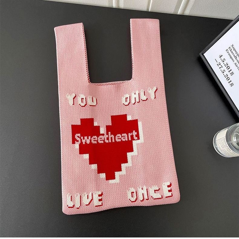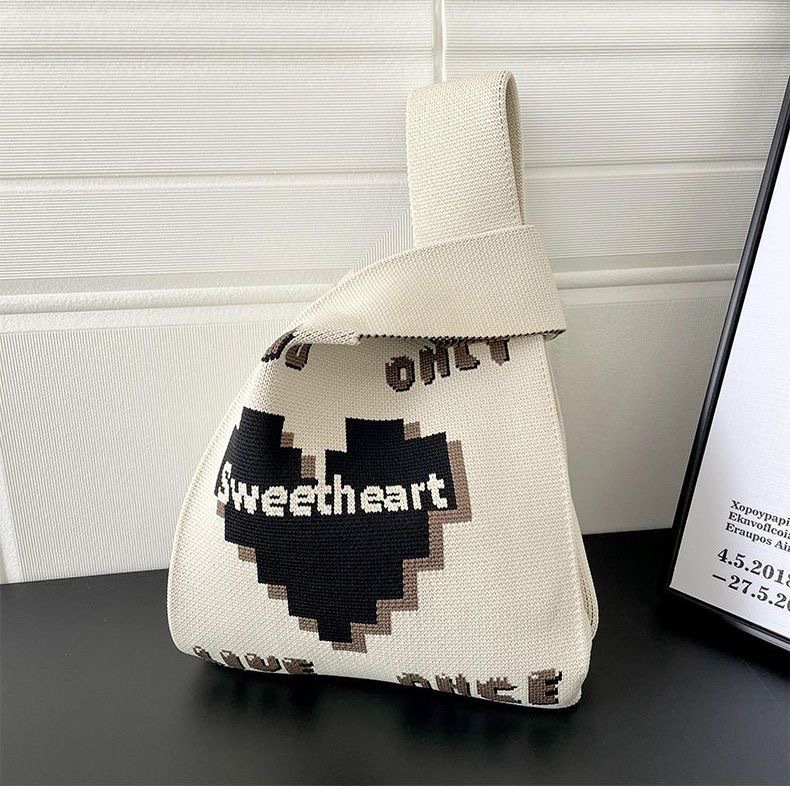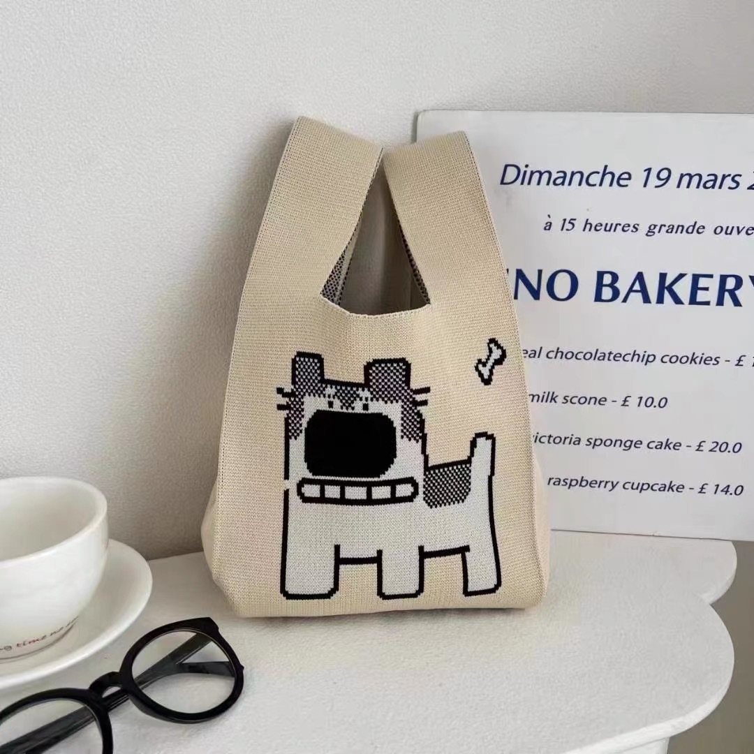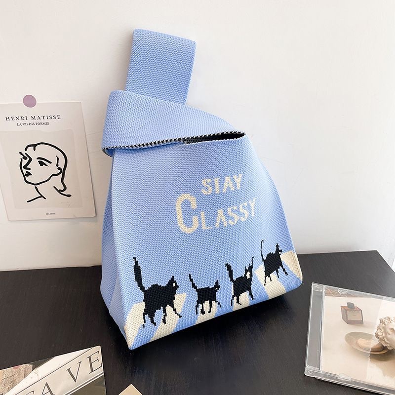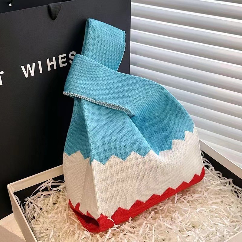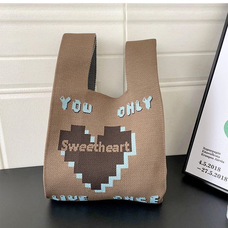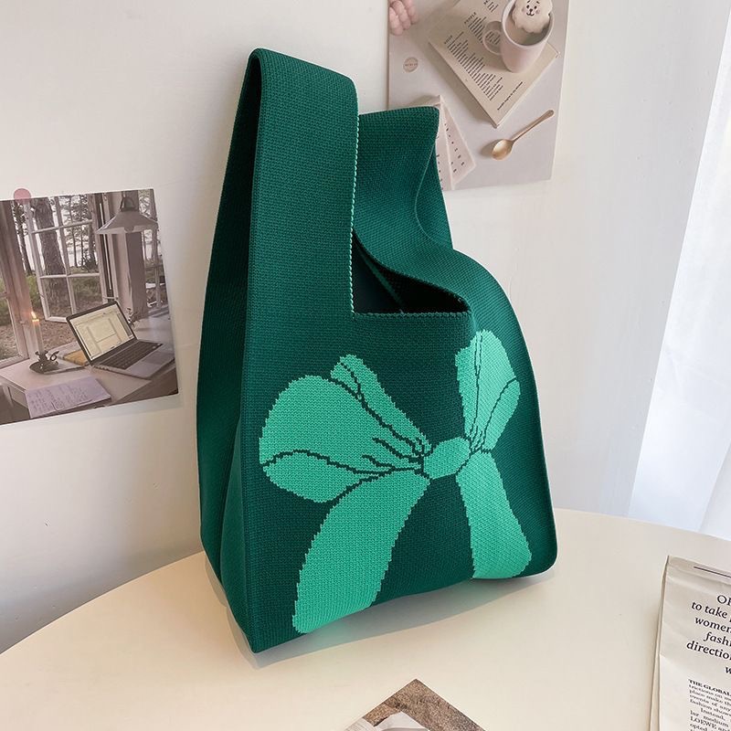 ins internet-famous tote women‘s knitted wool bucket bag japanese and korean style all-match hand carrying casual tote bag box lunch bag