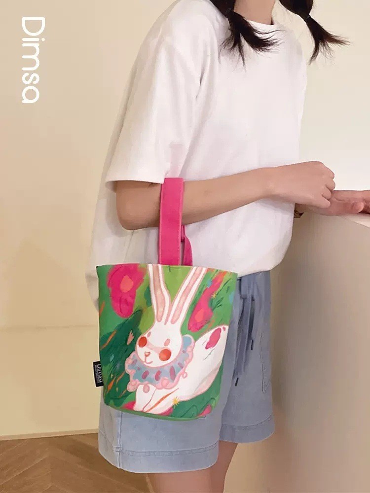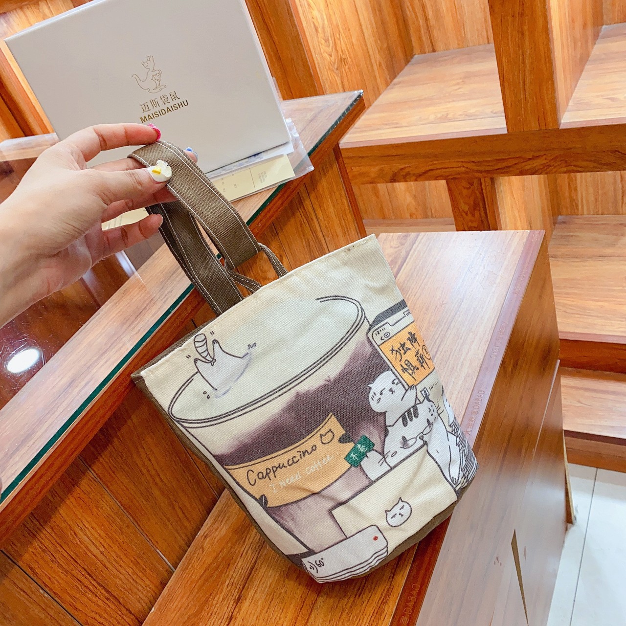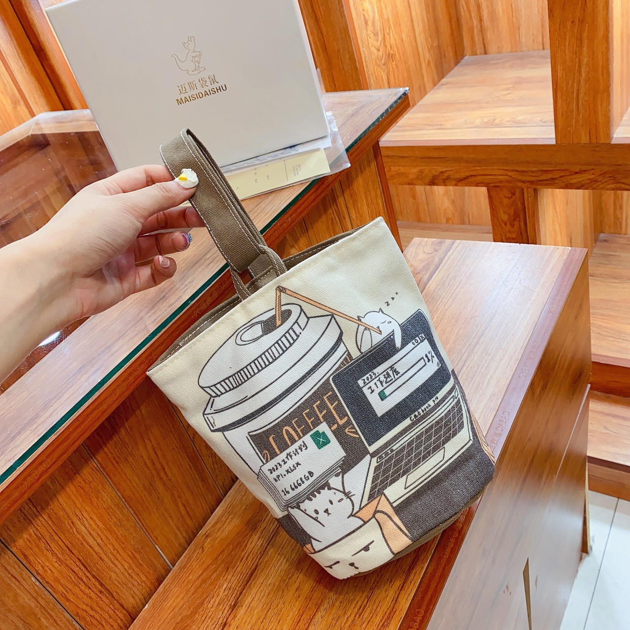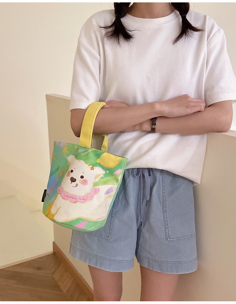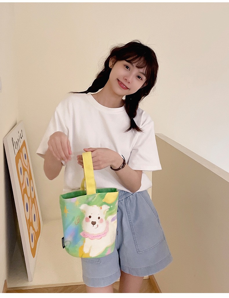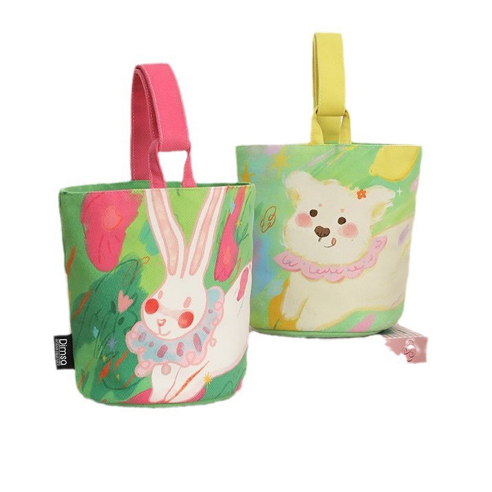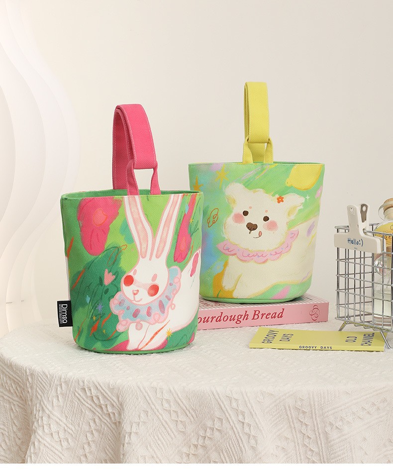 新款插画卡通帆布包水桶包印花随身小手提包妈咪包便当外出小拎包