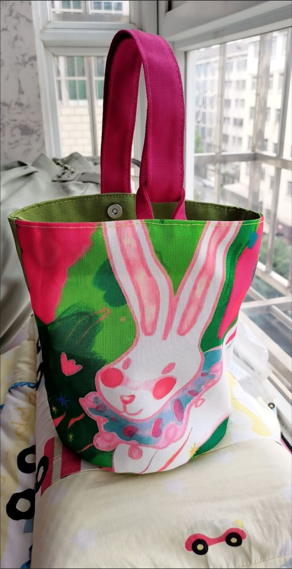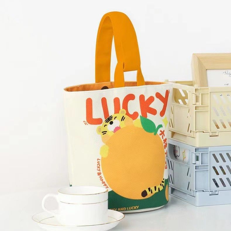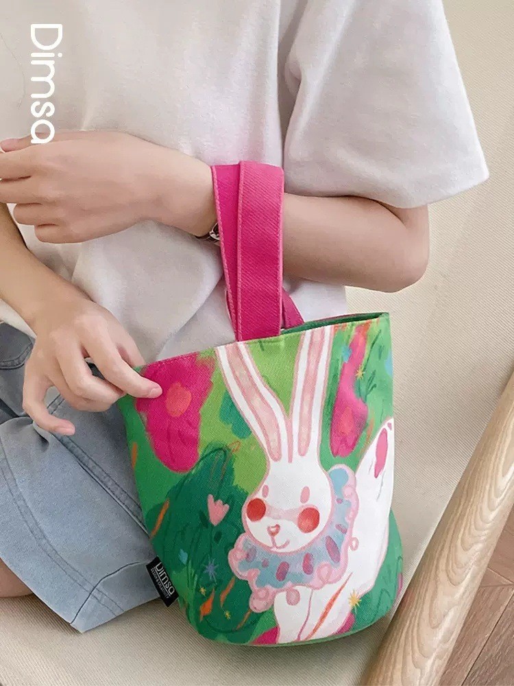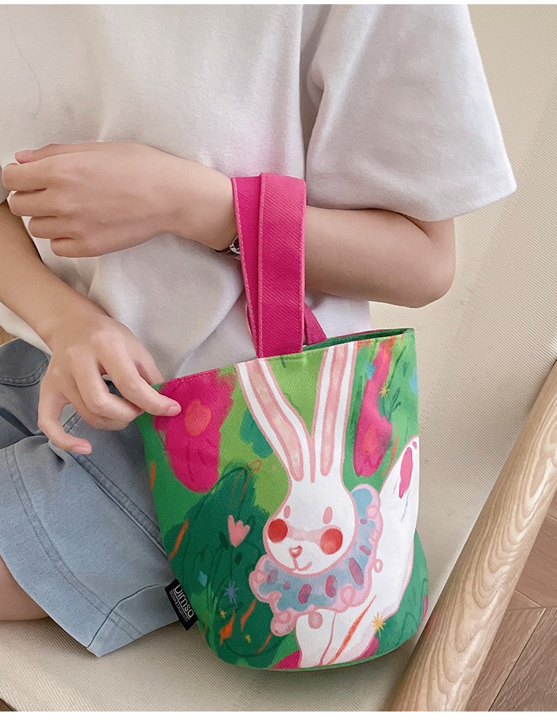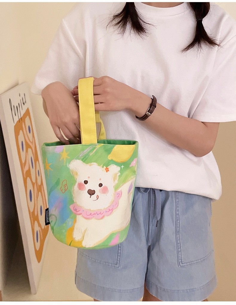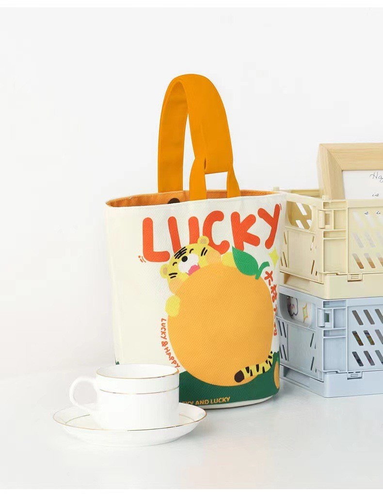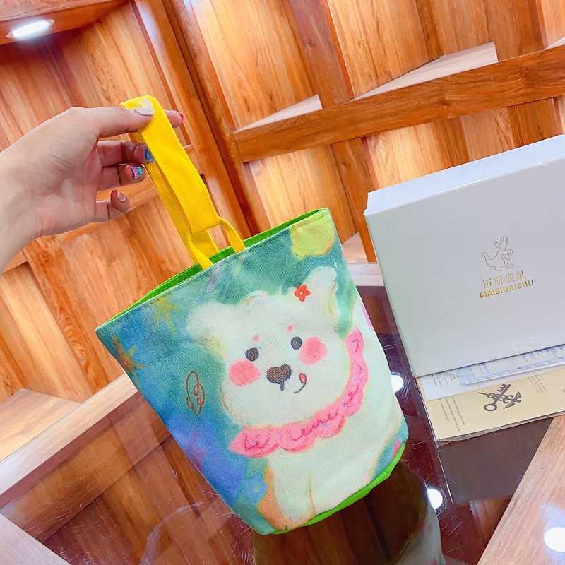 新款插画卡通帆布包水桶包印花随身小手提包妈咪包便当外出小拎包