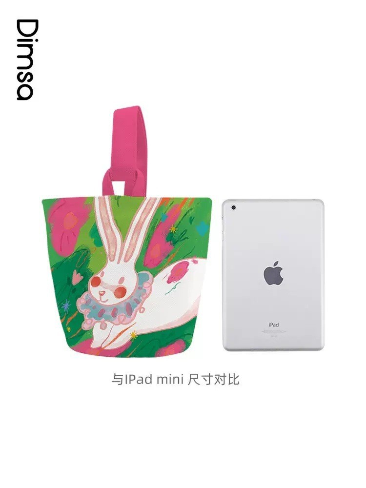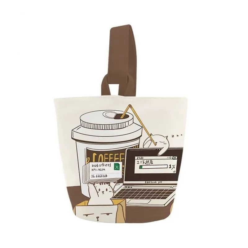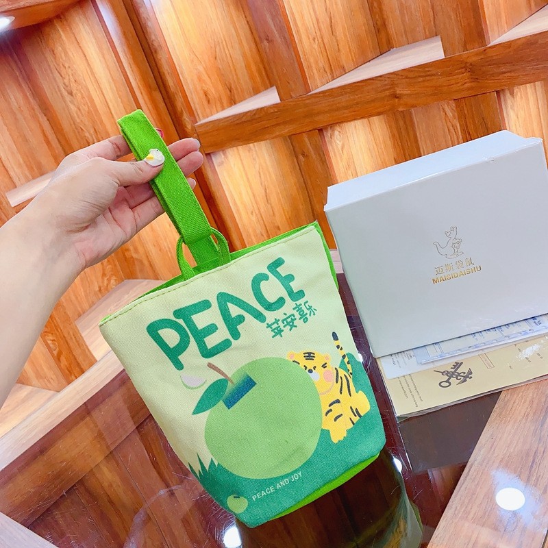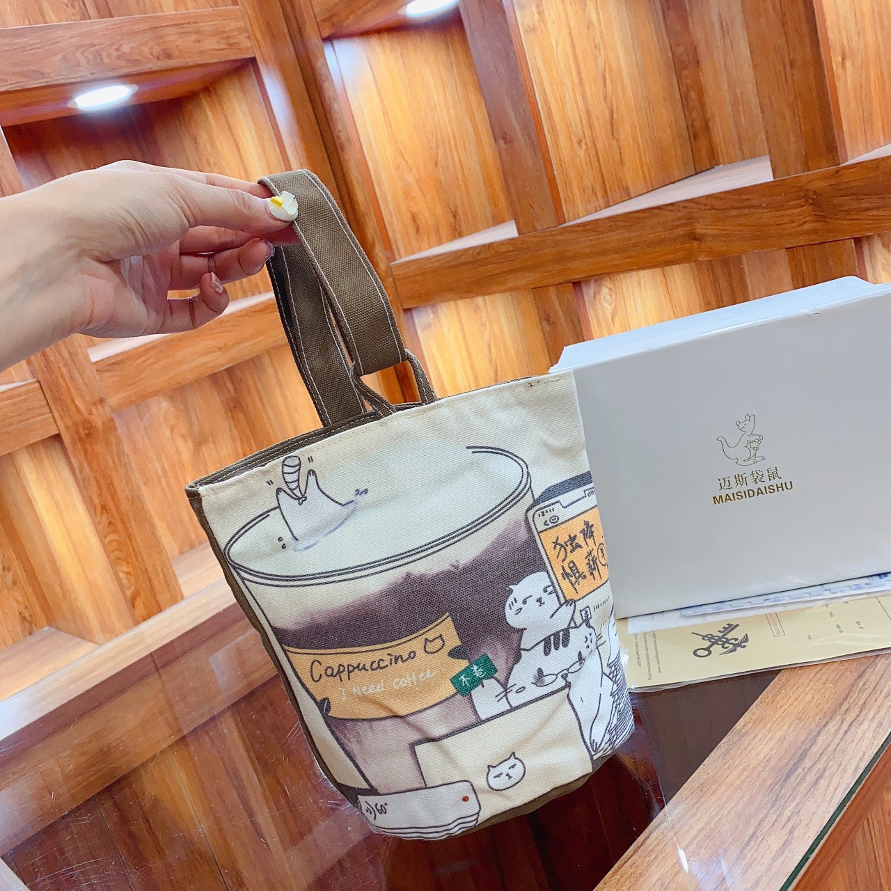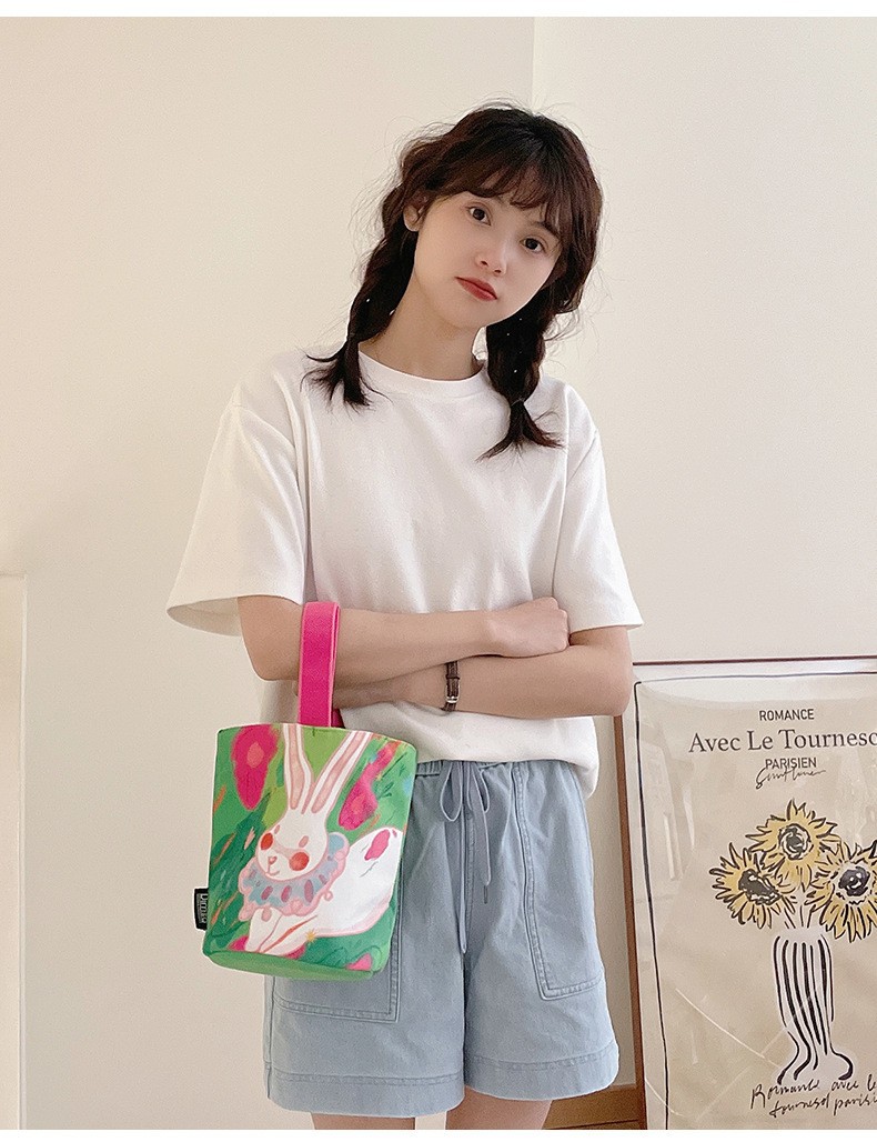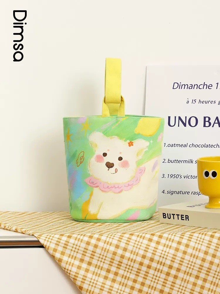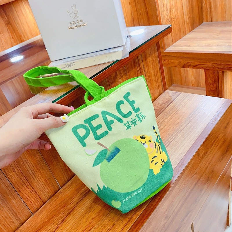 新款插画卡通帆布包水桶包印花随身小手提包妈咪包便当外出小拎包