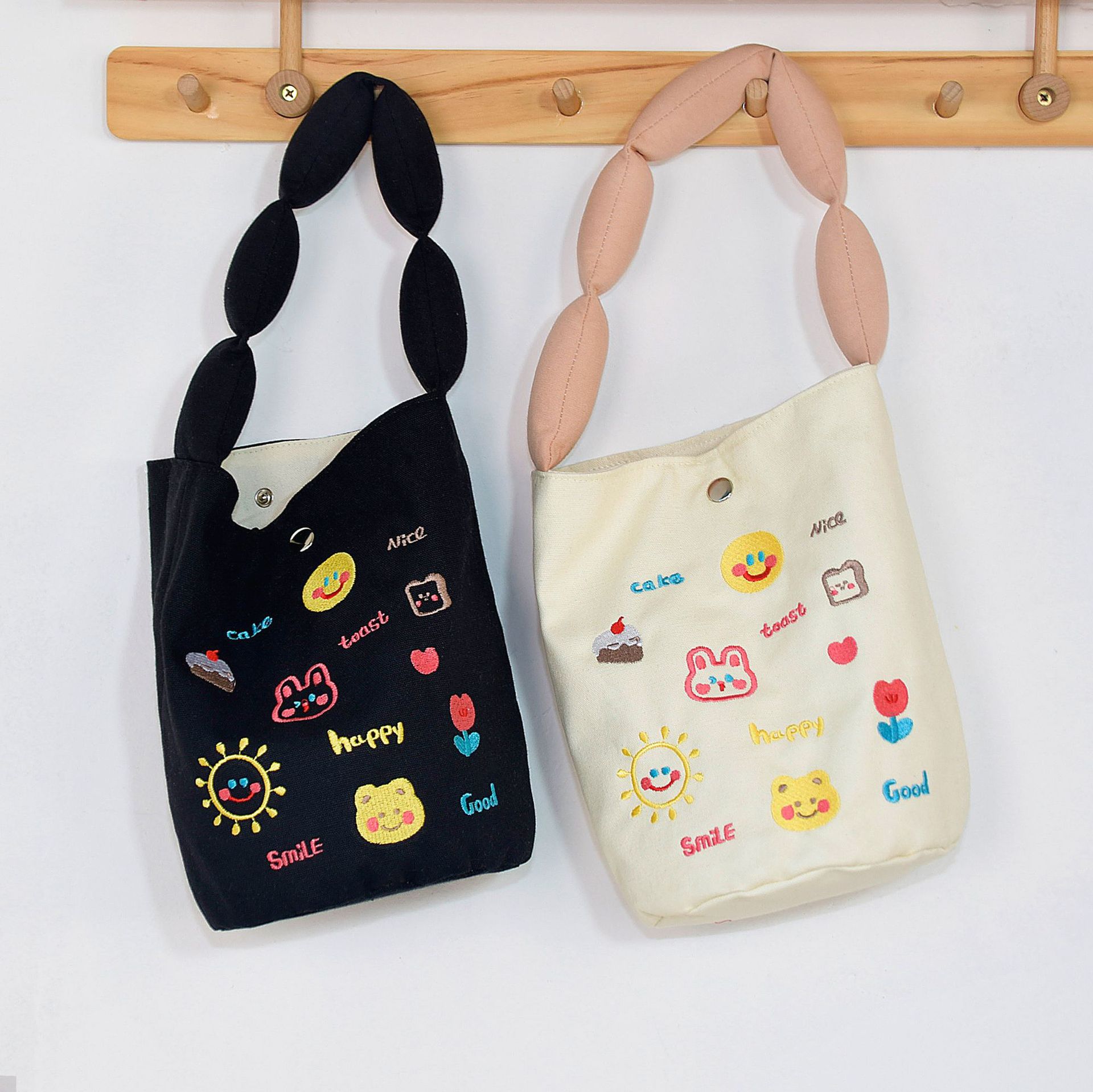充棉水桶包帆布包小包手提包小众帆布袋可爱刺绣小号包包女包