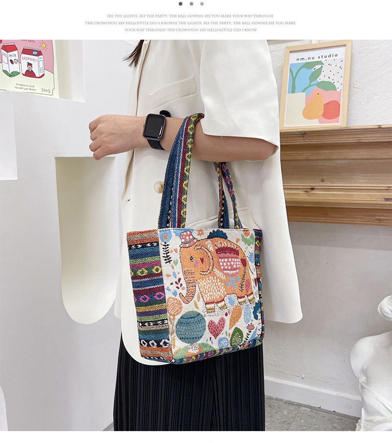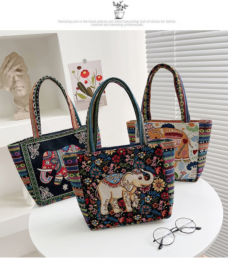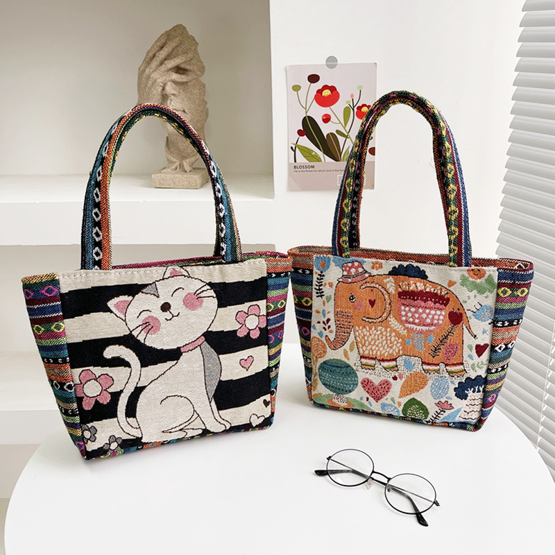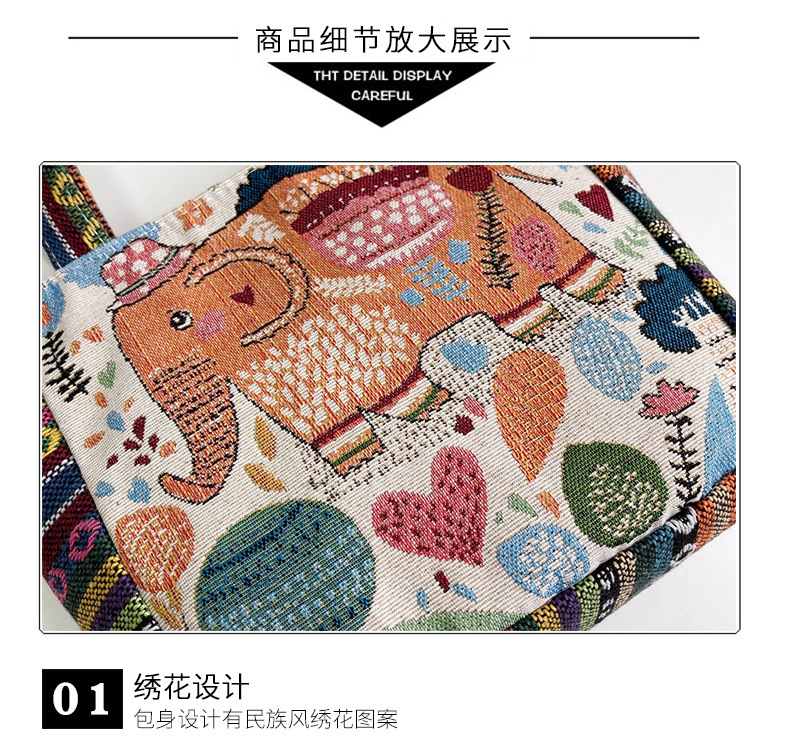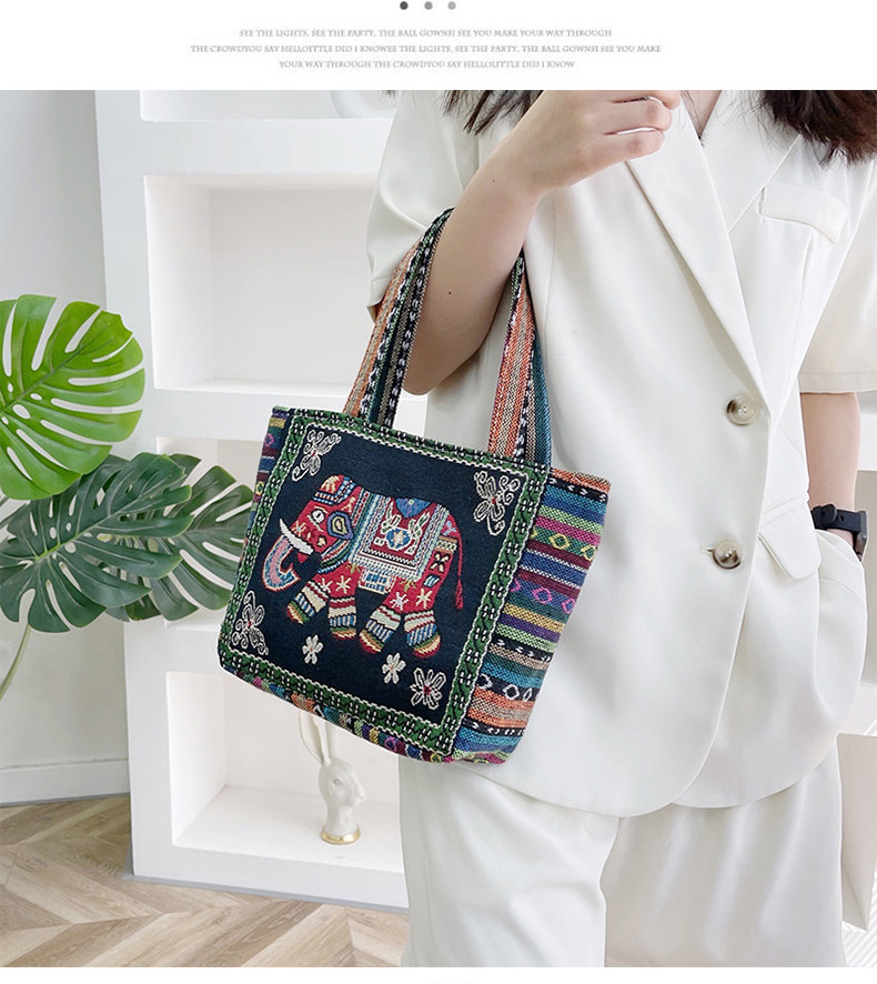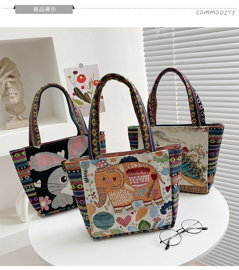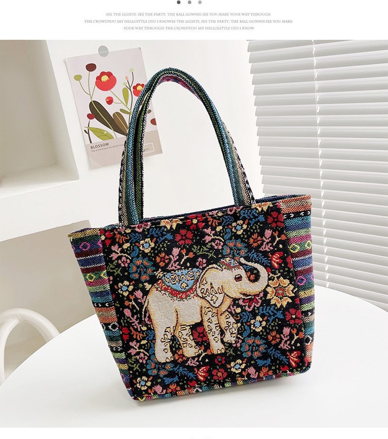 跨境新款编织手提托特包民族风刺绣中年妈妈手拎包小花帆布小方包