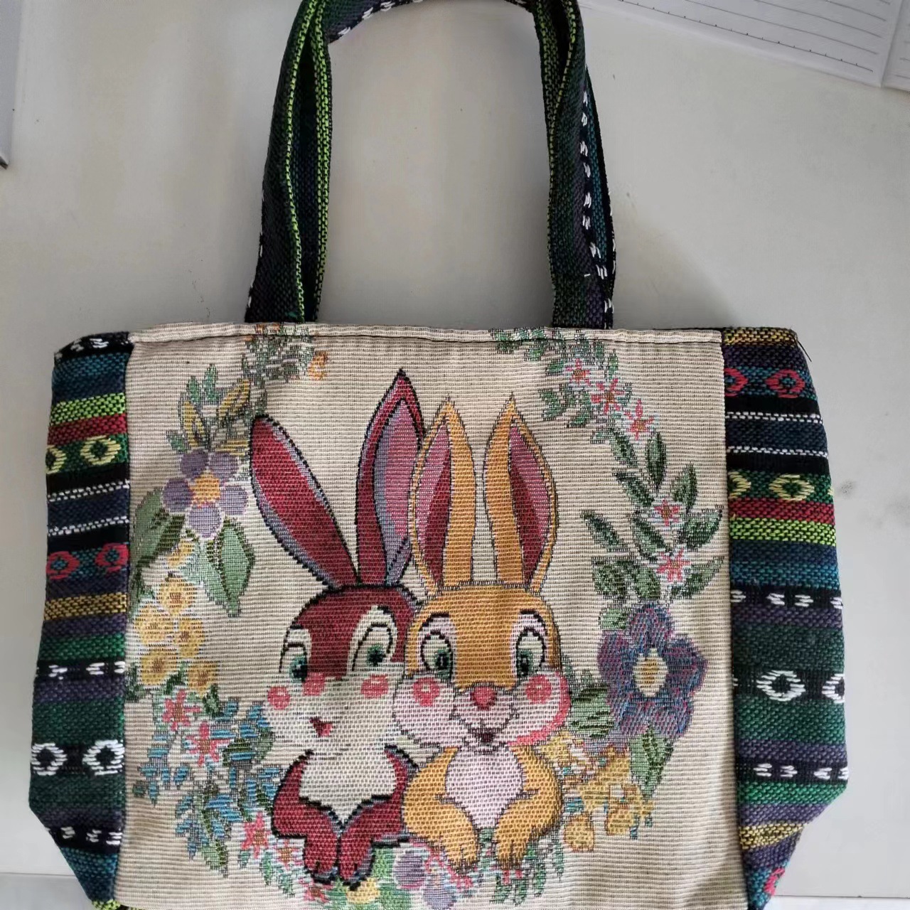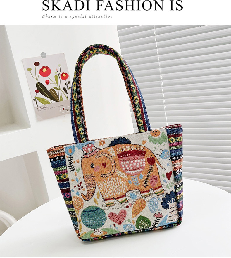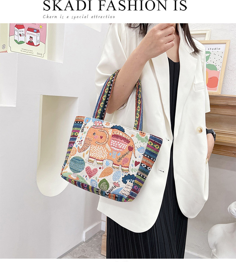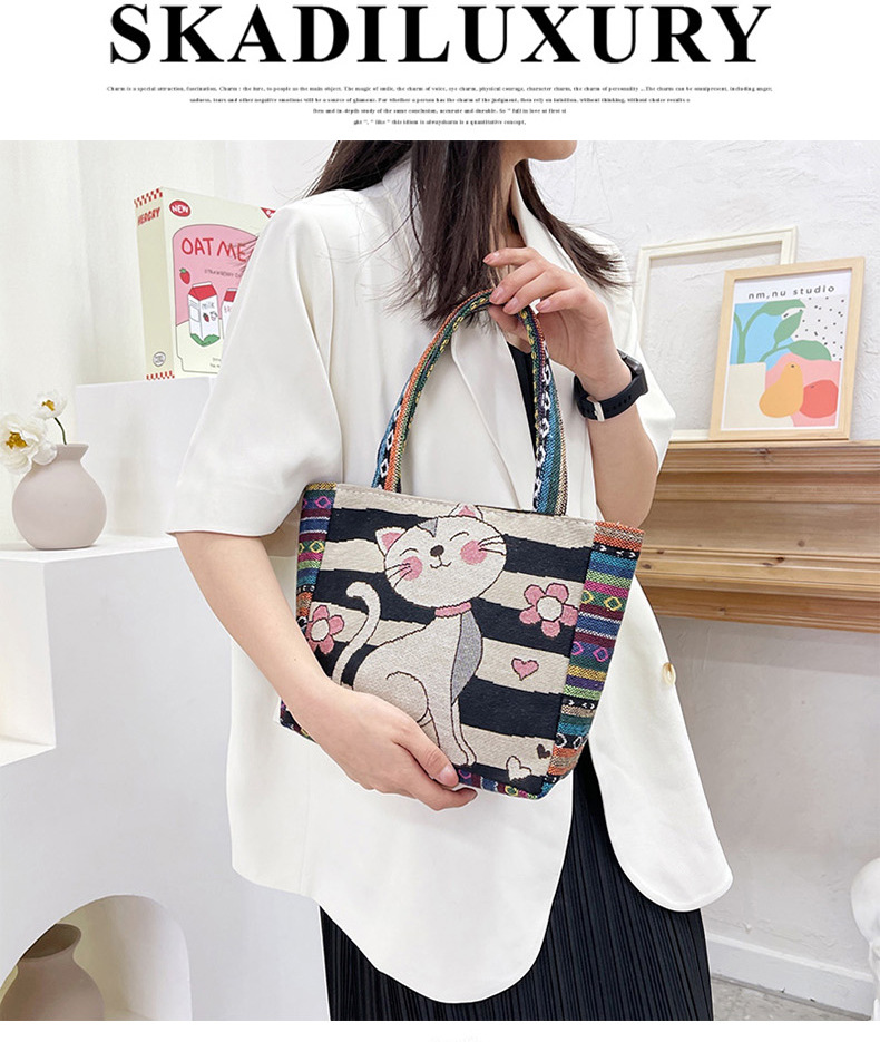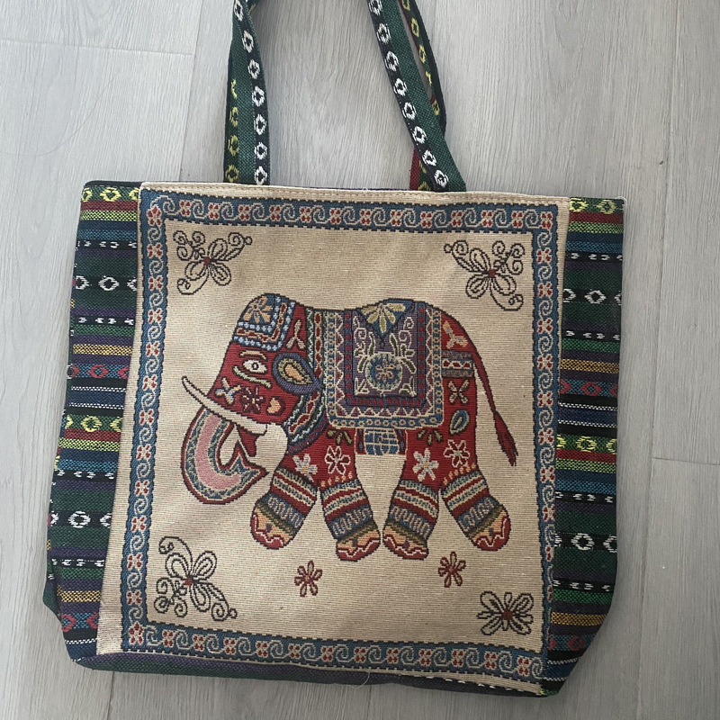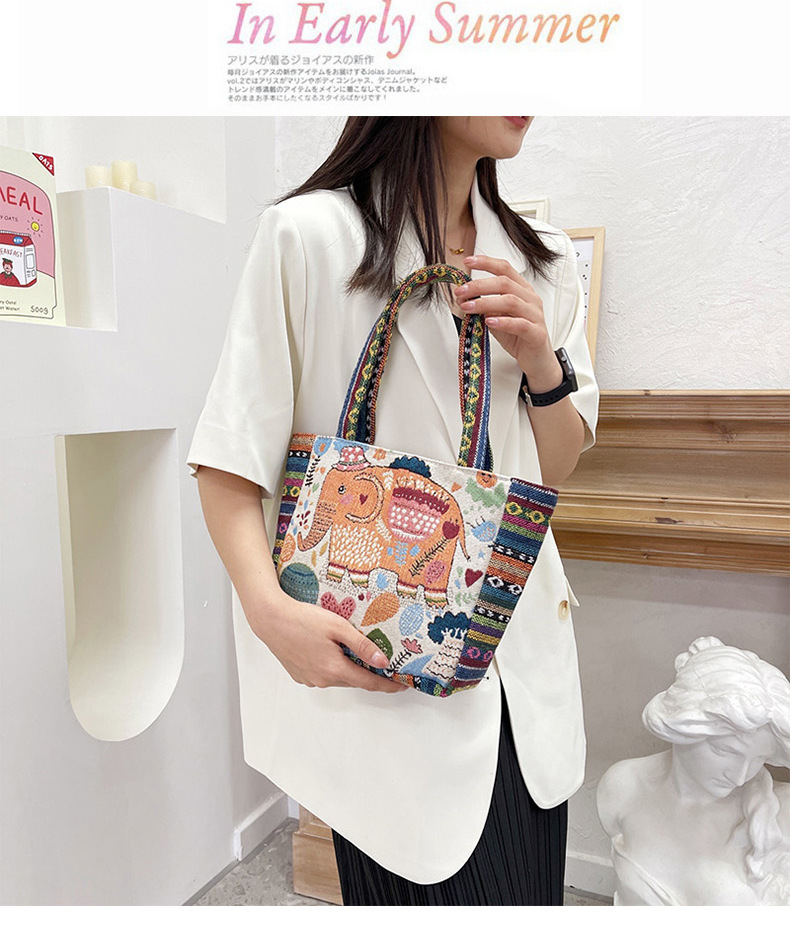 跨境新款编织手提托特包民族风刺绣中年妈妈手拎包小花帆布小方包