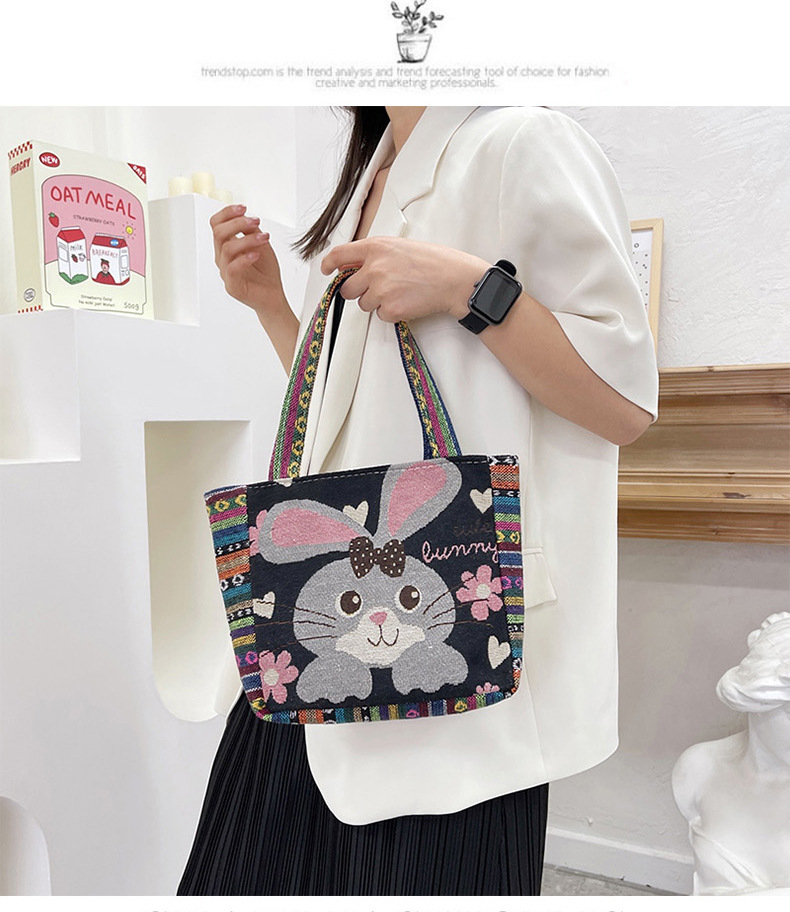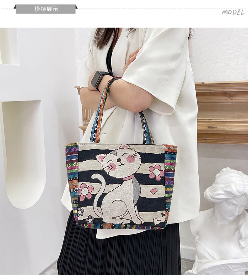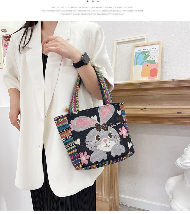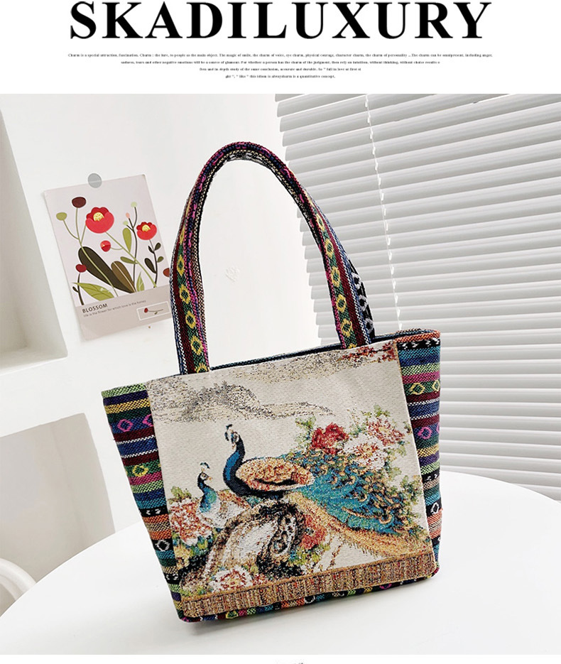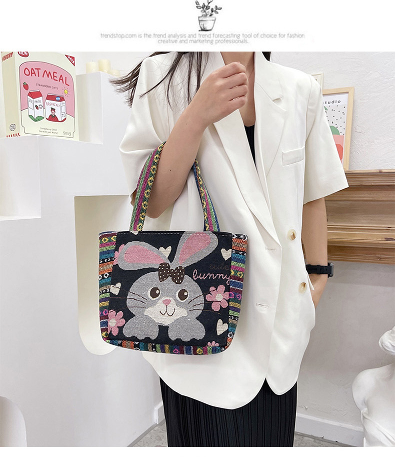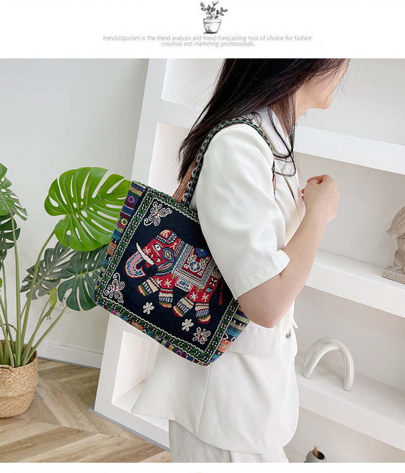 跨境新款编织手提托特包民族风刺绣中年妈妈手拎包小花帆布小方包