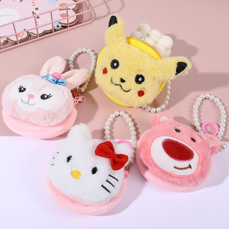 日系可爱毛绒立体卡通零钱包拉链迷你收纳包钥匙扣挂饰礼品钱包
