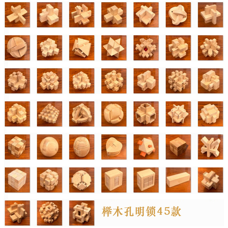 全套榉木孔明锁系列 儿童成人智力鲁班锁 孔明球拆装玩具解锁环