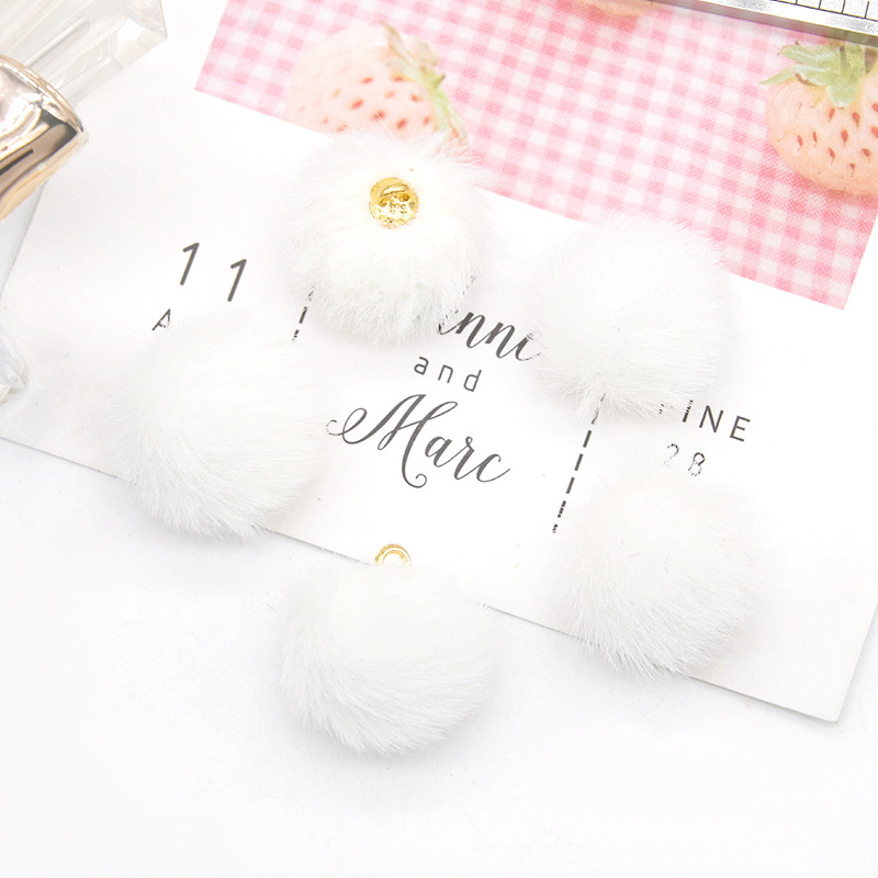 新款仿貂毛球吊坠15MM长毛毛球珠子耳钉项链挂件耳环配饰手工配件