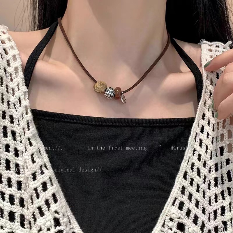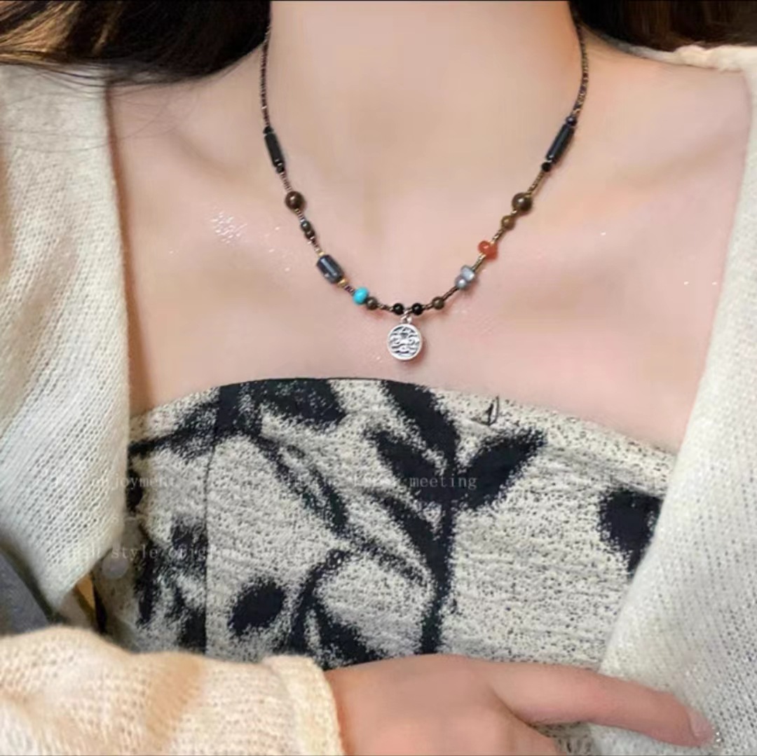 新中式民族风流苏如意锁藏式串珠项链复古锁骨链女小众高级感项饰