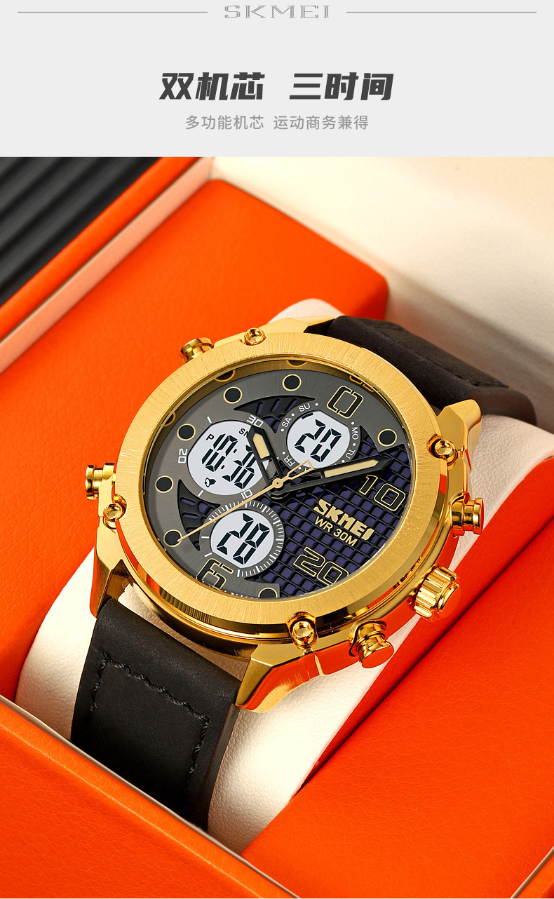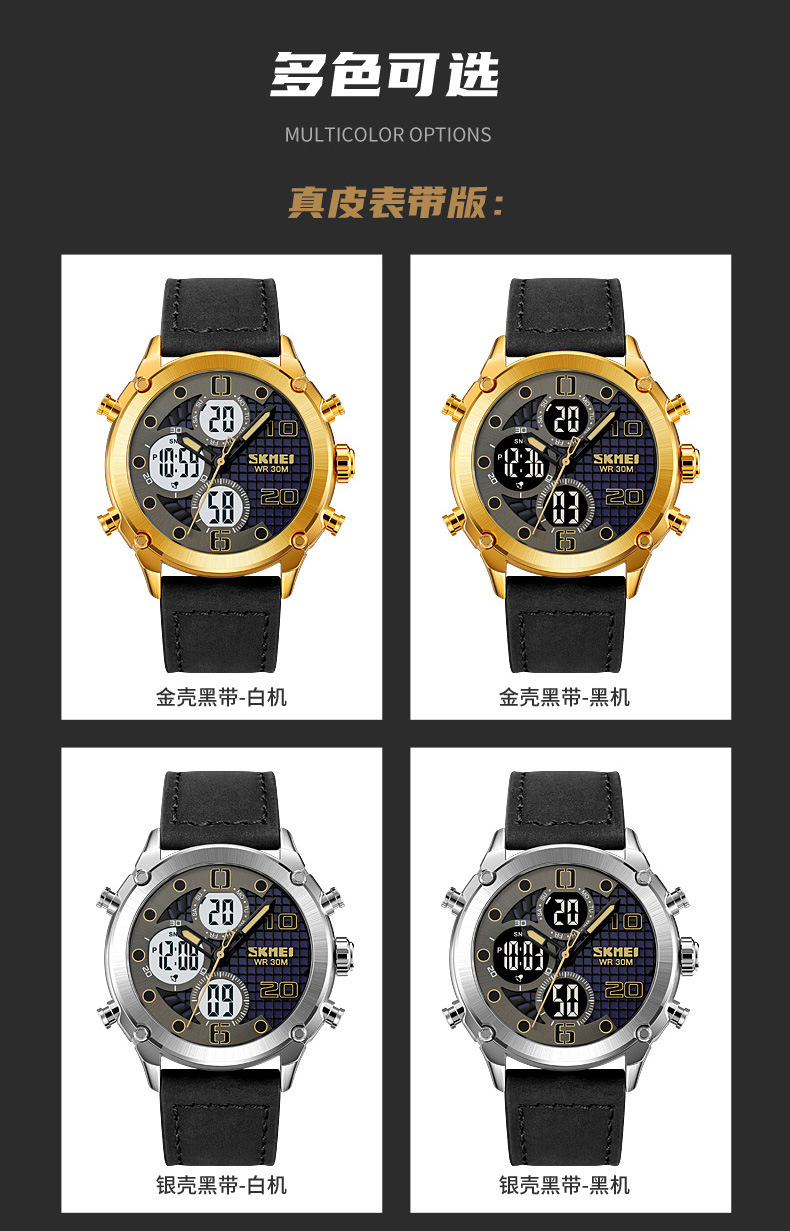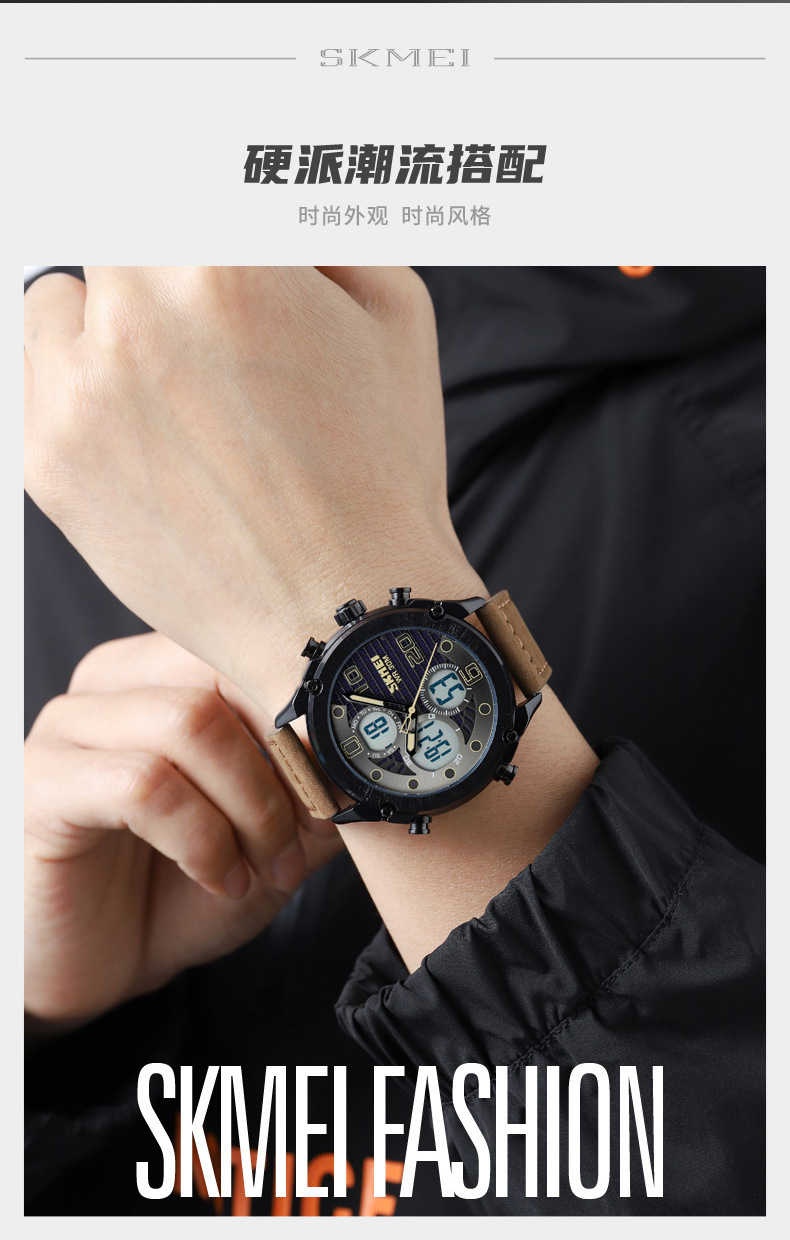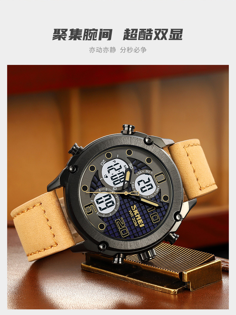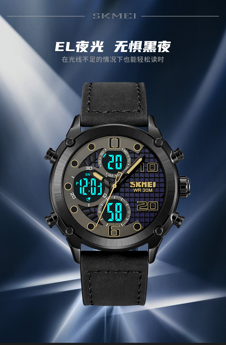 时刻美户外运动男士电子表双机芯多功能手表防水闹钟夜光电子手表
