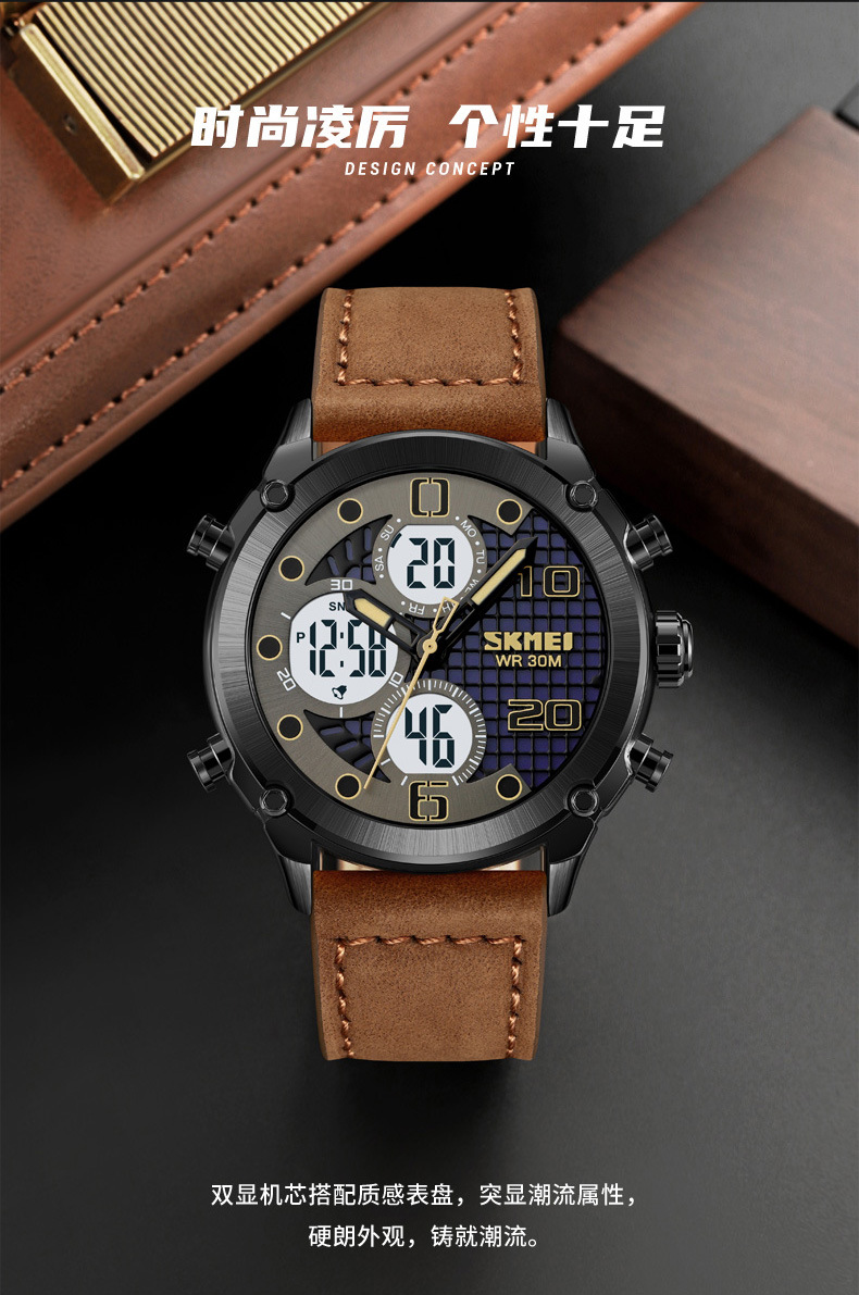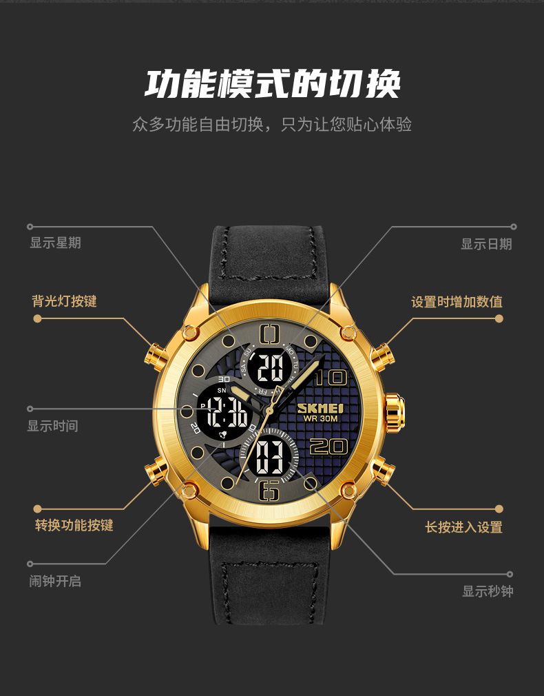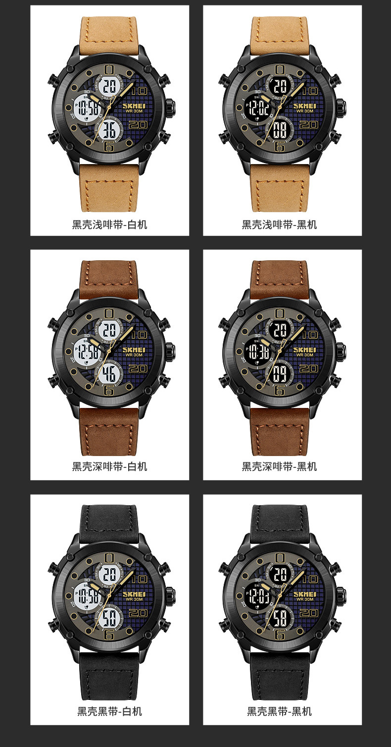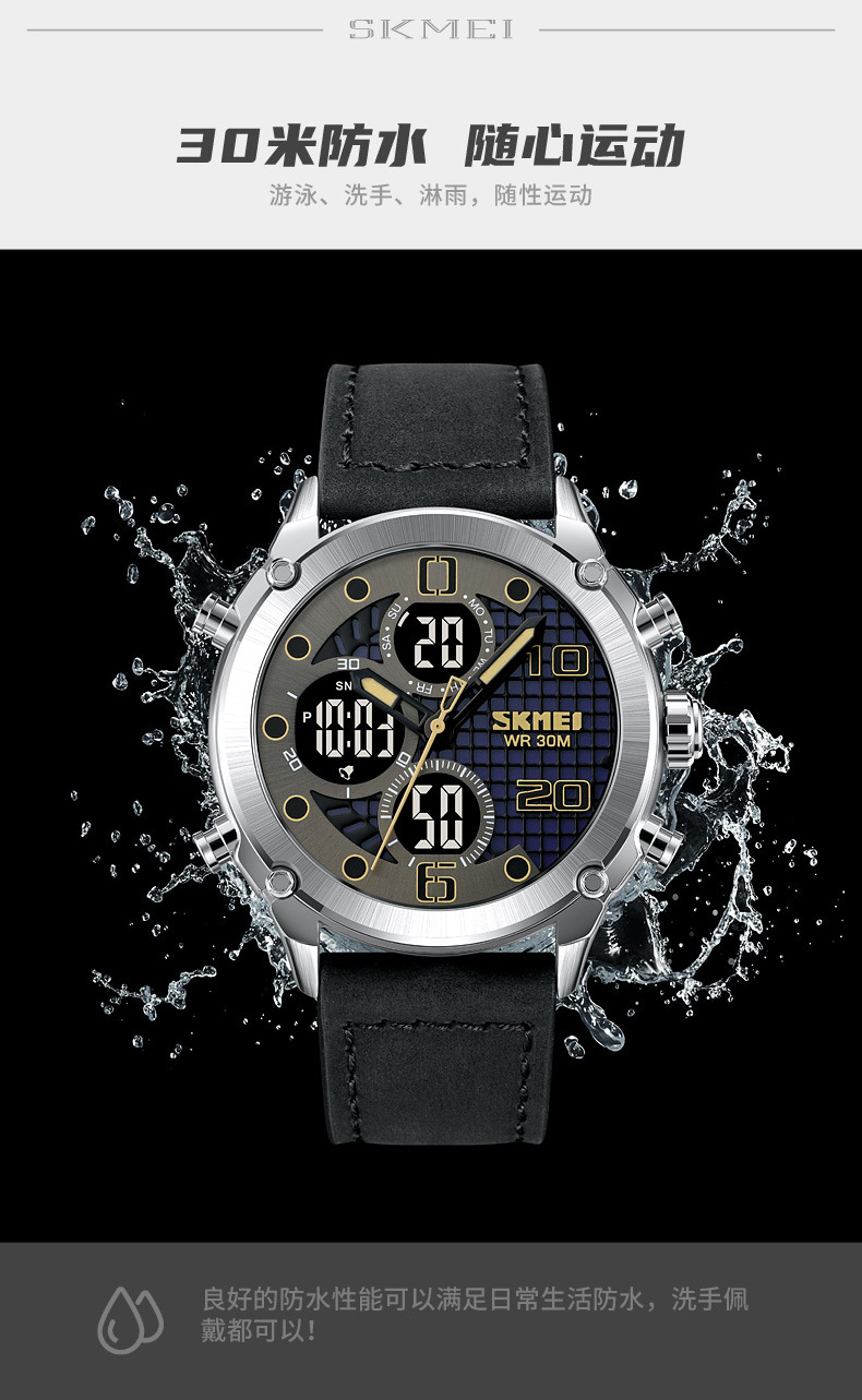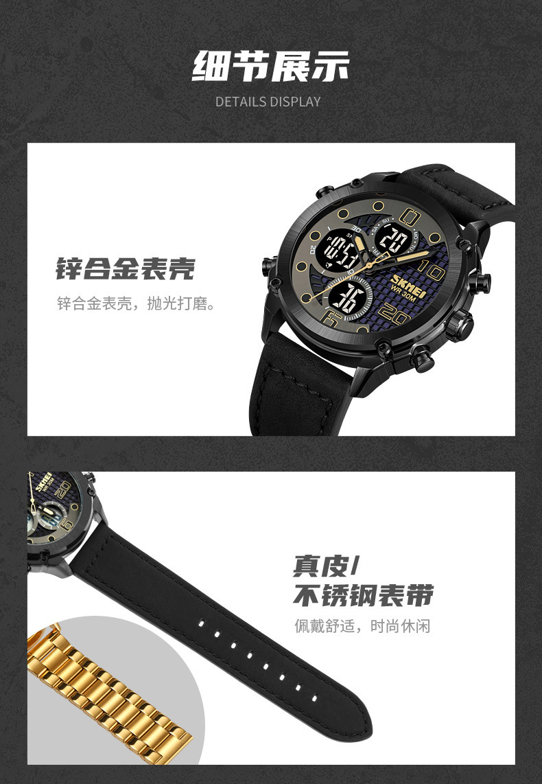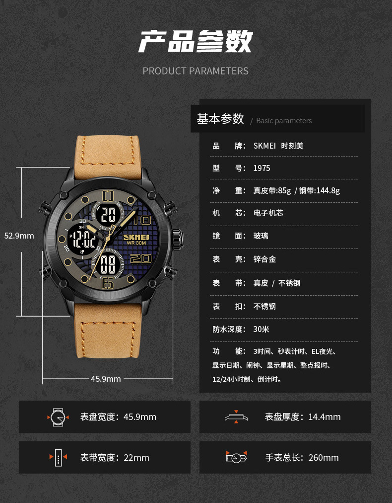 时刻美户外运动男士电子表双机芯多功能手表防水闹钟夜光电子手表