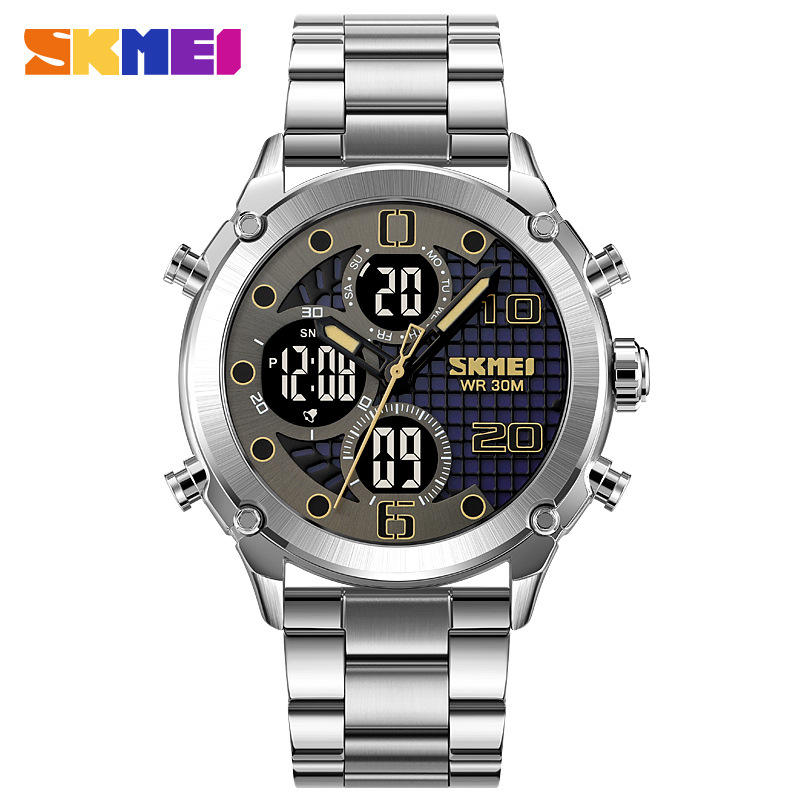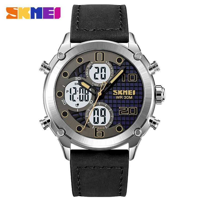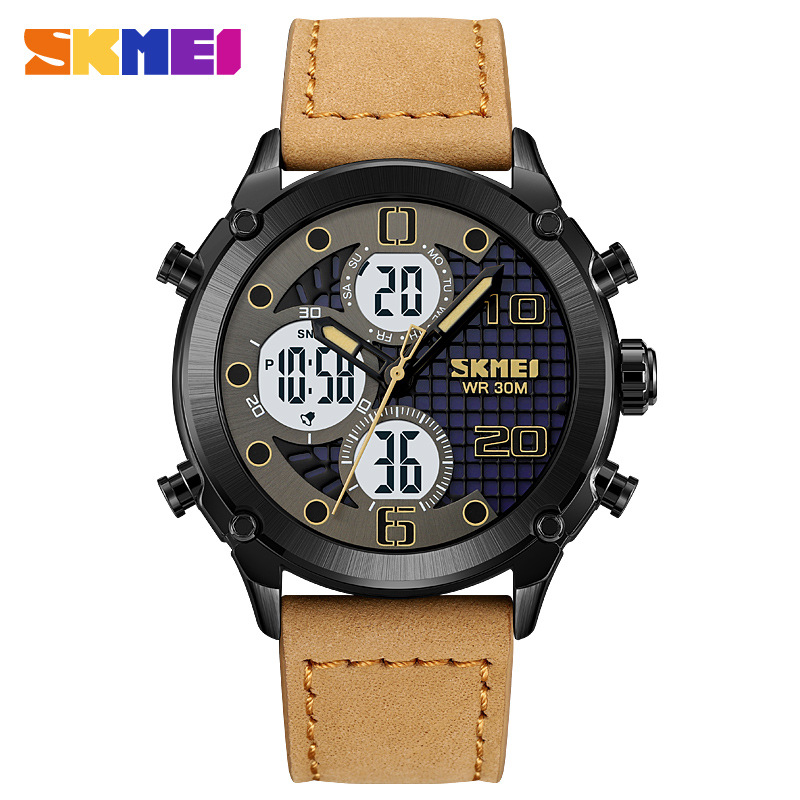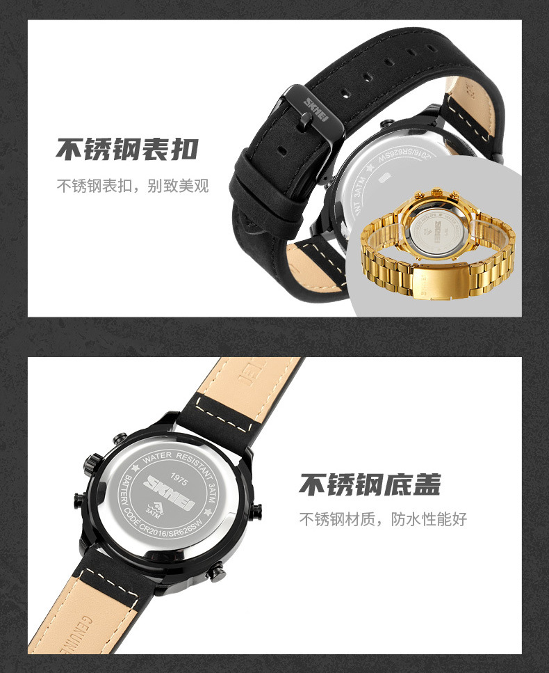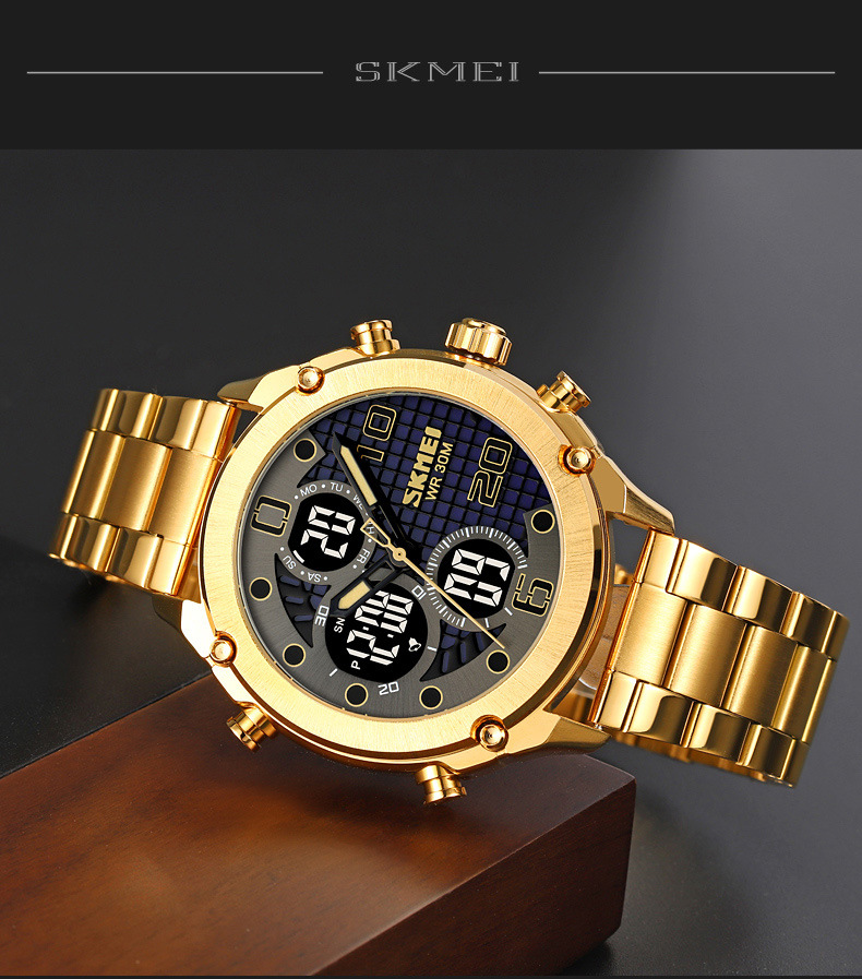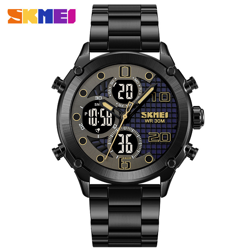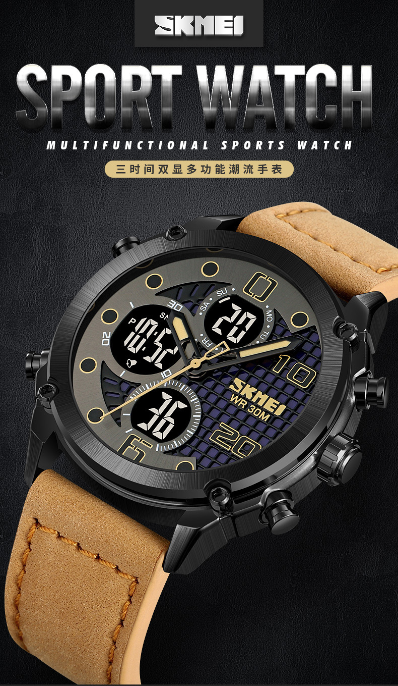 时刻美户外运动男士电子表双机芯多功能手表防水闹钟夜光电子手表
