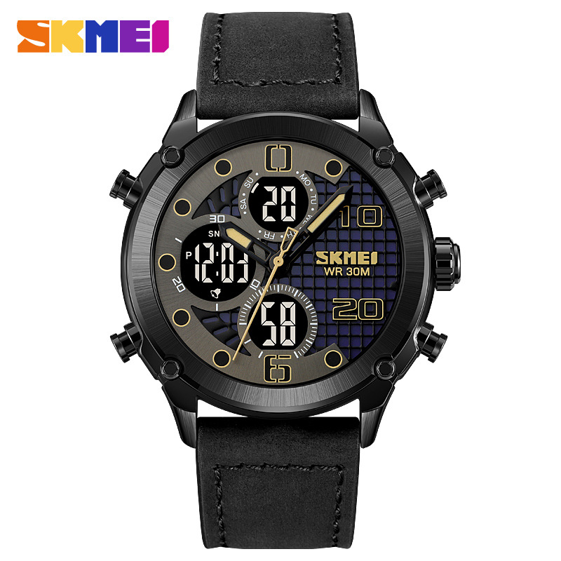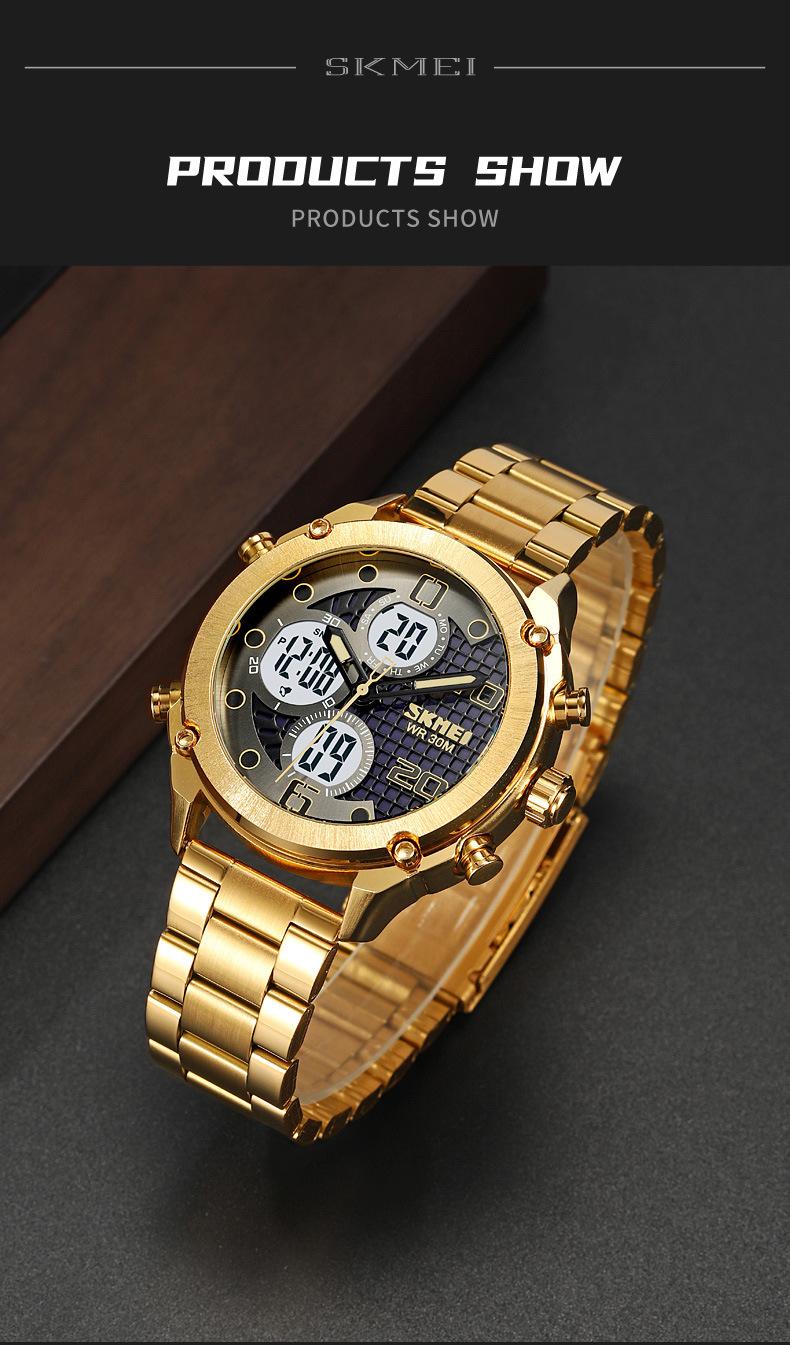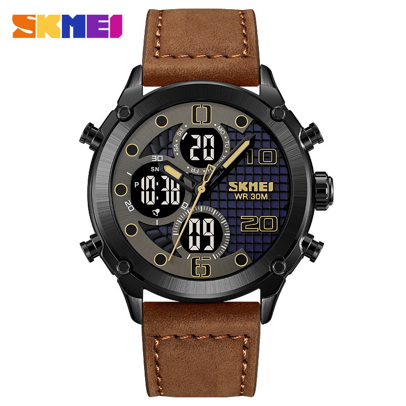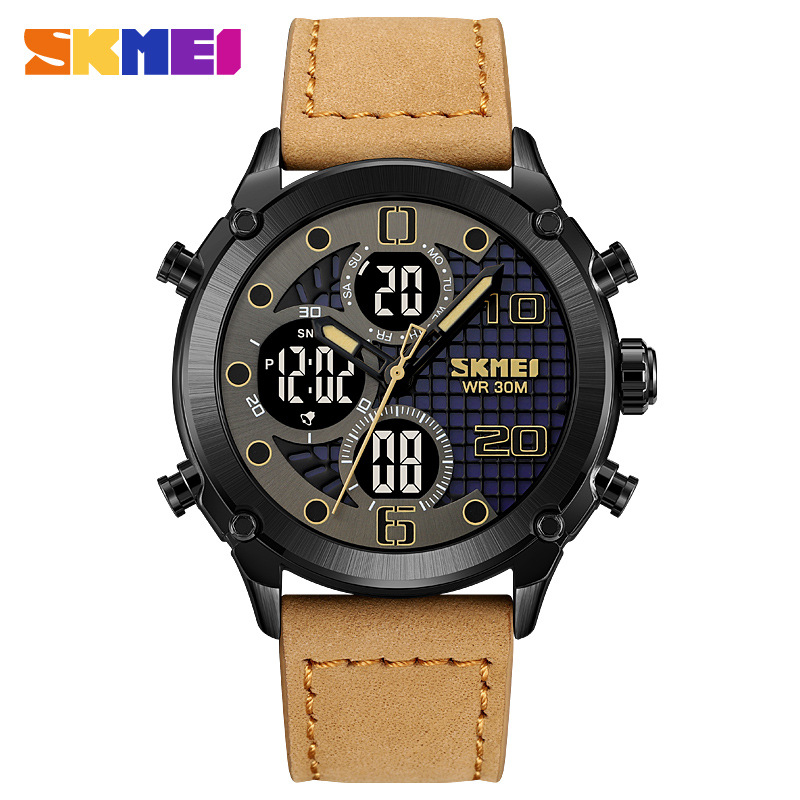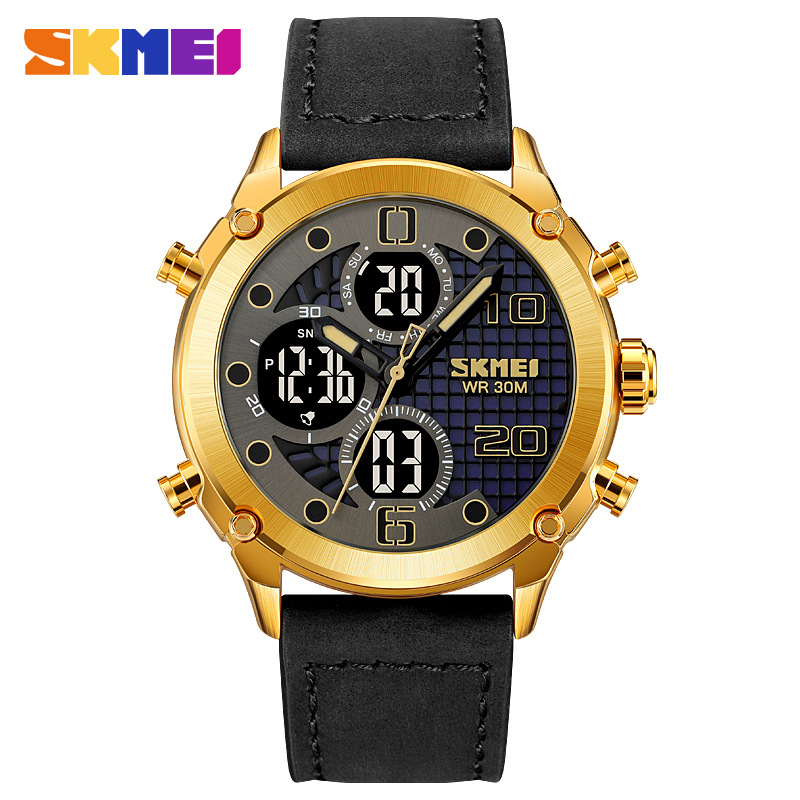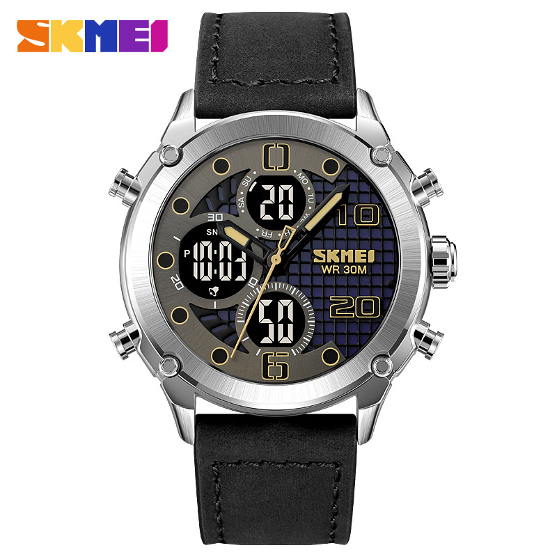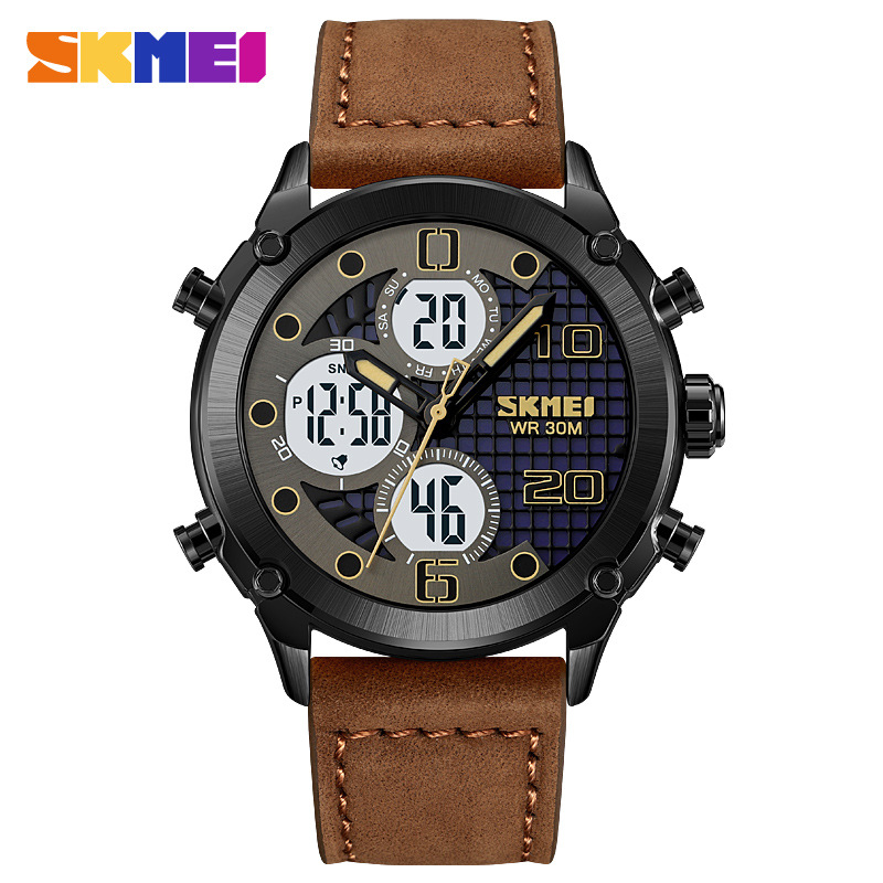 时刻美户外运动男士电子表双机芯多功能手表防水闹钟夜光电子手表