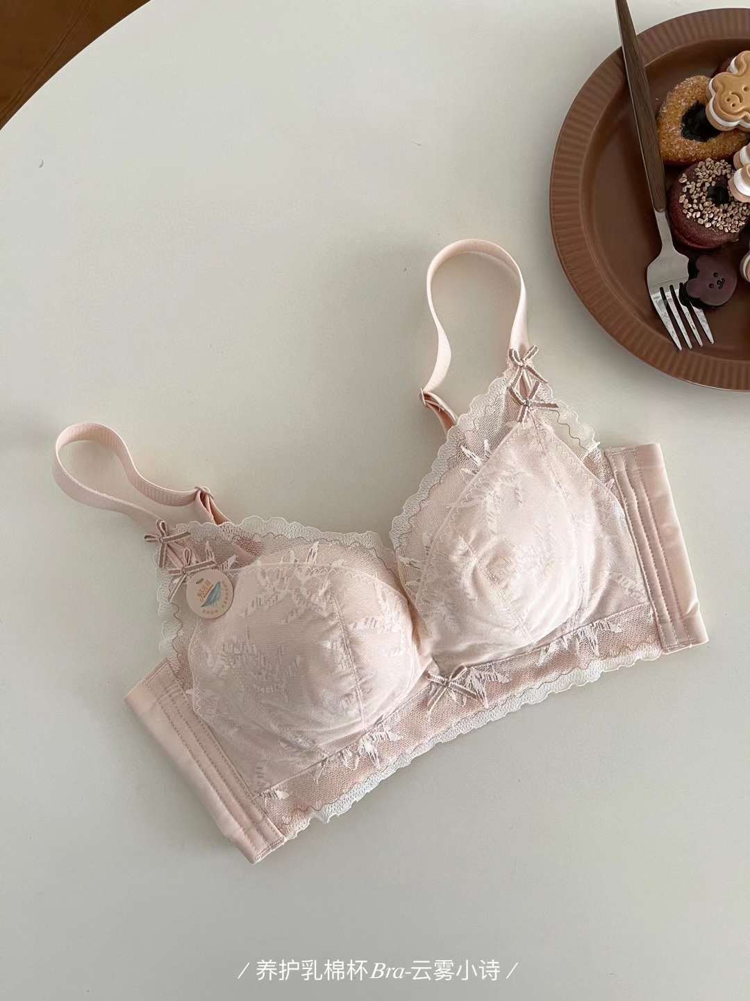 高端蕾丝养护乳棉杯内衣女性感胸罩小胸聚拢显大调整型无钢圈文胸