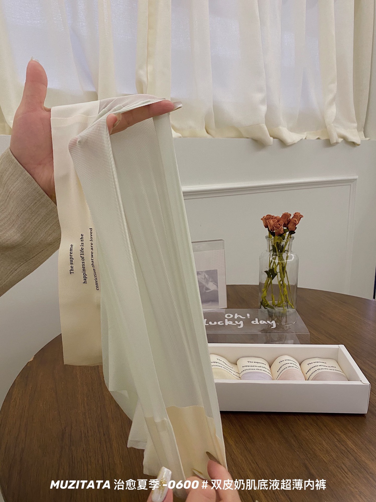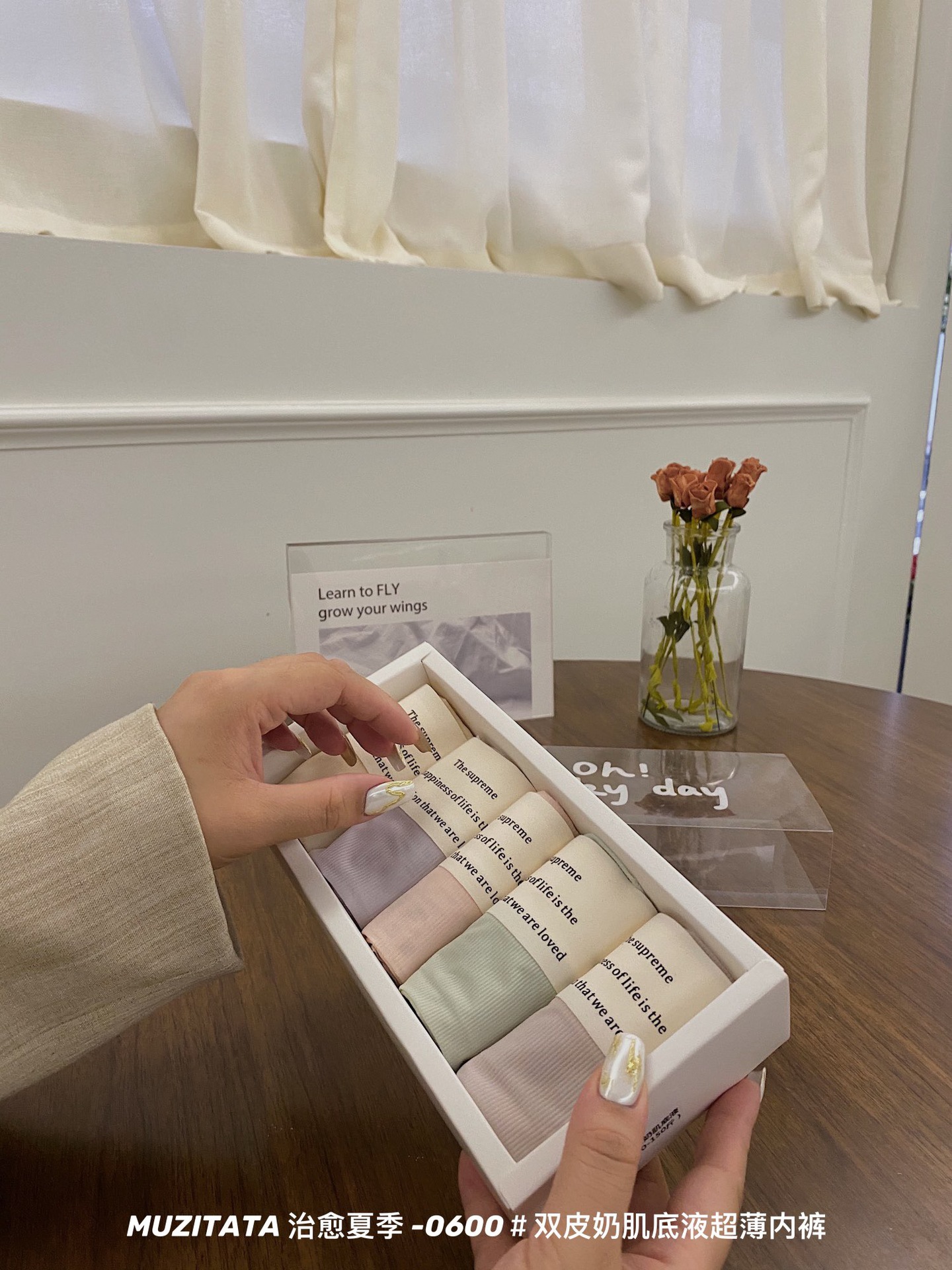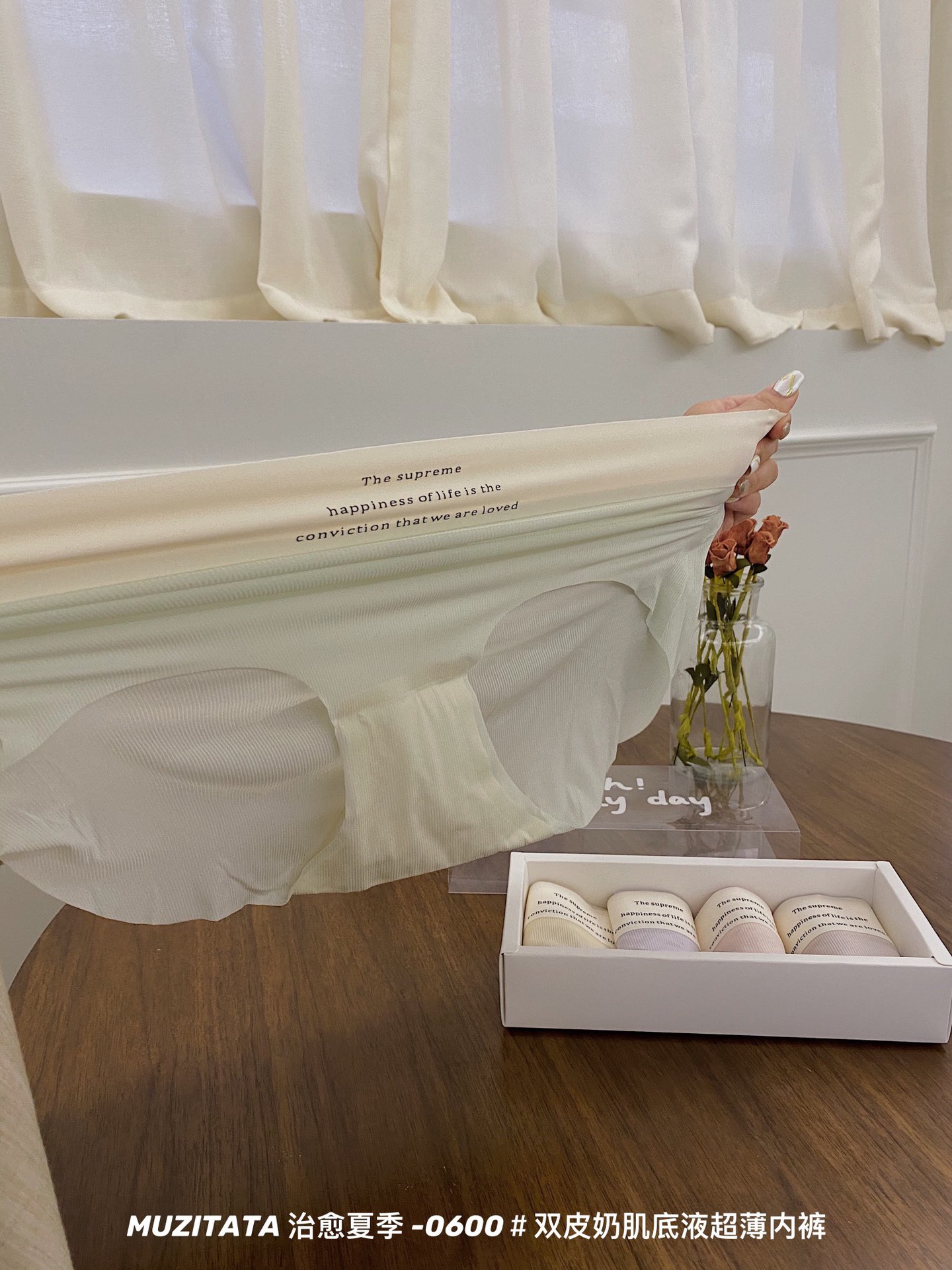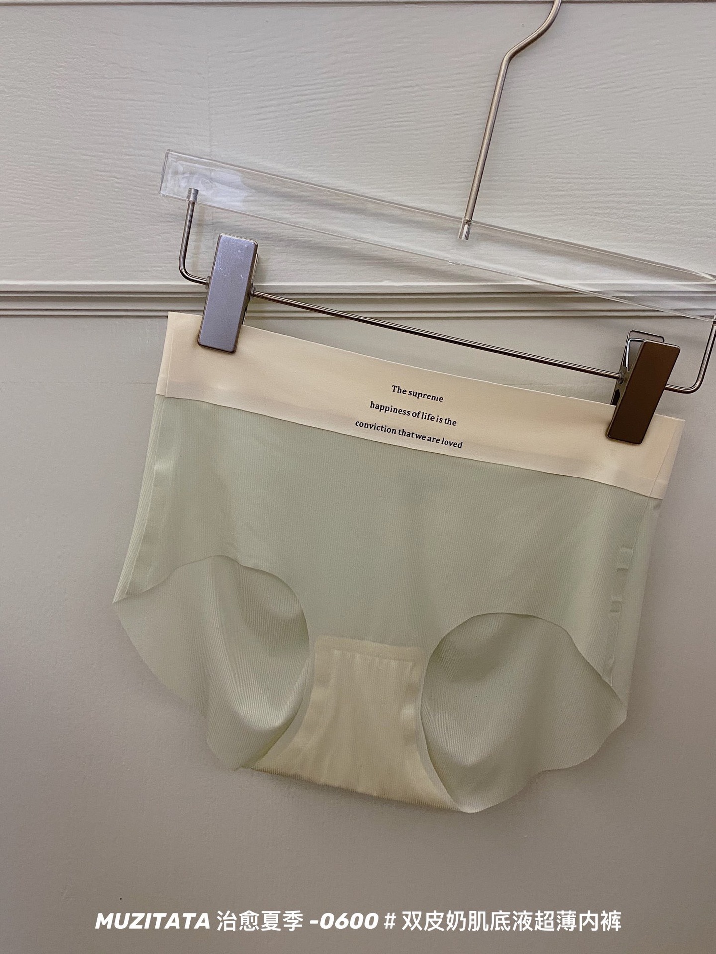 2024双皮奶肌底液超薄内裤女士撞色字母蜜桃臀舒适无感中腰三角裤