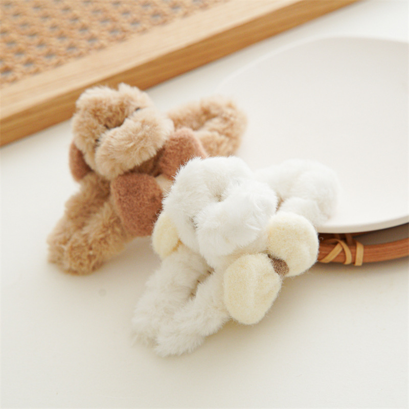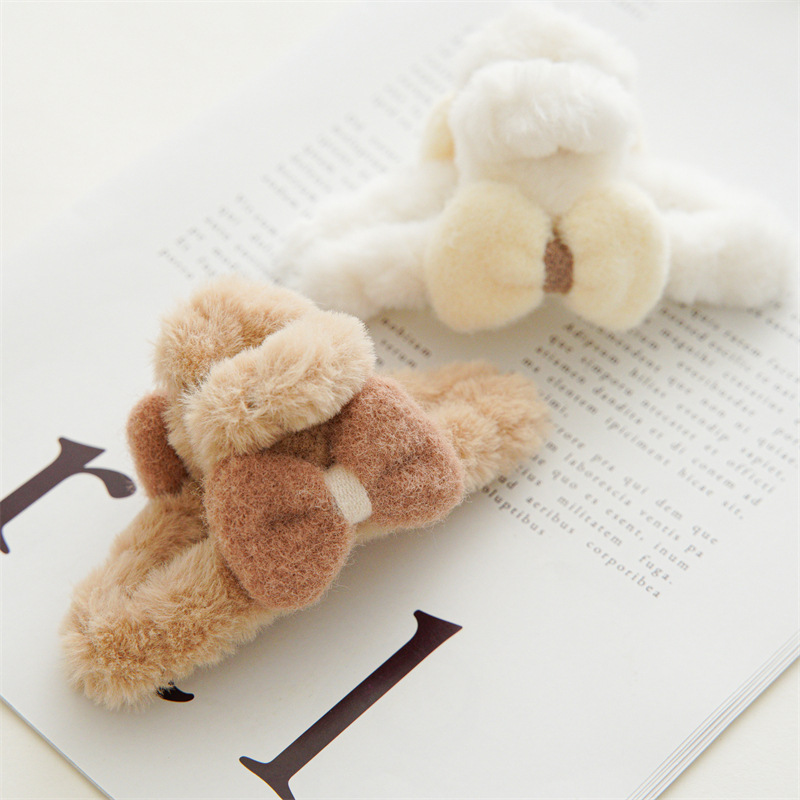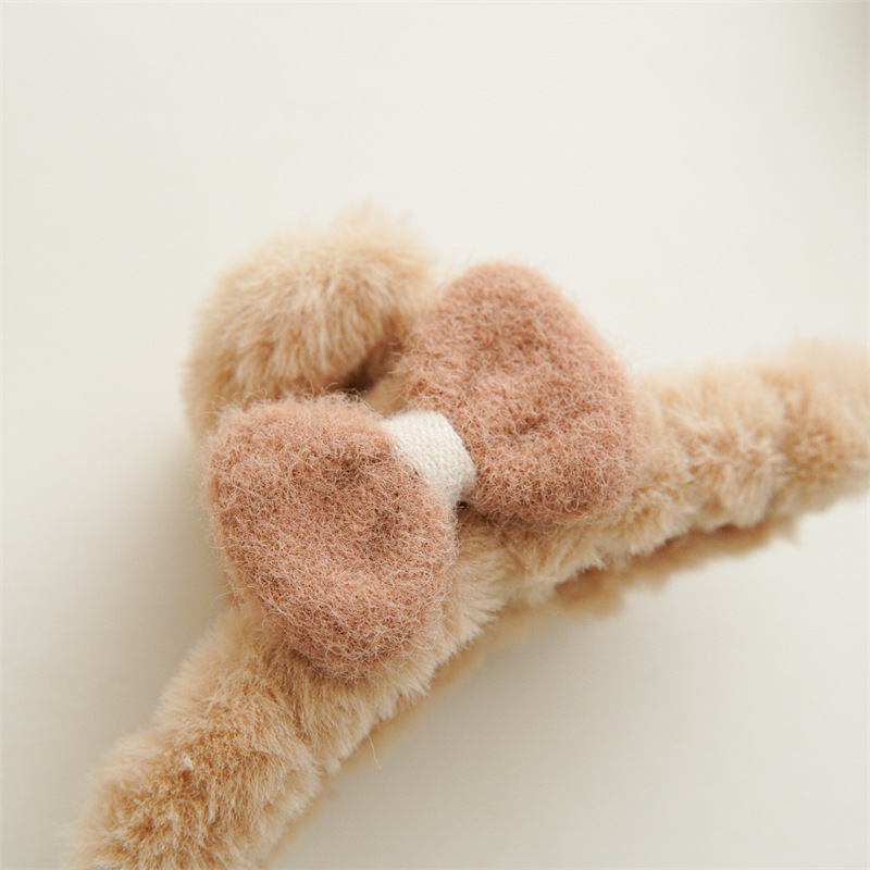 可爱毛茸茸蝴蝶结抓夹2023秋冬款毛绒手工缠绕盘发抓头饰现货批发