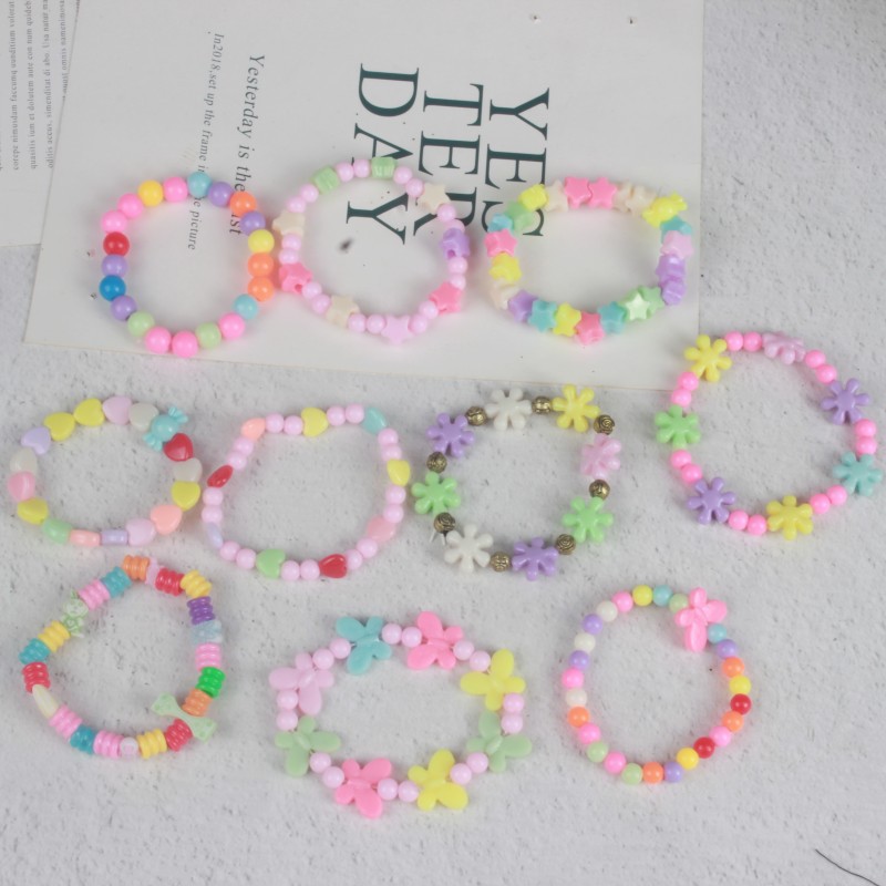儿童可爱手链彩色亚克力珠子女童塑料珍珠串珠手工淘宝小礼品批发